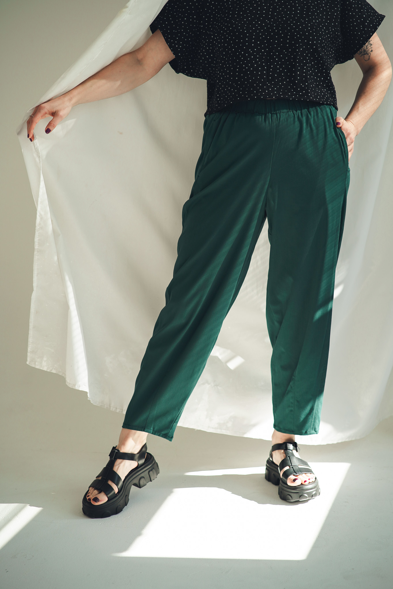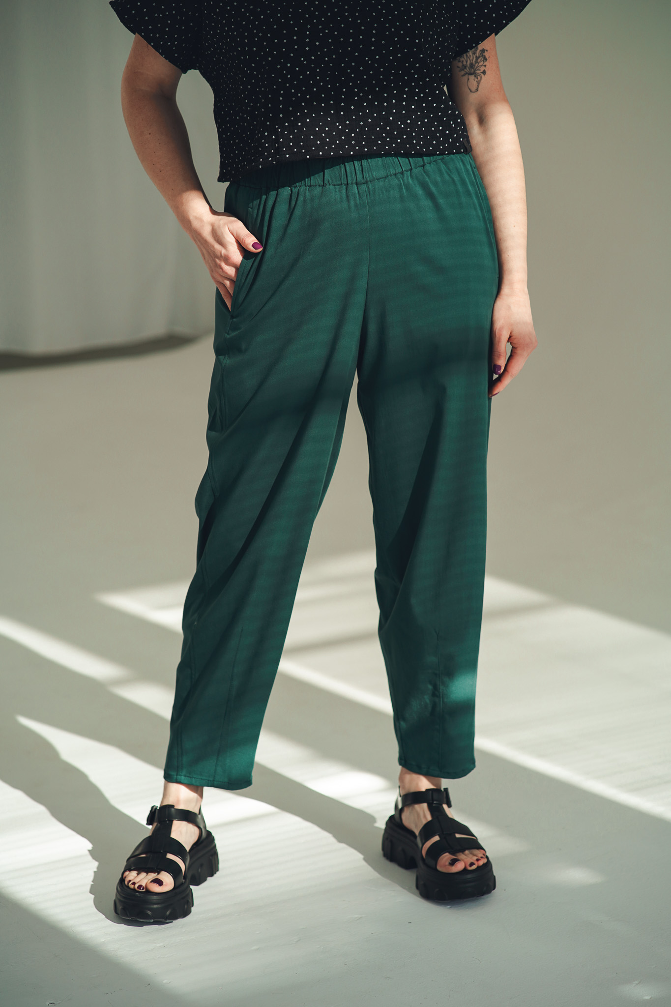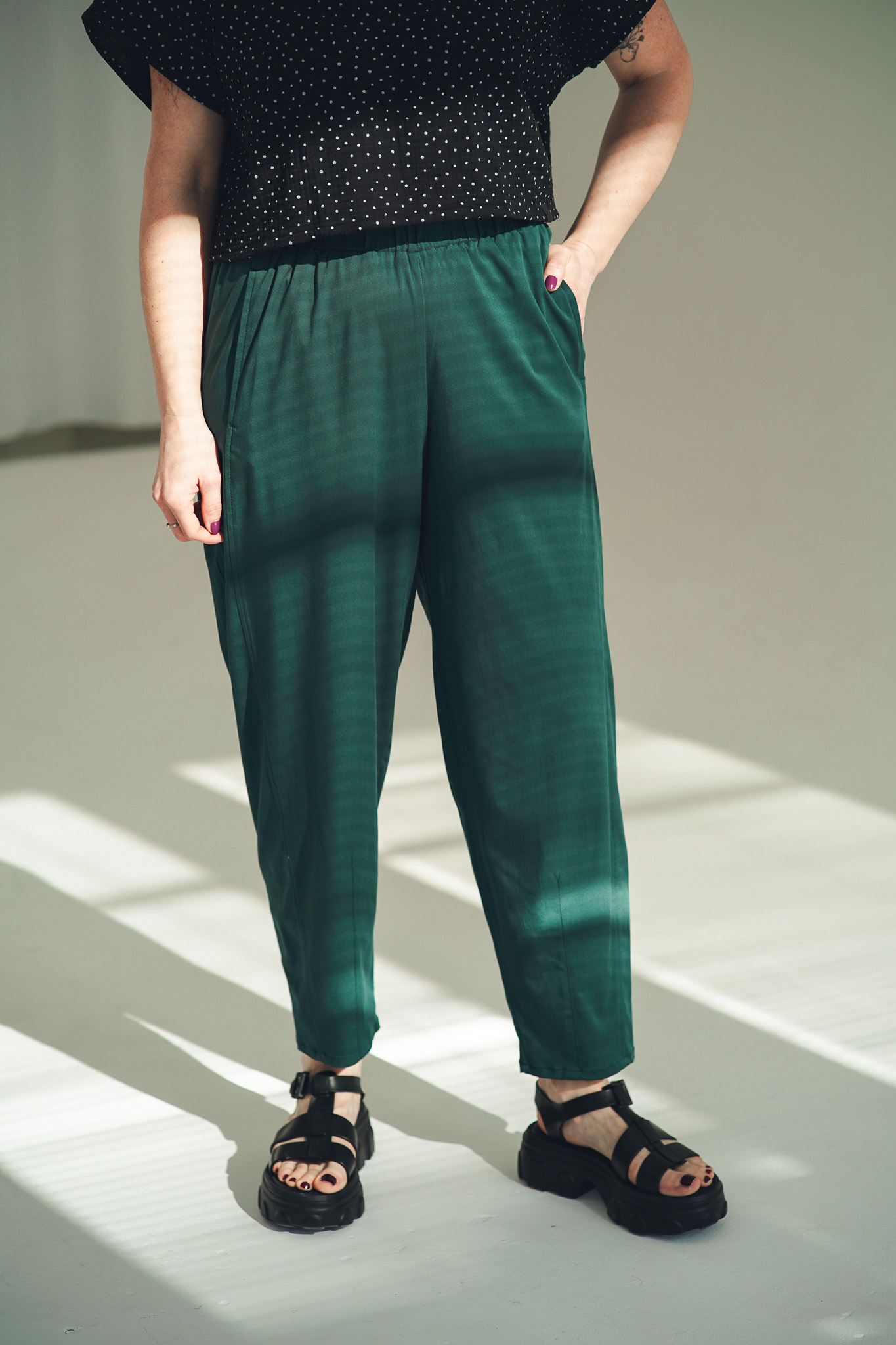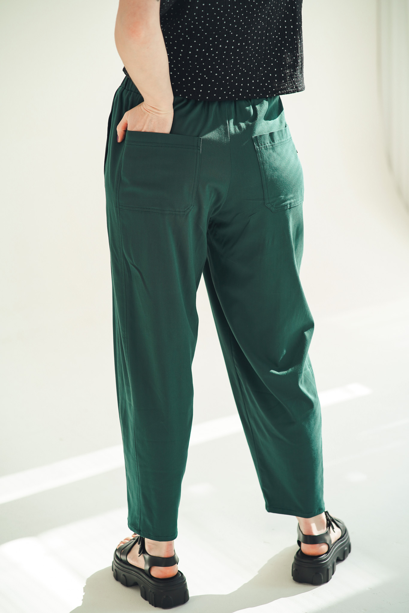 Kalhoty Barell jsou ušité z viskózové látky s příměsí elastanu. Tyto kalhoty jsou krásně splývavé a mají elegantní vzhled. Zároveň zůstávají vzdušné a velmi pohodlné. V pase mají pružnou gumu pro maximální komfort a nechybí ani hluboké kapsy. Stylový a pohodlný kousek, který snadno unosíte každý den.