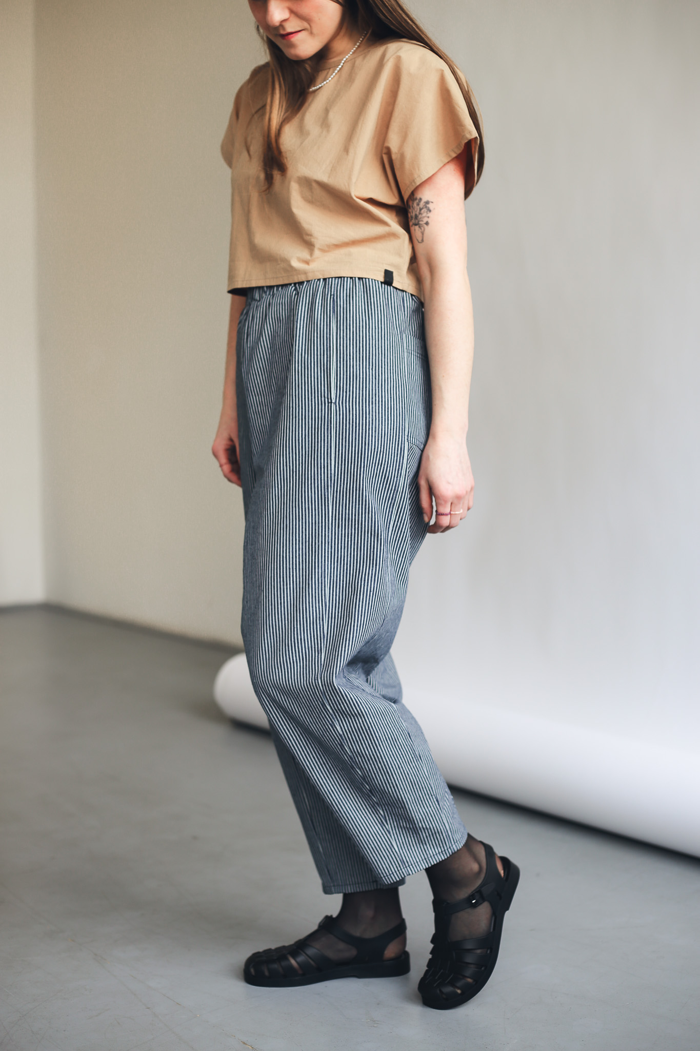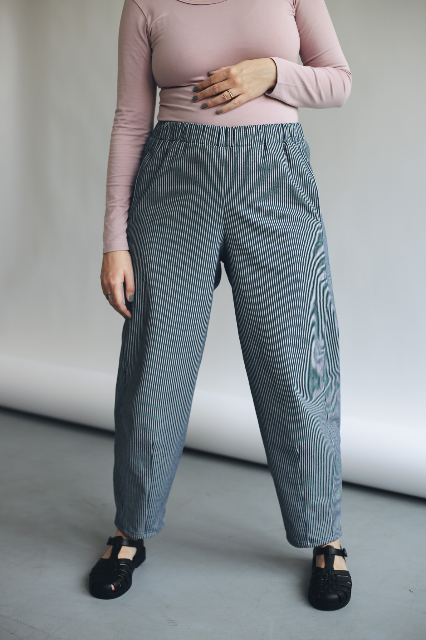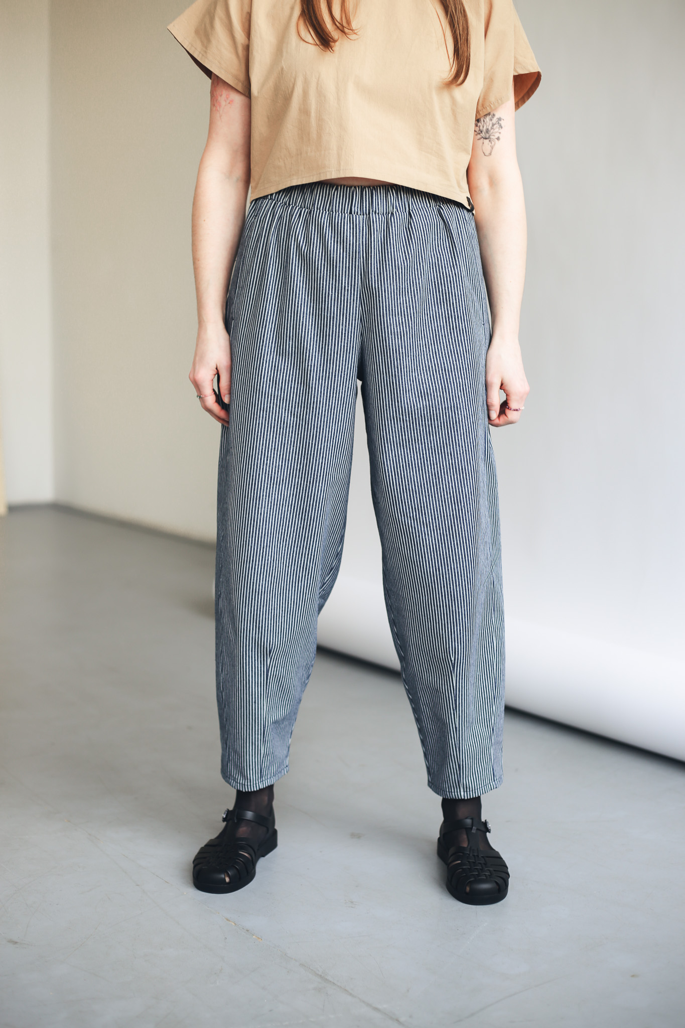 Kalhoty Barell jsou ušité z pevnější bavlněné látky, která jim pomáhá držet tvar a podtrhuje jejich elegantní vzhled. Zároveň zůstávají vzdušné a velmi pohodlné. V pase mají pružnou gumu pro maximální komfort a nechybí ani hluboké kapsy. Stylový a pohodlný kousek, který snadno unosíte každý den.