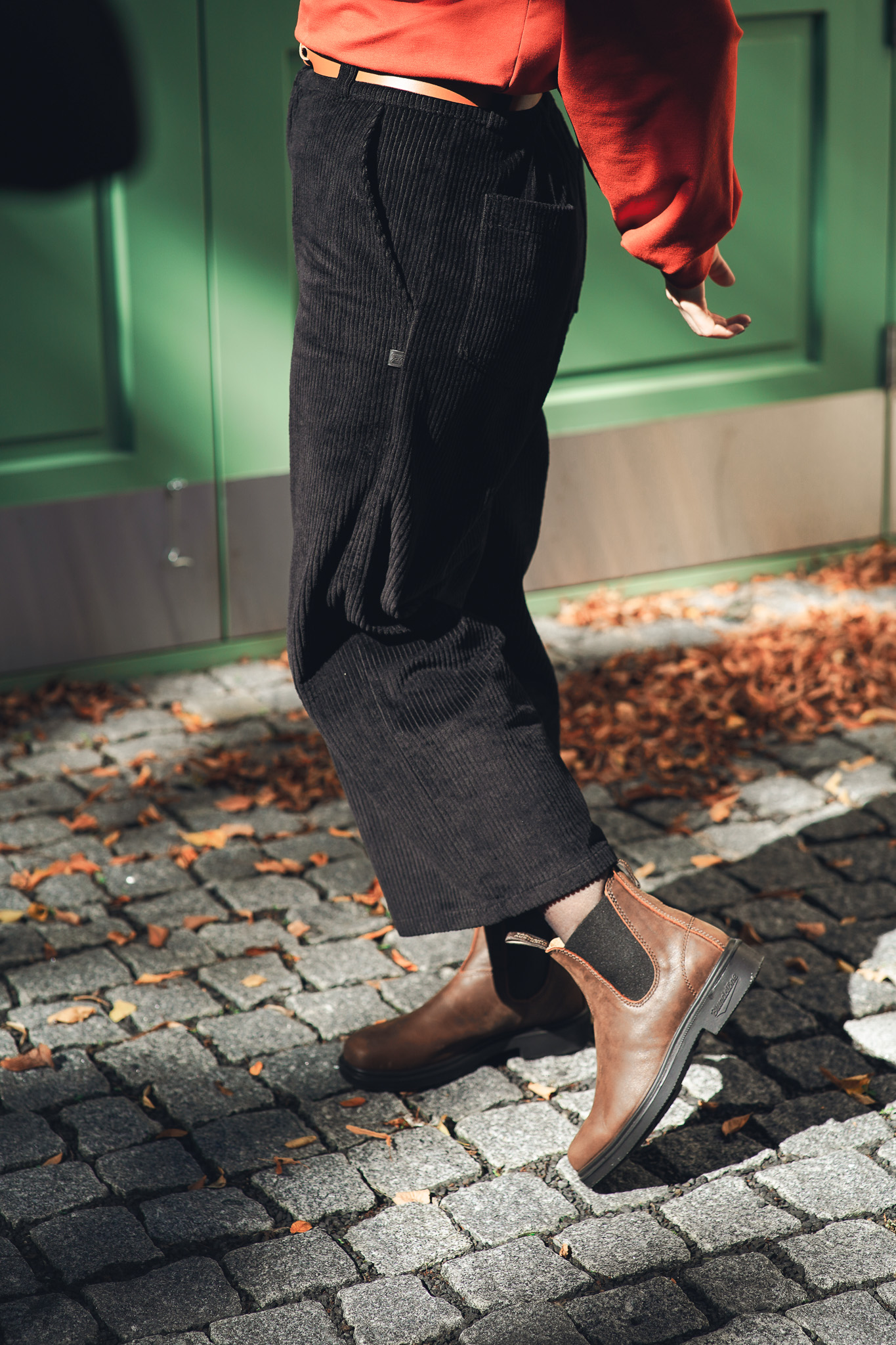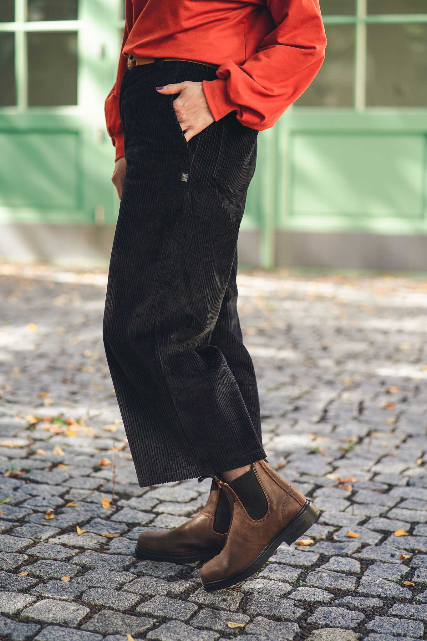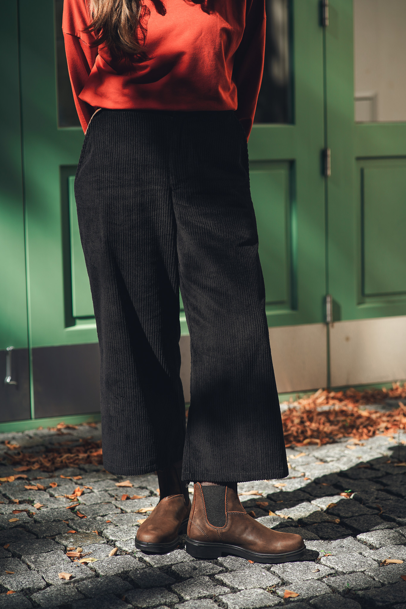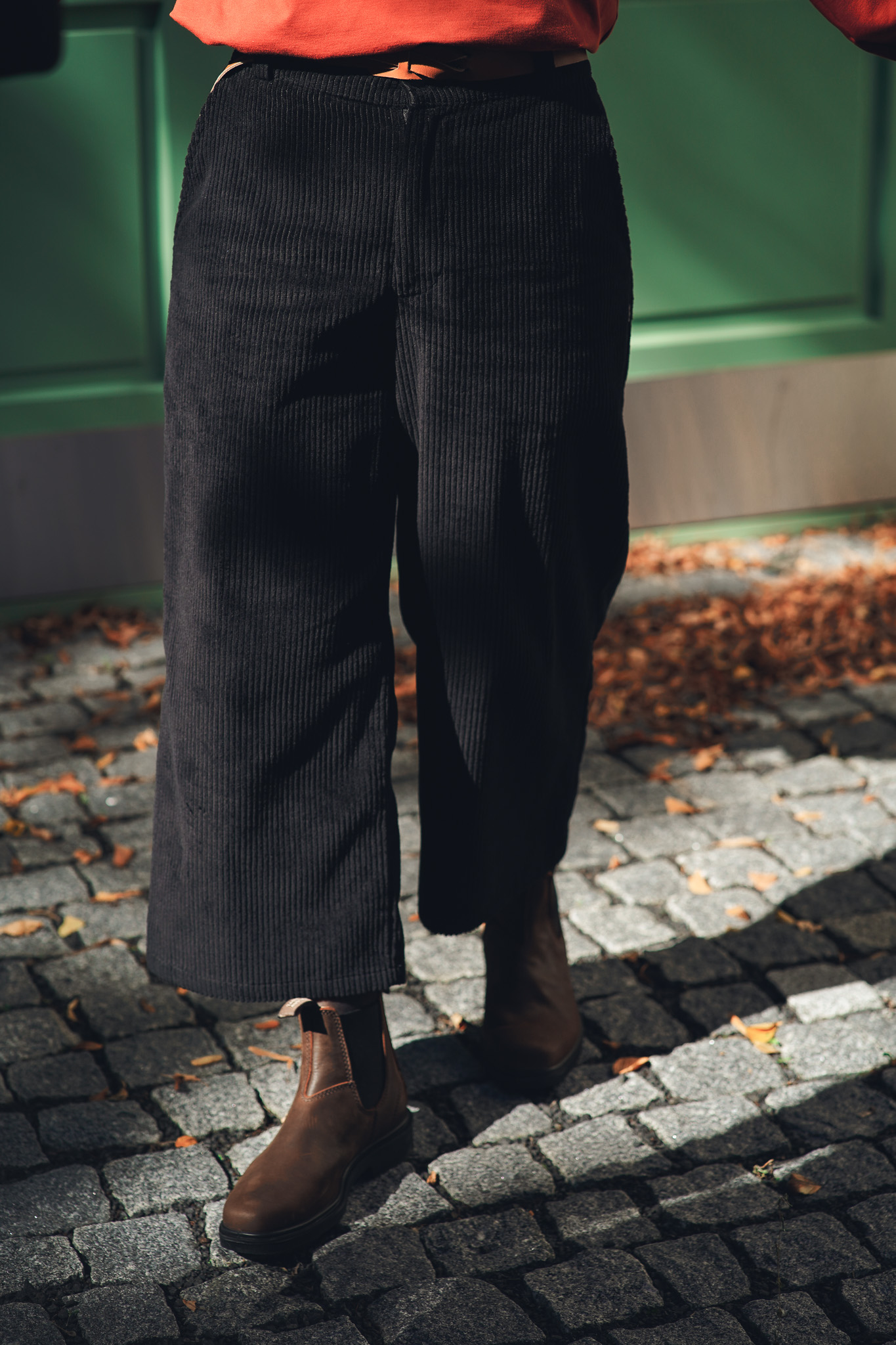 ×Tyto kalhoty Culottes jsou ušité z příjemného silnějšího manchesteru, který lehce pruží. Kalhoty jsou propracované a mají delší délku nohavic než naše klasické culottky. Zapínají se na zip a knoflík, navíc mají v zadní části pasu gumu, která se pohodlně přizpůsobí a nechybí ani praktické boční kapsy a dvě kapsy vzadu. Tento model je vhodný i pro postavy s širšími boky.