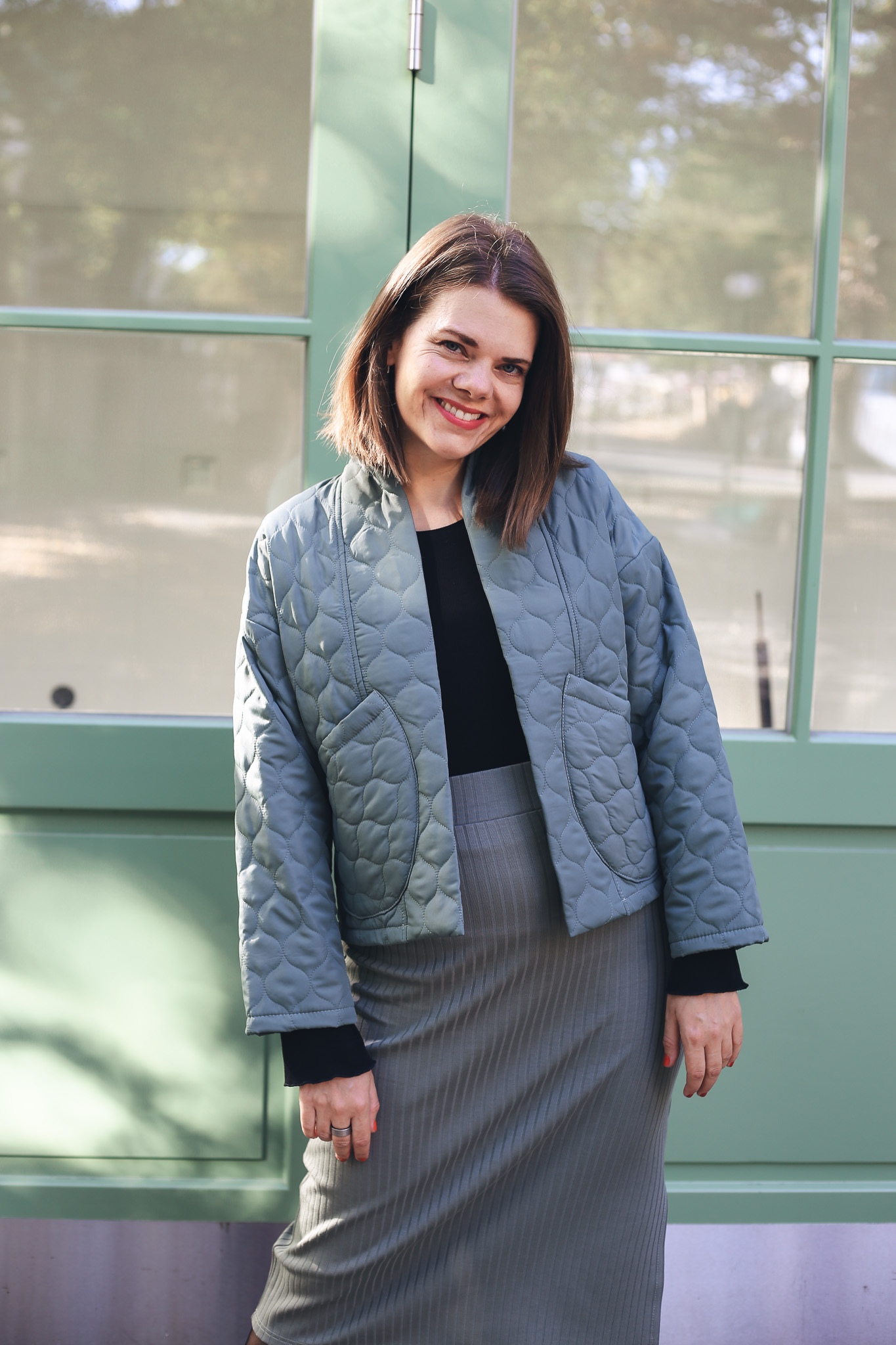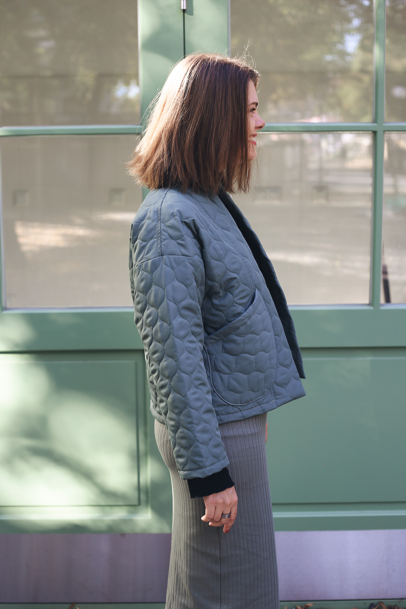 Je to ideální bunda na přechodové období a sluší jí to téměř se všemi našimi kousky – se sukněmi, s šaty, ale i s Culottes a Palazzo kalhotami.