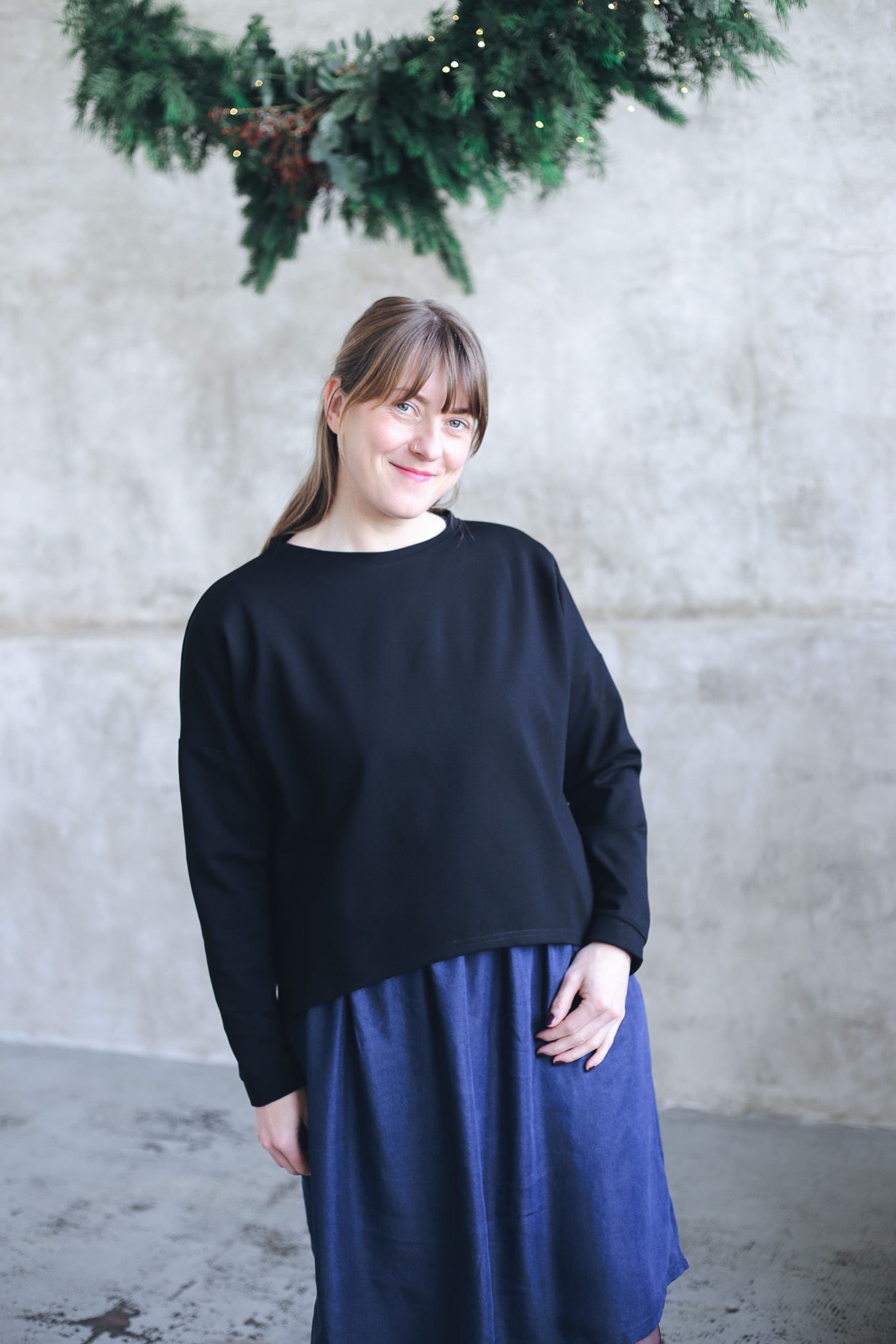 Mikinu jsem si koupila před pár týdny. Trochu jsem váhala – mám ráda spíš delší mikiny a svetry. Na tohle období je ale úplně perfektní. Na jaře a v létě nosím hodně sukně do pasu, samozřejmě od minile ;-), nebo šaty s širšími sukněmi. Mikina k nim vypadá fakt skvěle a materiál v chladnějších ránech opravdu zahřeje.