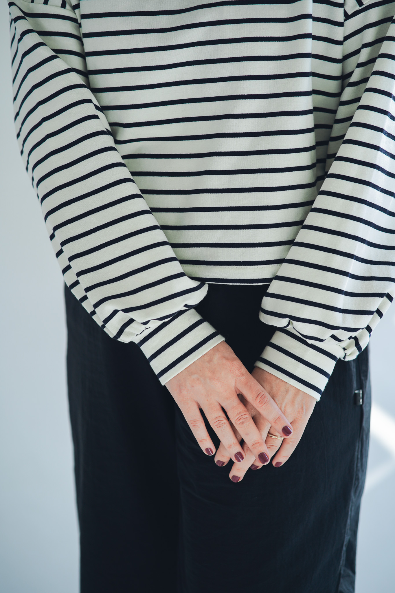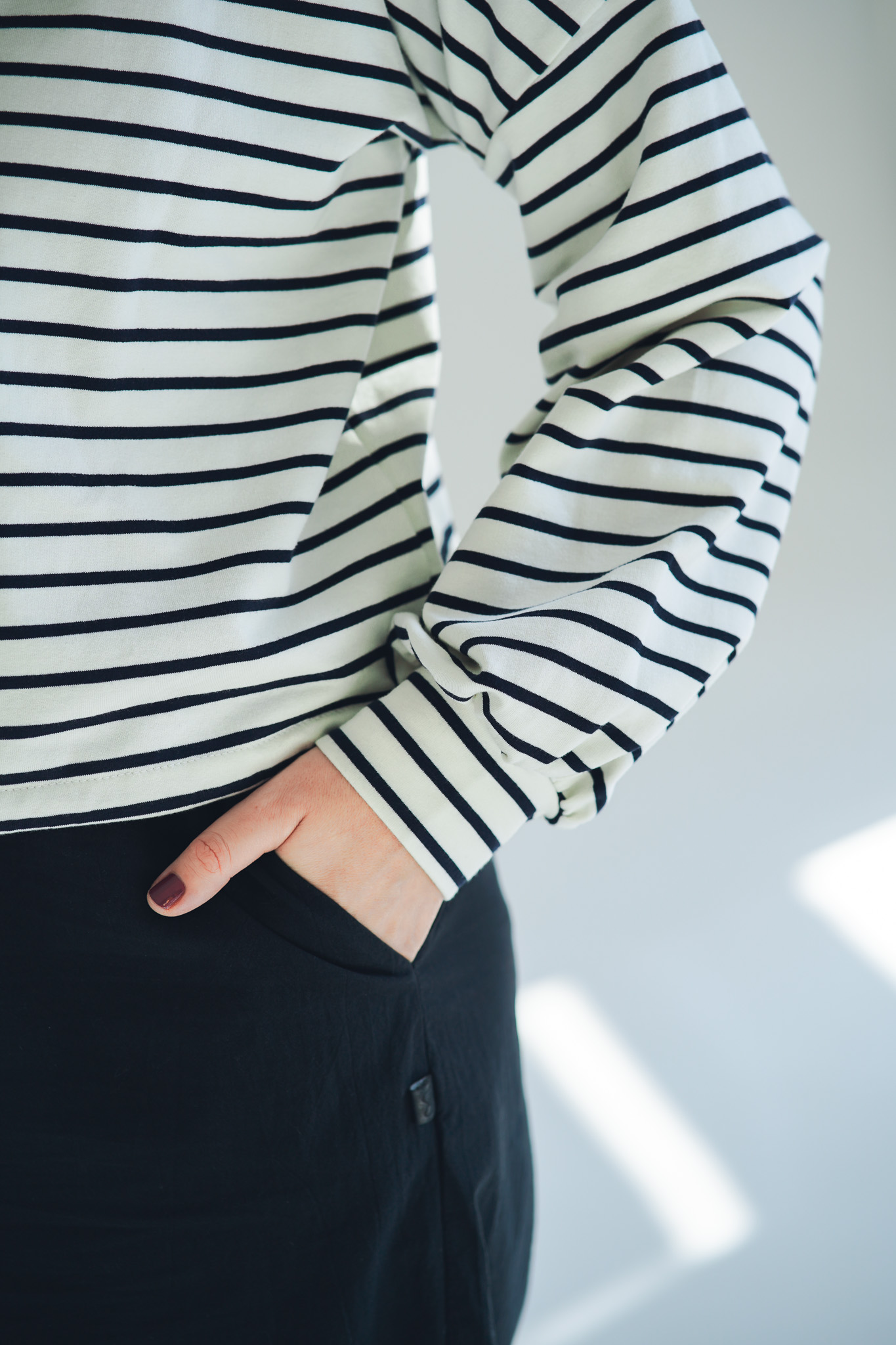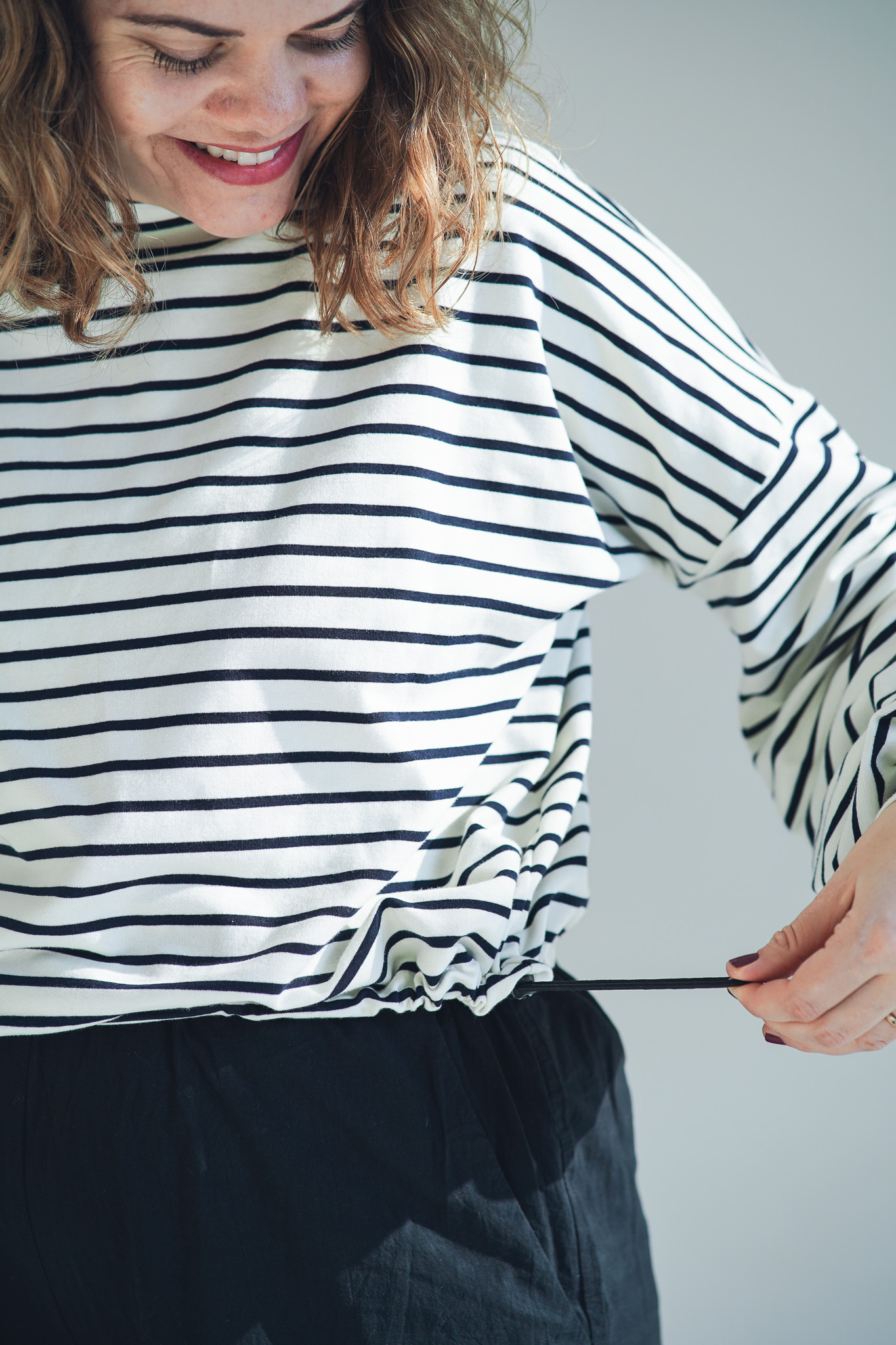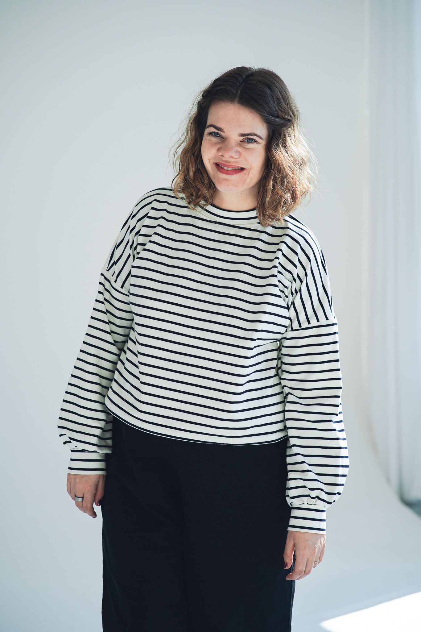 Mikina Fluff ve střihu crop-top s lehce nařasenými rukávy. Mikina má stahování na gumičku, takže ji můžete stáhnout a nařasit nebo nosit volně, rovnou. Skvěle se kombinuje s našimi vestami, ale sluší jí to i s šaty a sukněmi. Naším cílem bylo vytvořit univerzální mikinu, která se dá nosit v různých variantách a bude to základ do vašeho minimalistického šatníku.