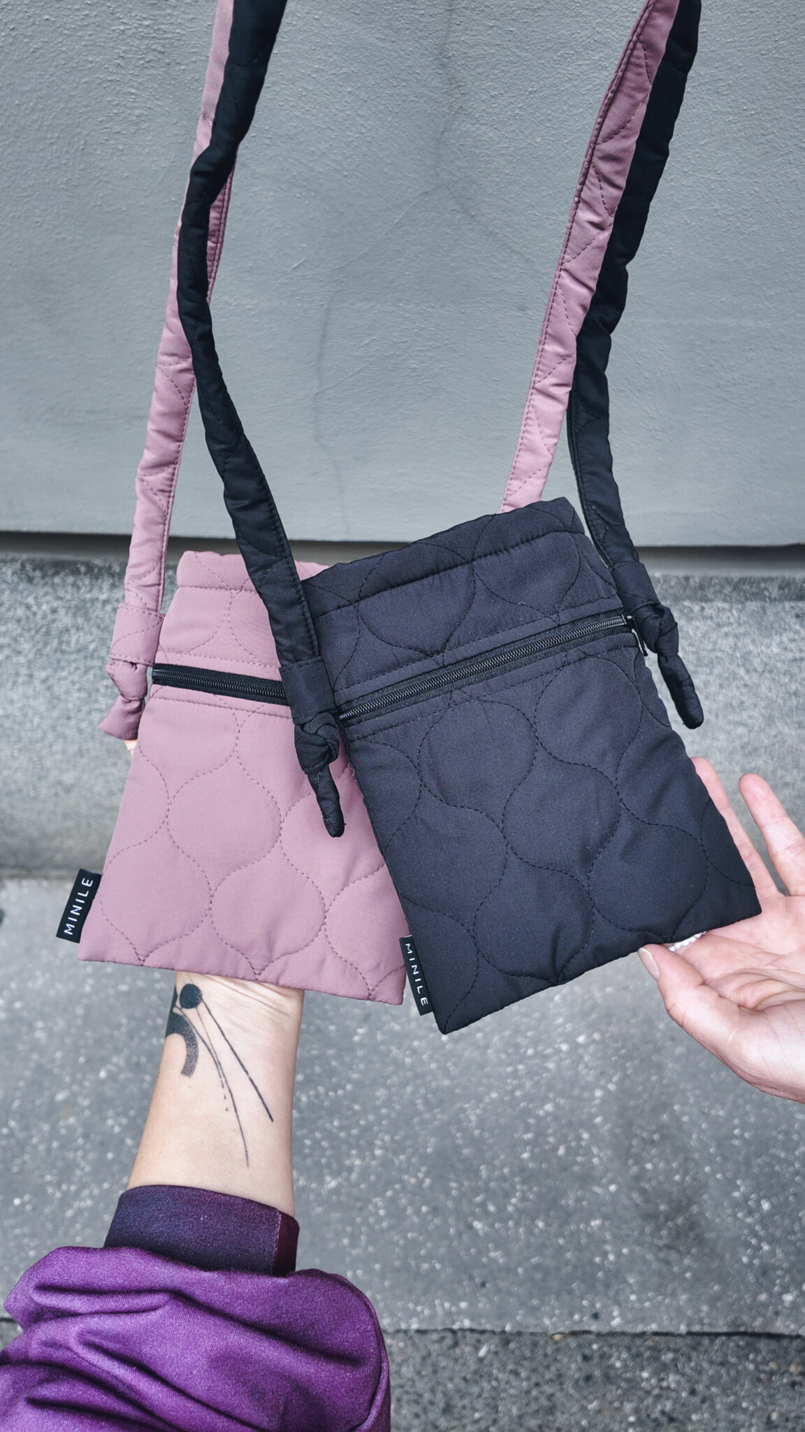 Tento kousek jsme zařadili do kategorie udržitelné produkty, protože se snažíme zpracovávat všechny zbytky látek, které nám při výrobě vznikají. Tato taštička je částečně ušita ze zbylých látek z našich bund a vestiček.