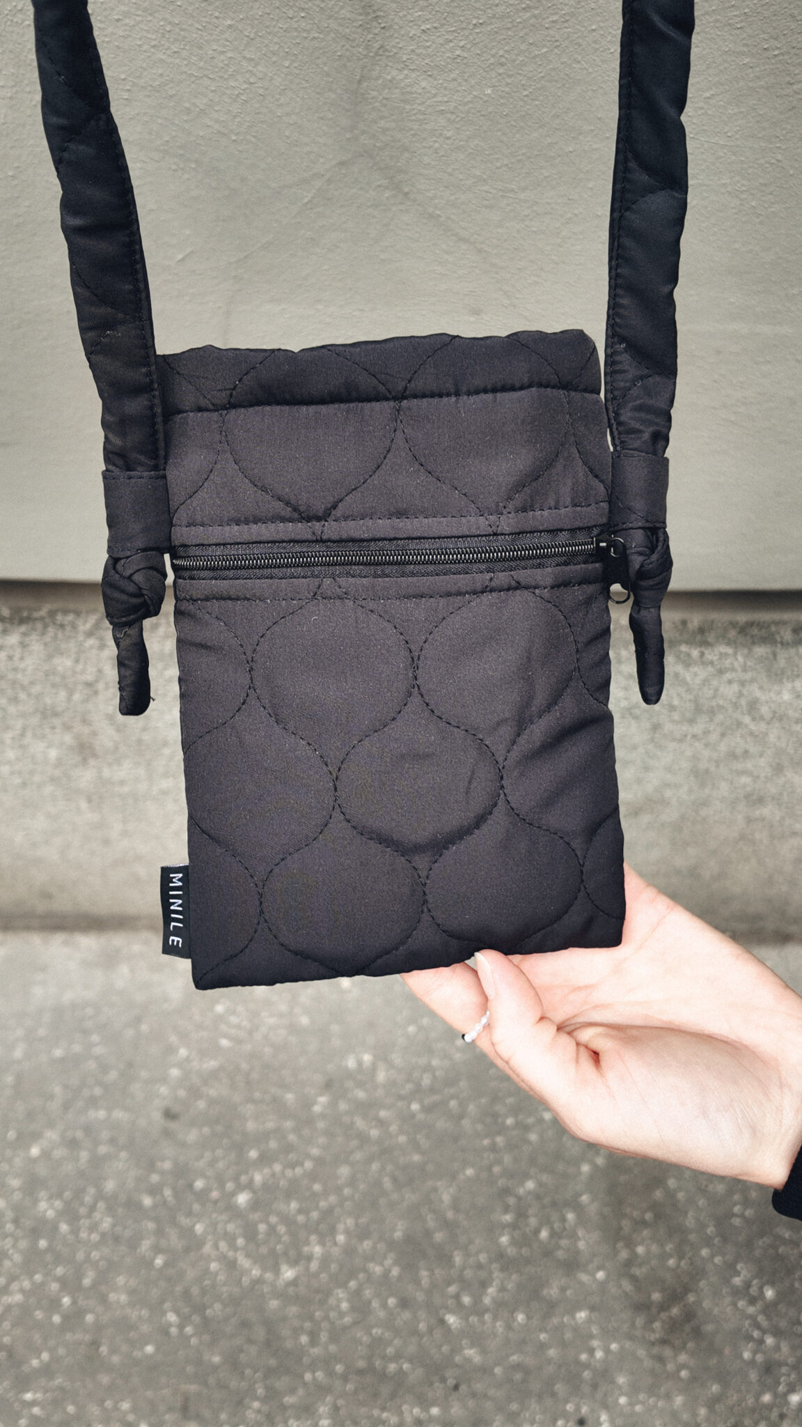Taštička na mobil s kapsou na zip a popruhem. V taštičce se místo mobilu dá také nosit třeba deštník či lahev s vodou, ale i všechny podstatné maličkosti jako klíče, rtěnka, gumička na vlasy nebo kapesníčky. Zkrátka, všechny drobnosti, které nutně potřebujete.