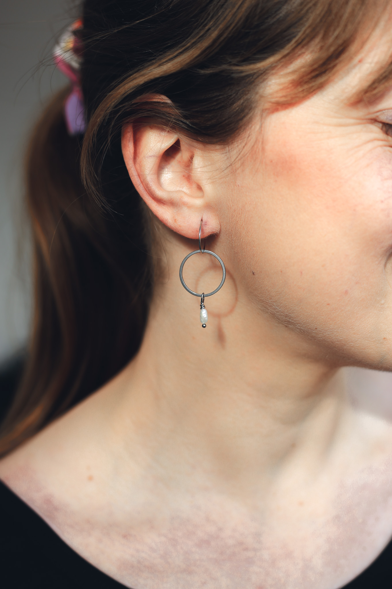 ×Visací kruhové náušnice s perlou, které doplní váš Minile šatník. Dva spojené kruhy symbolizují pouto dvou přátel či lásku.