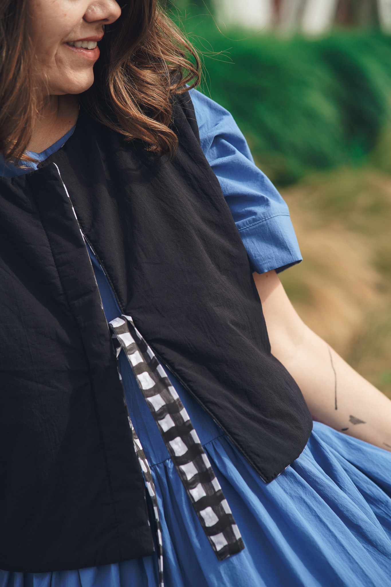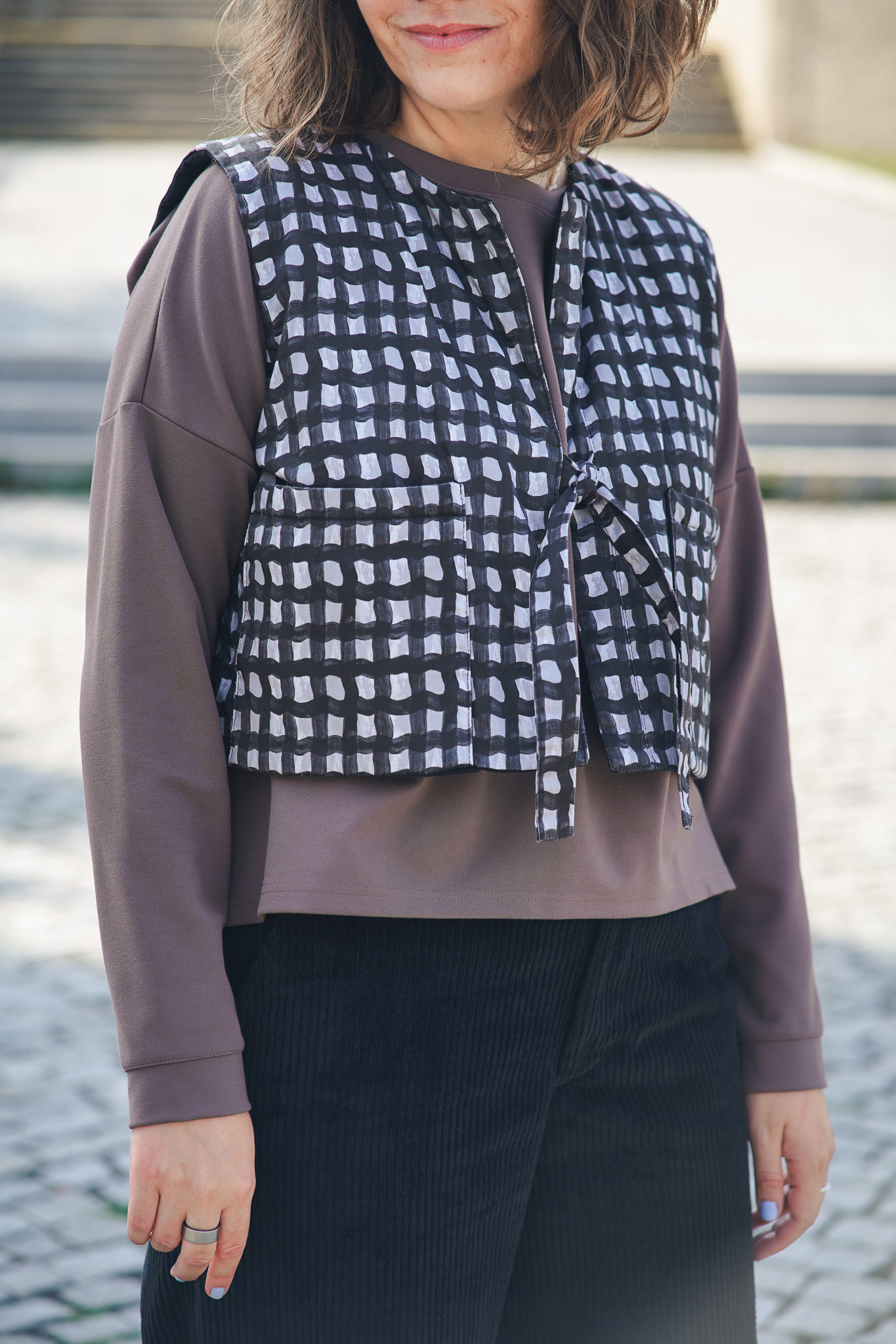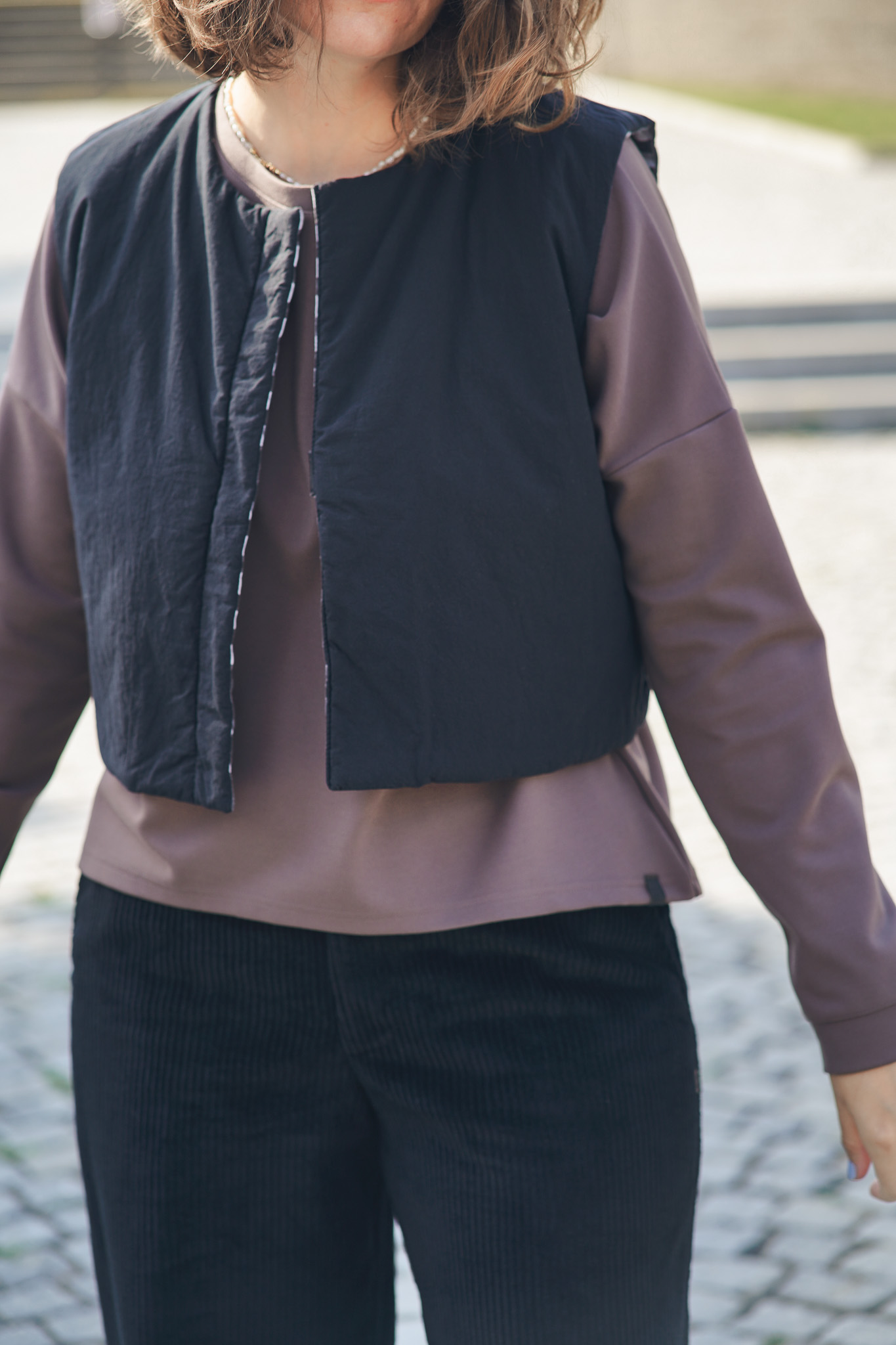 Je to ideální kousek na přechodové období a také pro vrstvení se všemi našimi šaty. Vestu unosíte od podzimu do jara a s teplým svetrem dokonce i v mírnější zimě.