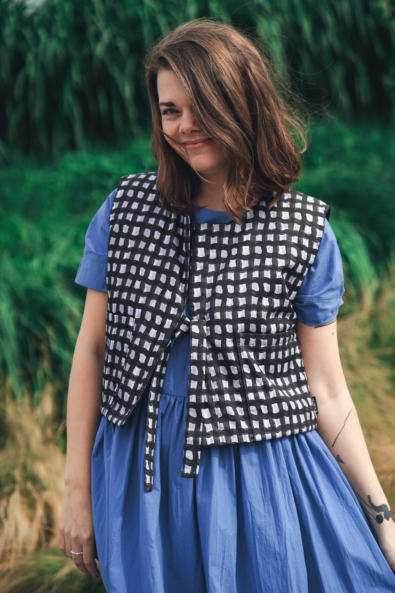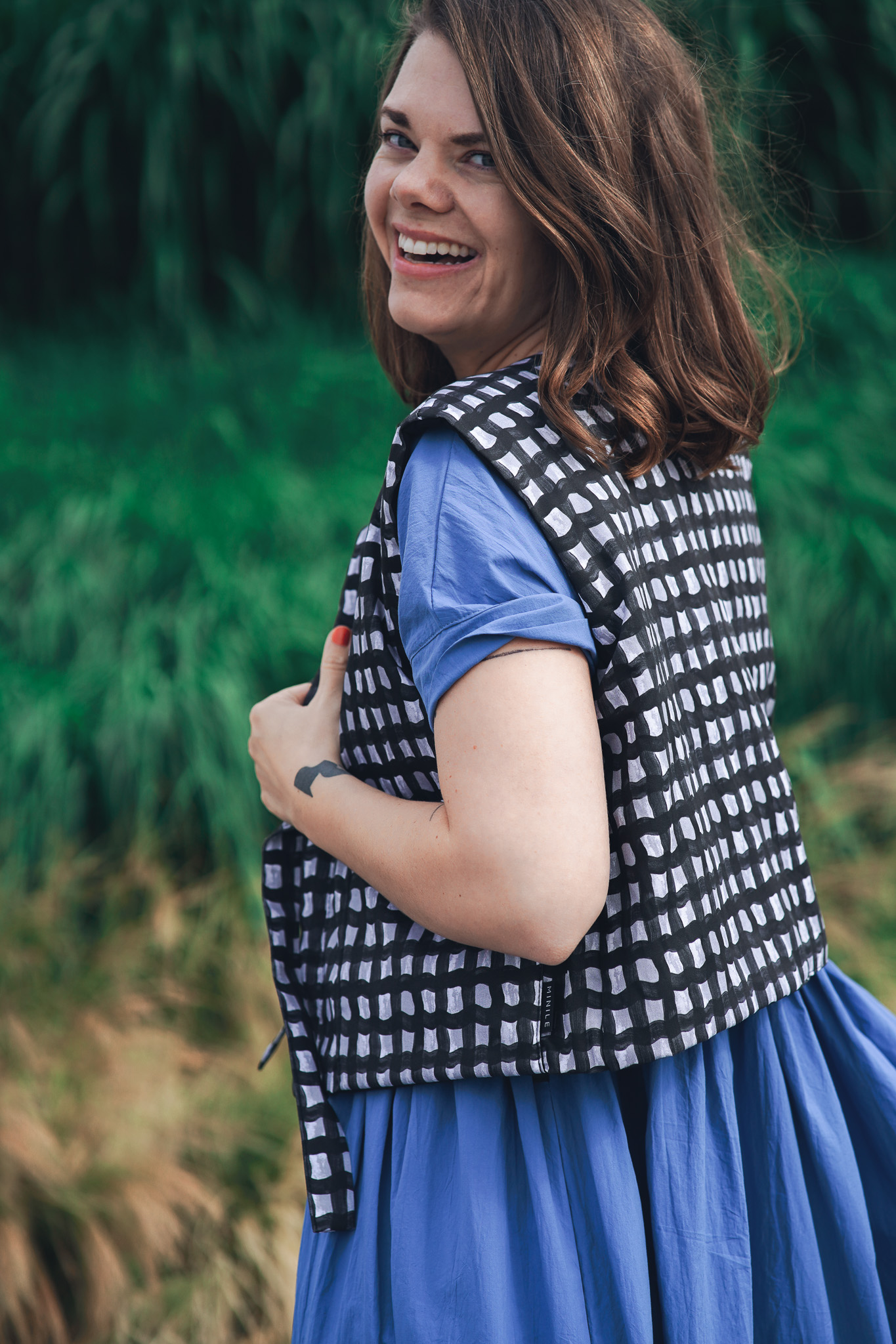 ×Oboustranná vestička z limitované autorské látky, která doplní a rozzáří vaše outfity a zároveň krásně zahřeje. Vesta je na zavazování, s dvěma bočními kapsami. Velikost je hodně na tělo, pokud chcete pod vestu nosit tlustý svetr, pořiďte si o velikost větší. Pokud ji budete nosit na košile, šaty a halenky, pořiďte si vaši standartní velikost. Je skvělá i v kombinaci s naší kimono bundou.