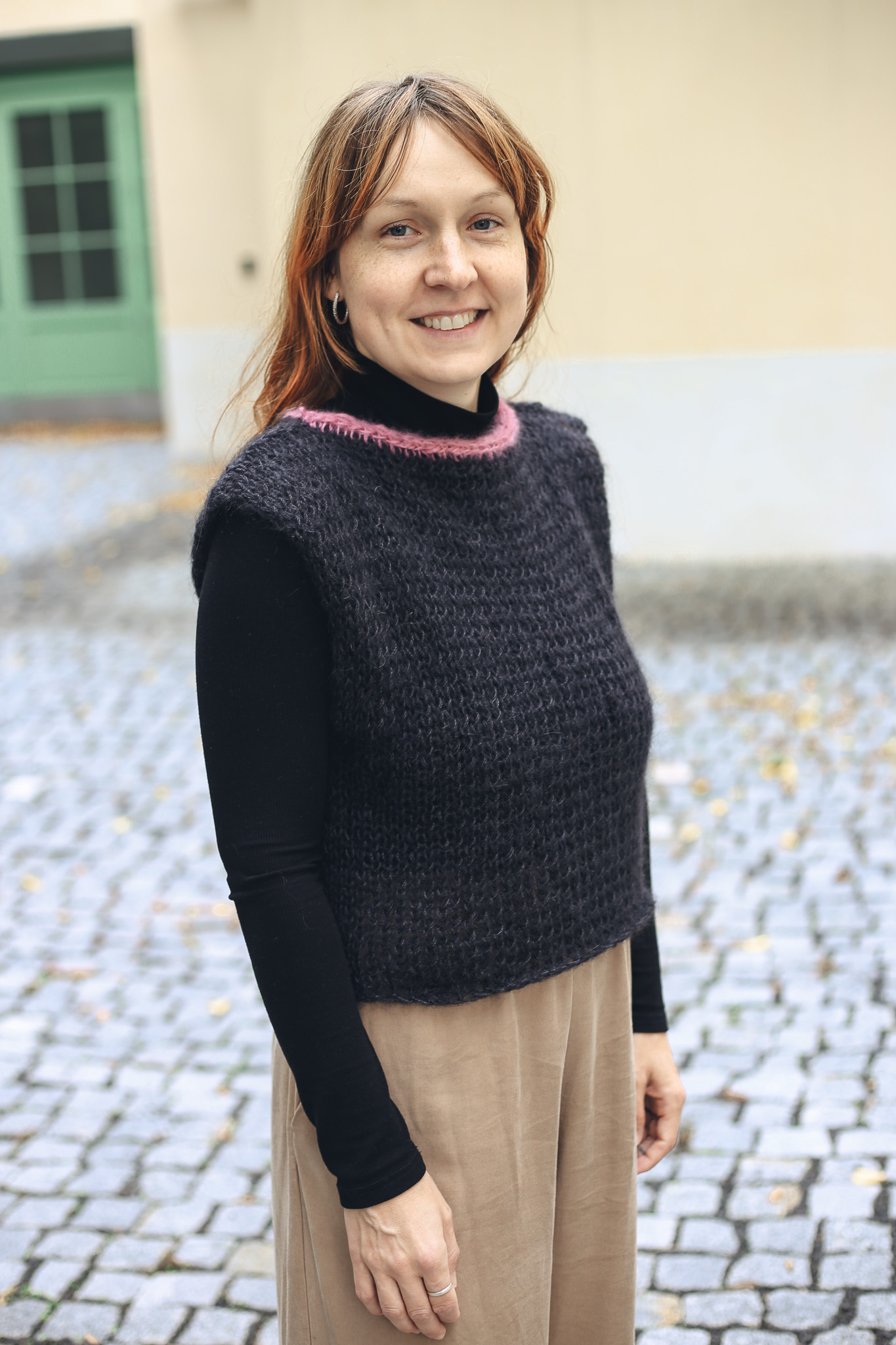 Ručně pletená vesta z luxusní směsi mohéru a morušového hedvábí je kousek, který povýší každý outfit. Je lehká jako pírko, jemná na dotek a hřejivá. Díky volnějšímu střihu vesty vám v ní bude pohodlně a můžete vrstvit s košilí, tričkem nebo šaty podle vaší nálady a počasí.
