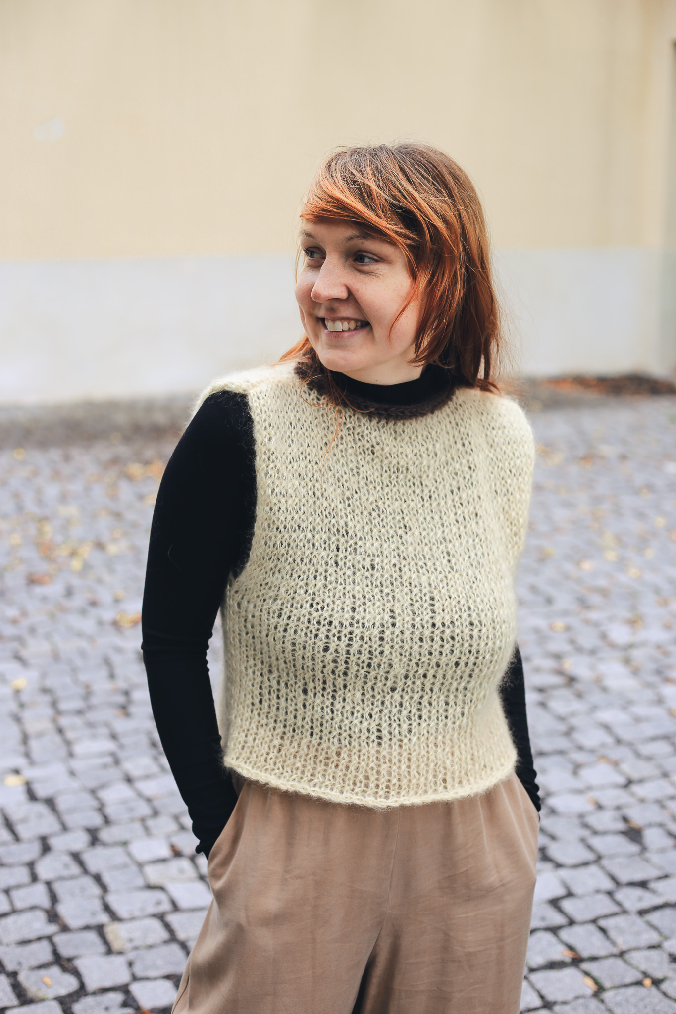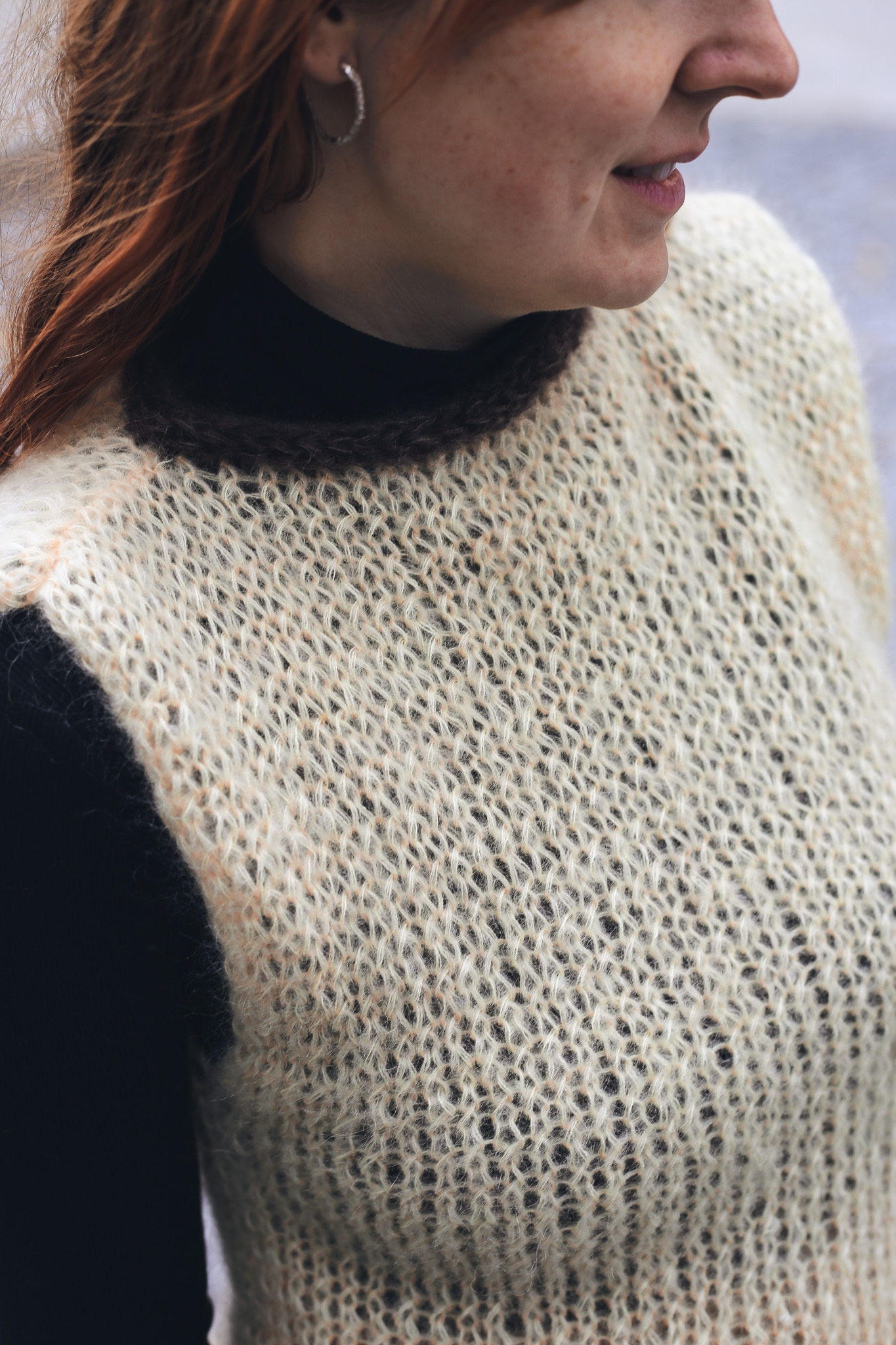 ×Ručně pletená vesta z luxusní směsi mohéru a morušového hedvábí je kousek, který povýší každý outfit. Je lehká jako pírko, jemná na dotek a hřejivá. Díky volnějšímu střihu vesty vám v ní bude pohodlně a můžete vrstvit s košilí, tričkem nebo šaty podle vaší nálady a počasí.