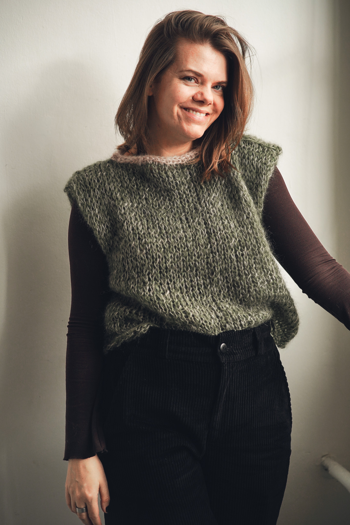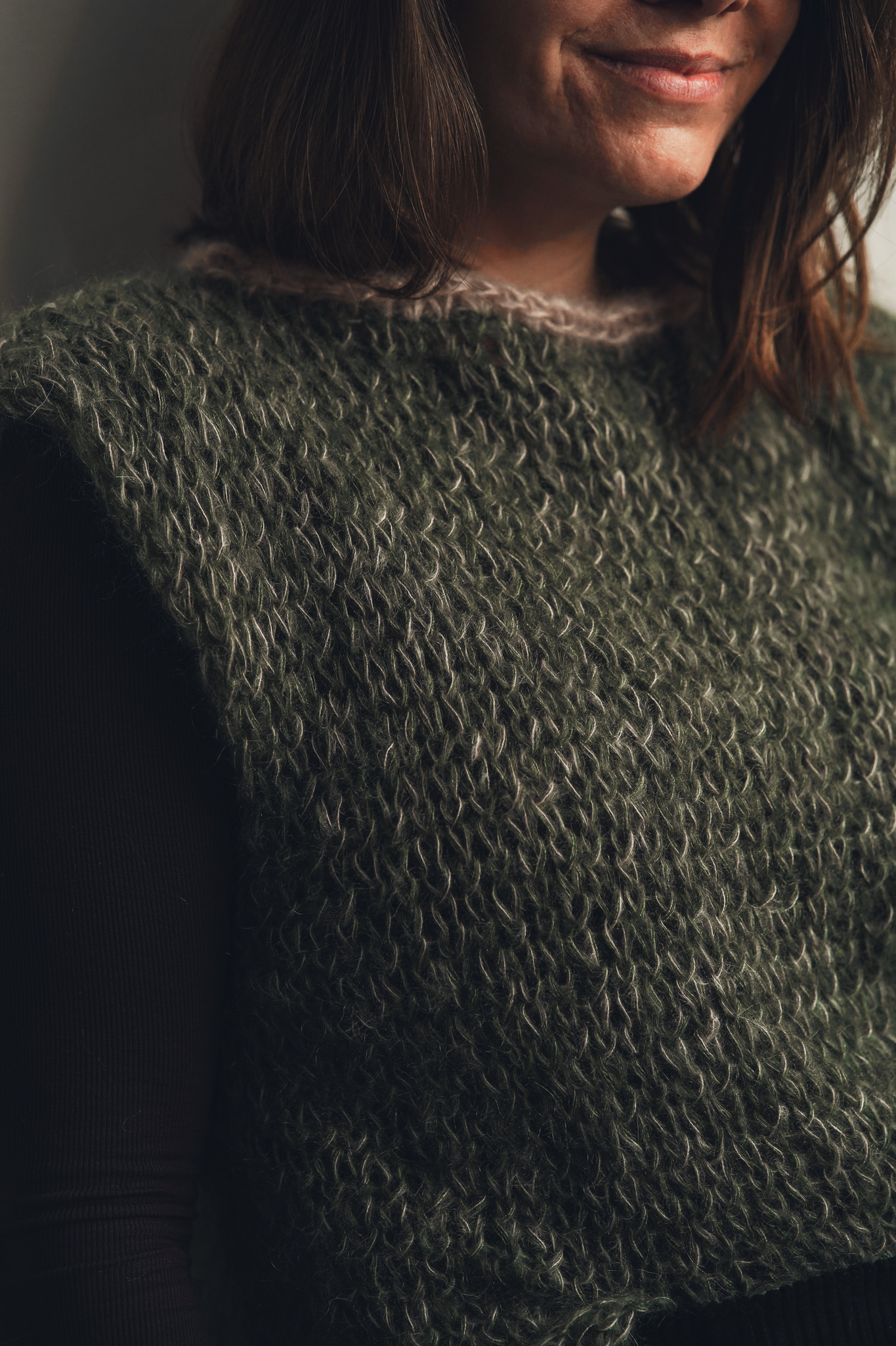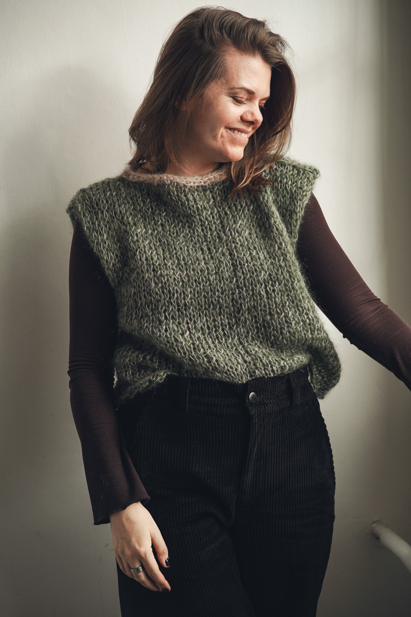 ×Ručně pletená vesta z luxusní směsi mohéru a morušového hedvábí je kousek, který povýší každý outfit. Je lehká jako pírko, jemná na dotek a hřejivá. Díky volnějšímu střihu vesty vám v ní bude pohodlně a můžete vrstvit s košilí, tričkem nebo šaty podle vaší nálady a počasí.