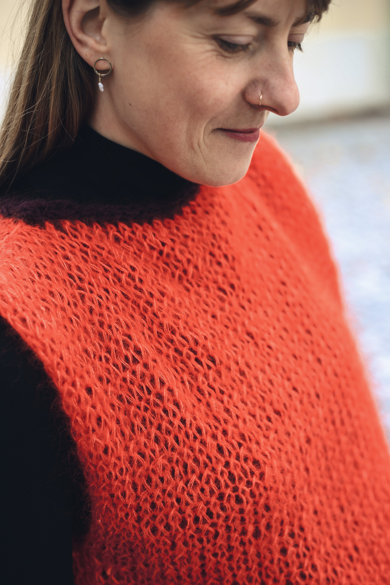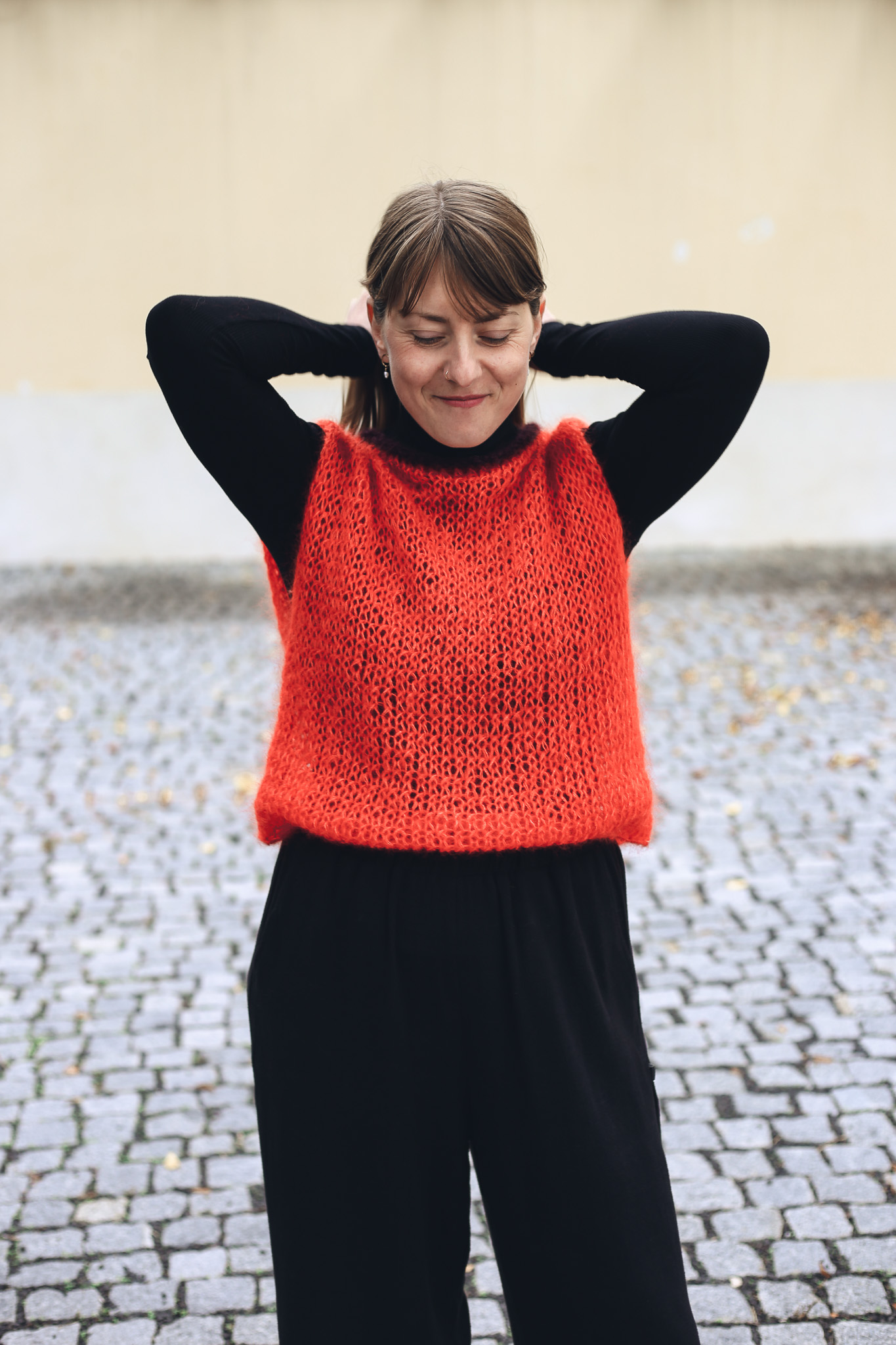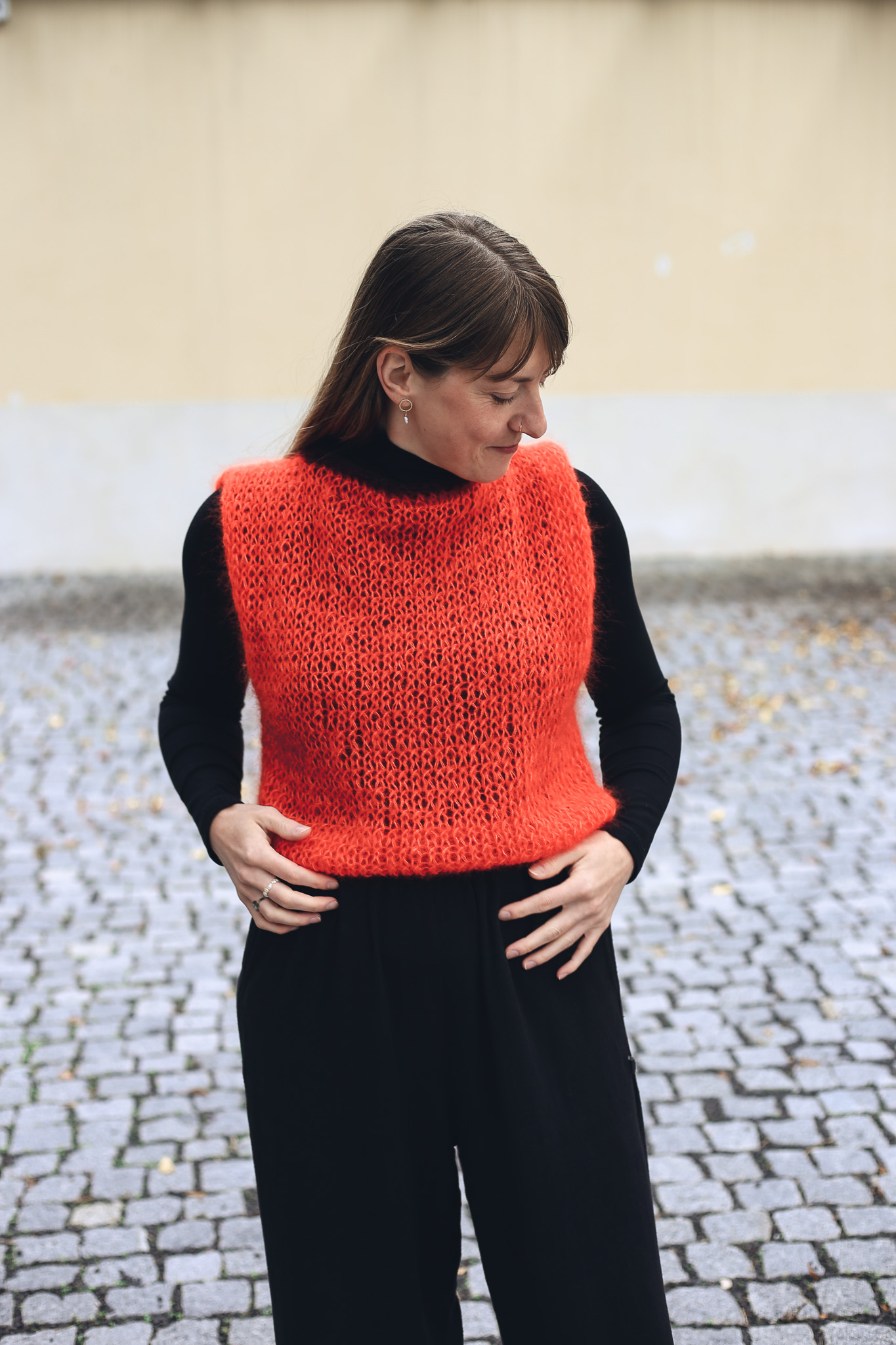 ×Ručně pletená vesta z luxusní směsi mohéru a morušového hedvábí je kousek, který povýší každý outfit. Je lehká jako pírko, jemná na dotek a hřejivá. Díky volnějšímu střihu vesty vám v ní bude pohodlně a můžete vrstvit s košilí, tričkem nebo šaty podle vaší nálady a počasí.