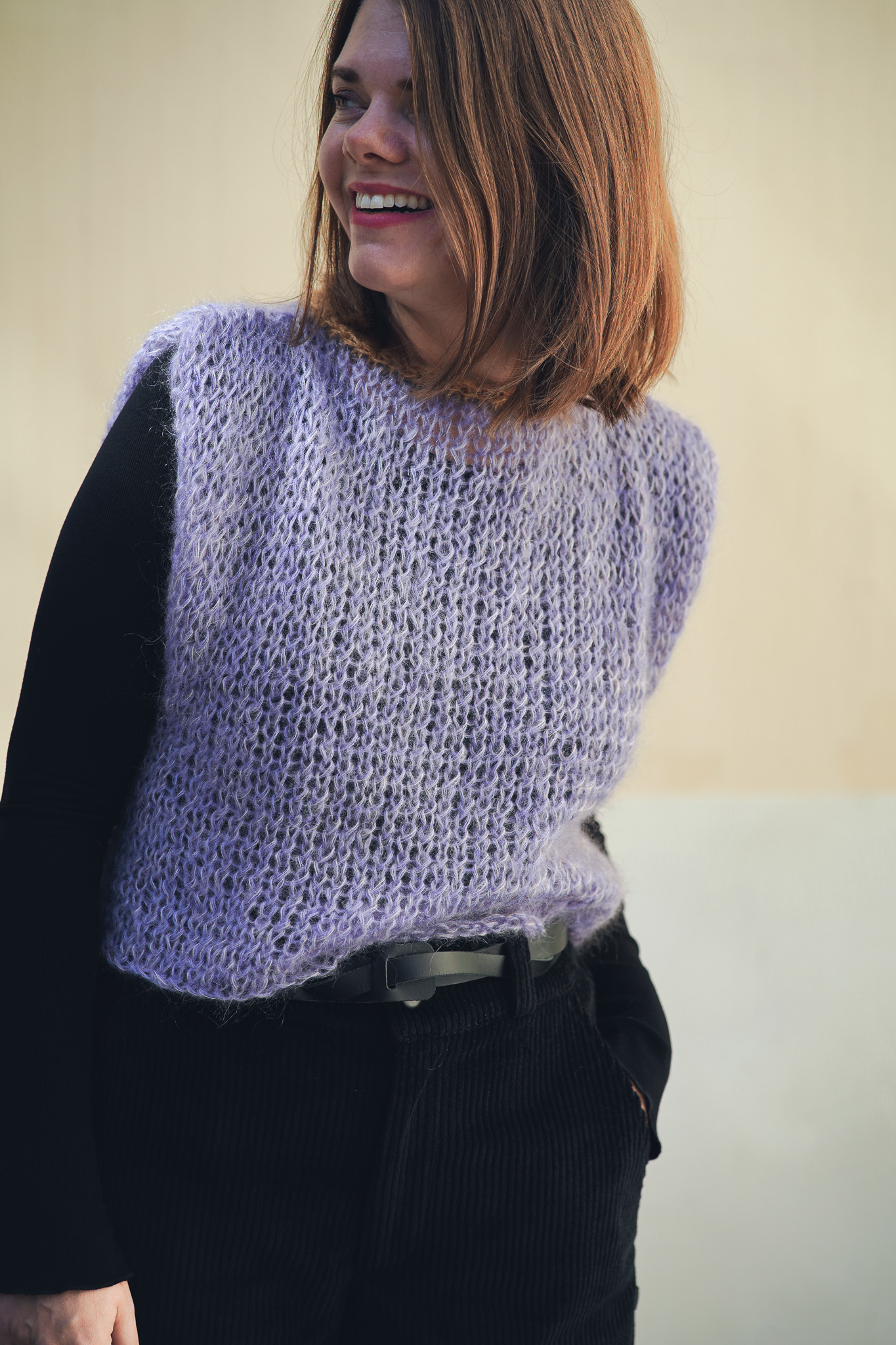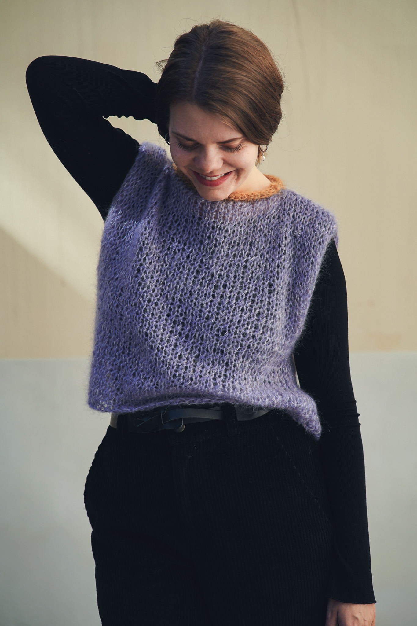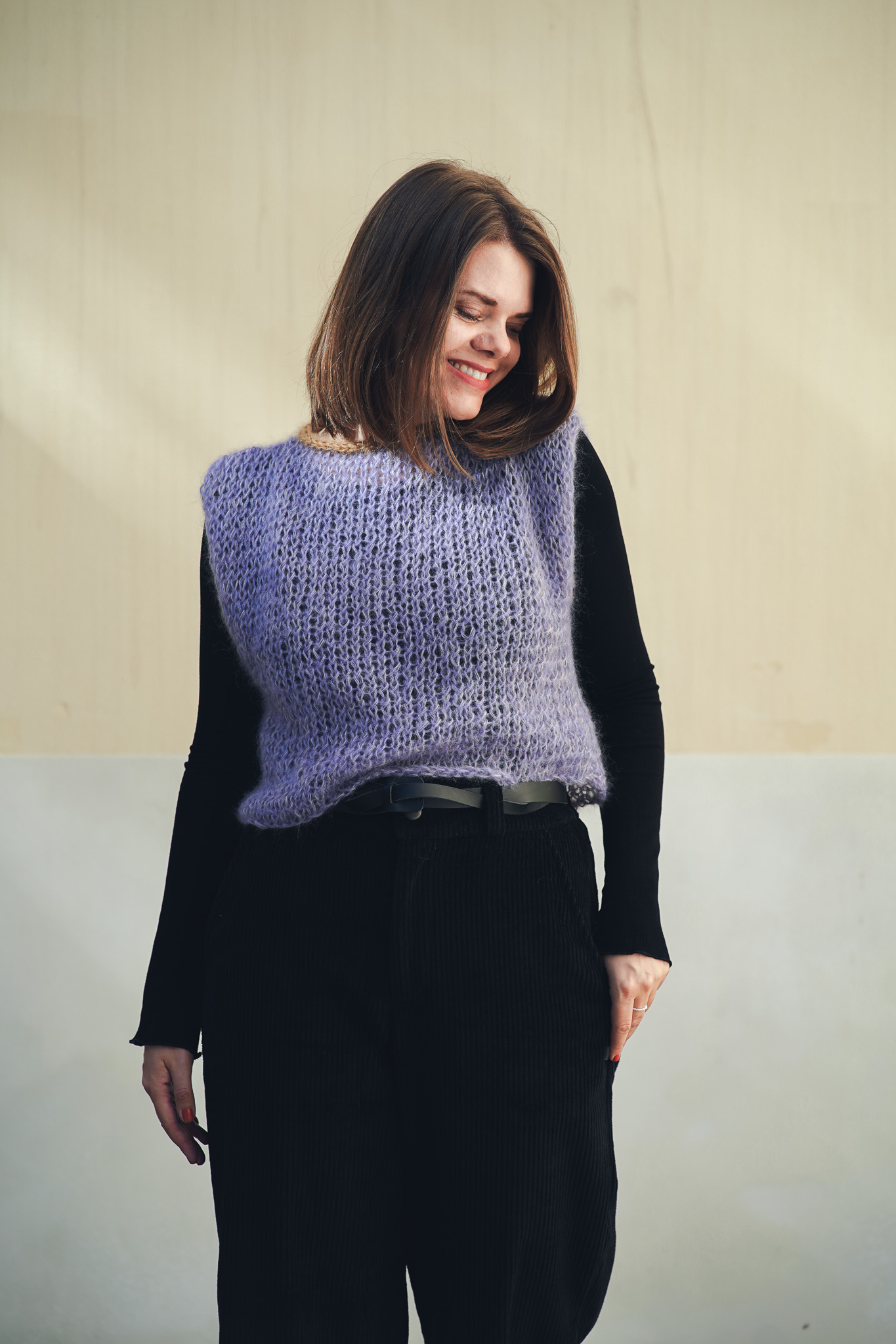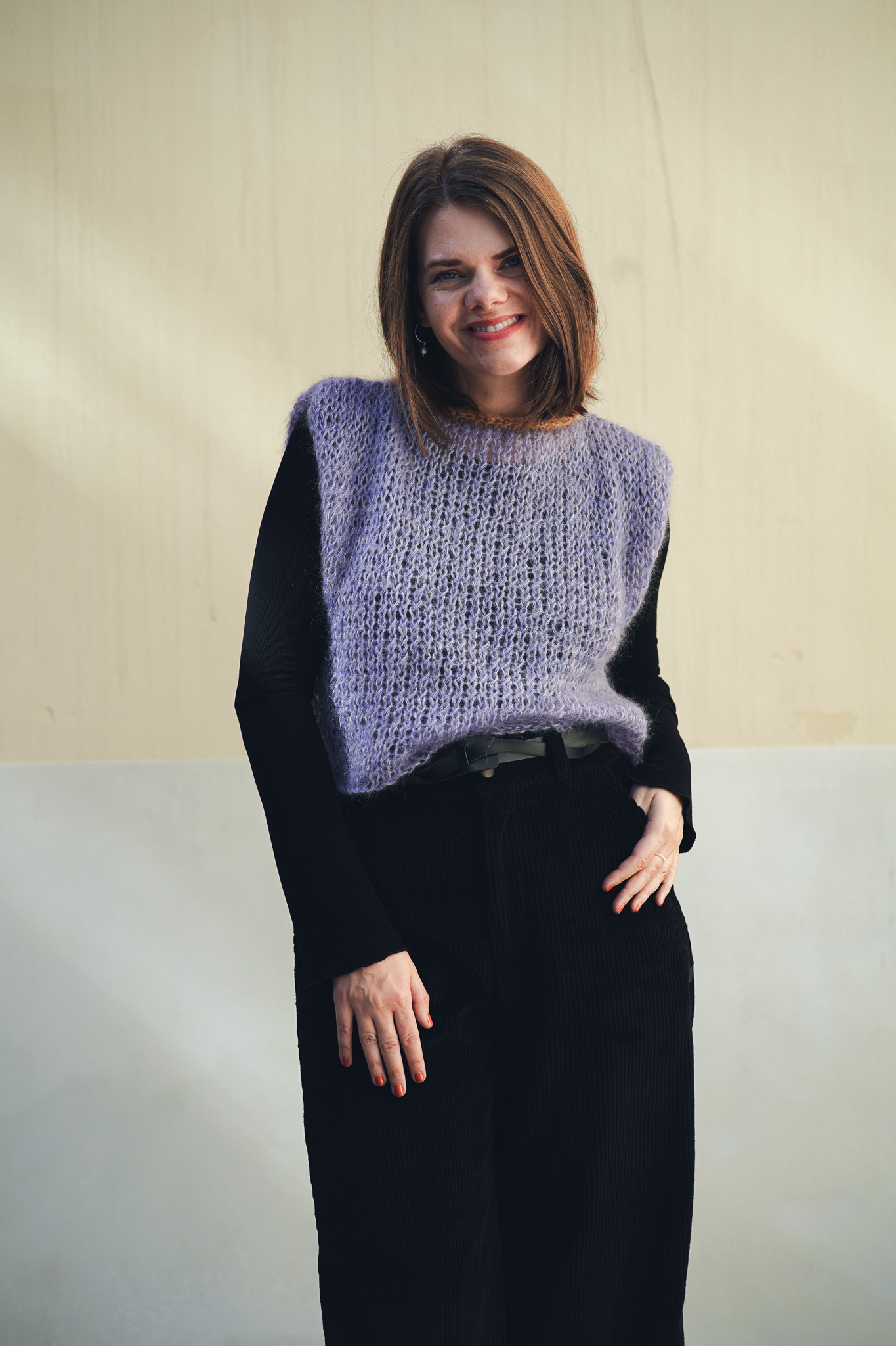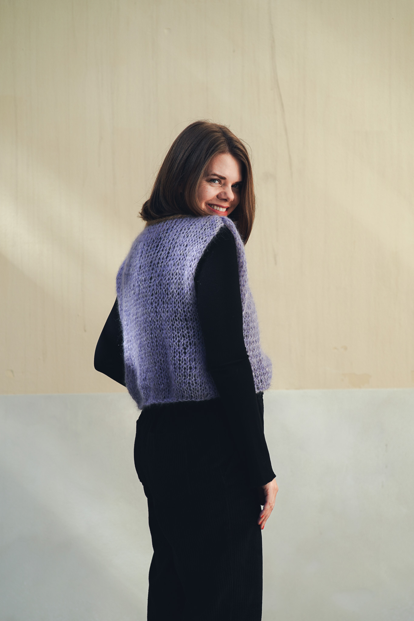 ×Ručně pletená vesta z luxusní směsi mohéru a morušového hedvábí je kousek, který povýší každý outfit. Je lehká jako pírko, jemná na dotek a hřejivá. Díky volnějšímu střihu vesty vám v ní bude pohodlně a můžete vrstvit s košilí, tričkem nebo šaty podle vaší nálady a počasí.