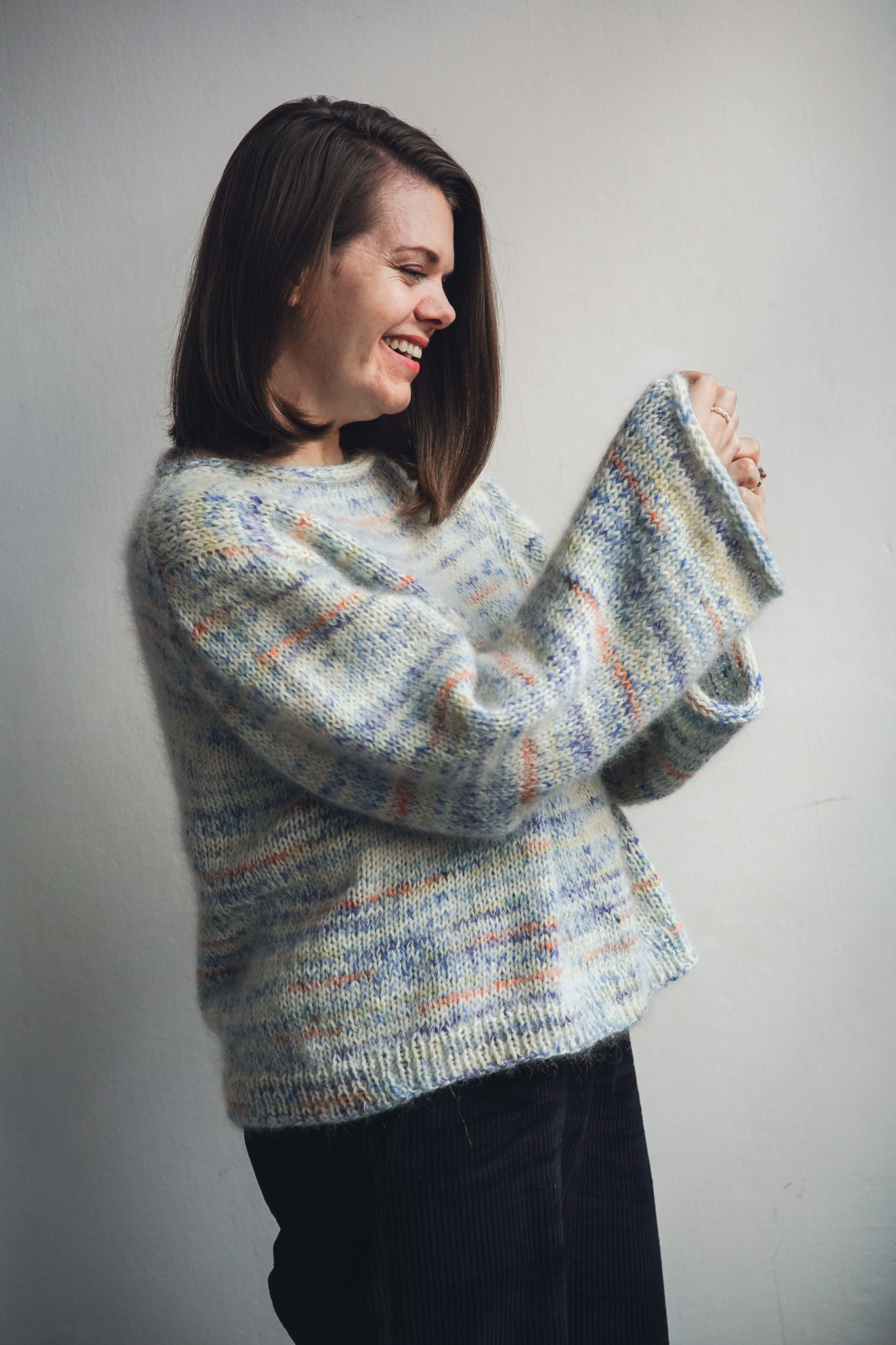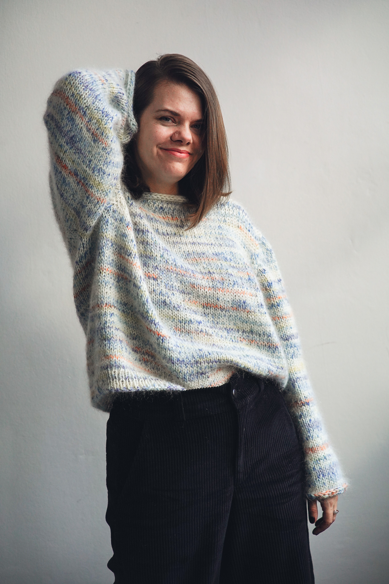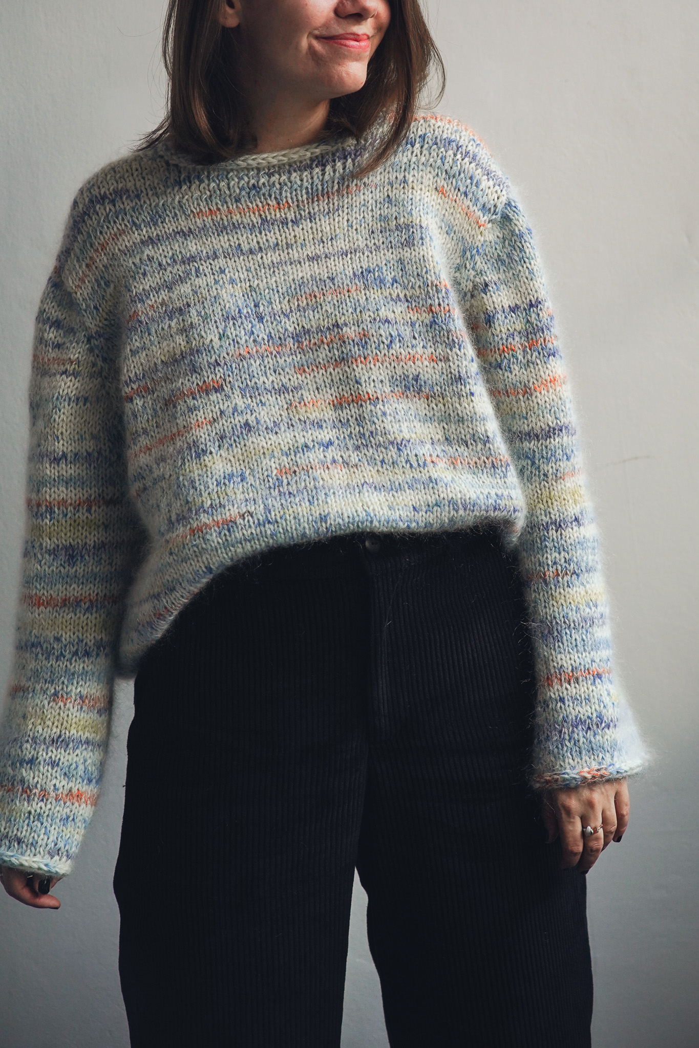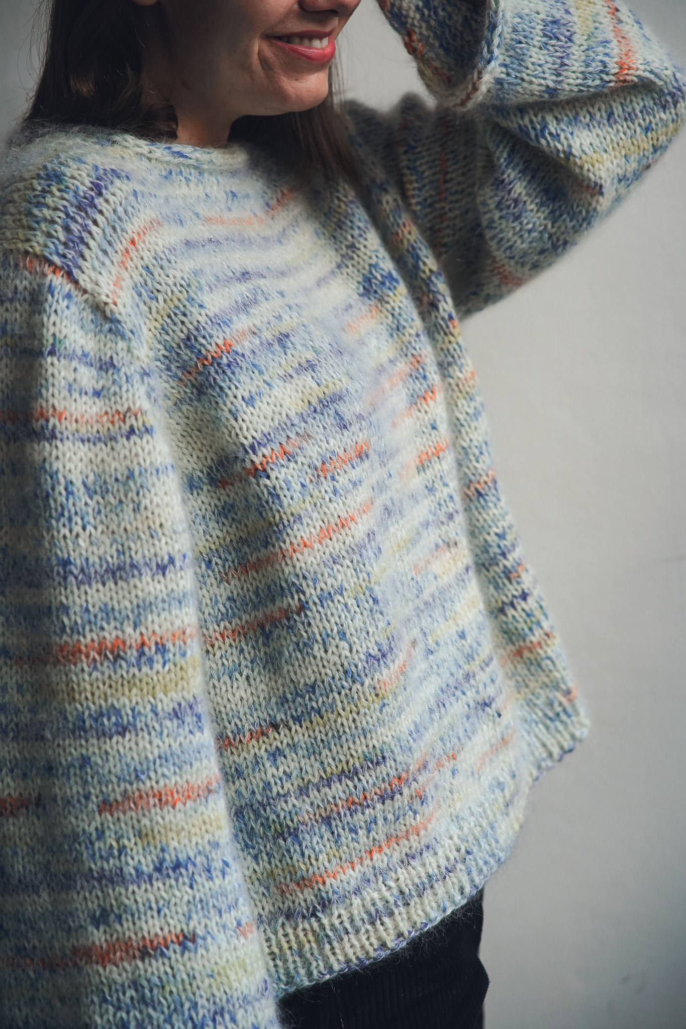 Svetr je upleten a lehce poupraven podle návodu Drops Design.