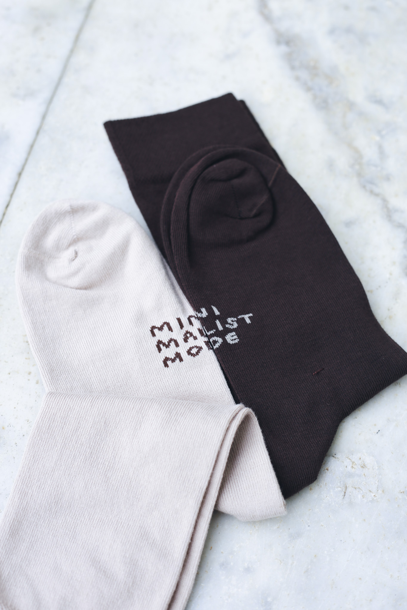 ×Ponožky jsou utkané na Vysočině. Tentokrát jsme je nechali čisté bez potisku, pro ty, kdo mají rádi jednoduchost. Naspod je nápis Minimalist mode, který napsala Nikola Logosová a celé ponožky vyrobila malá česká značka V páru.
