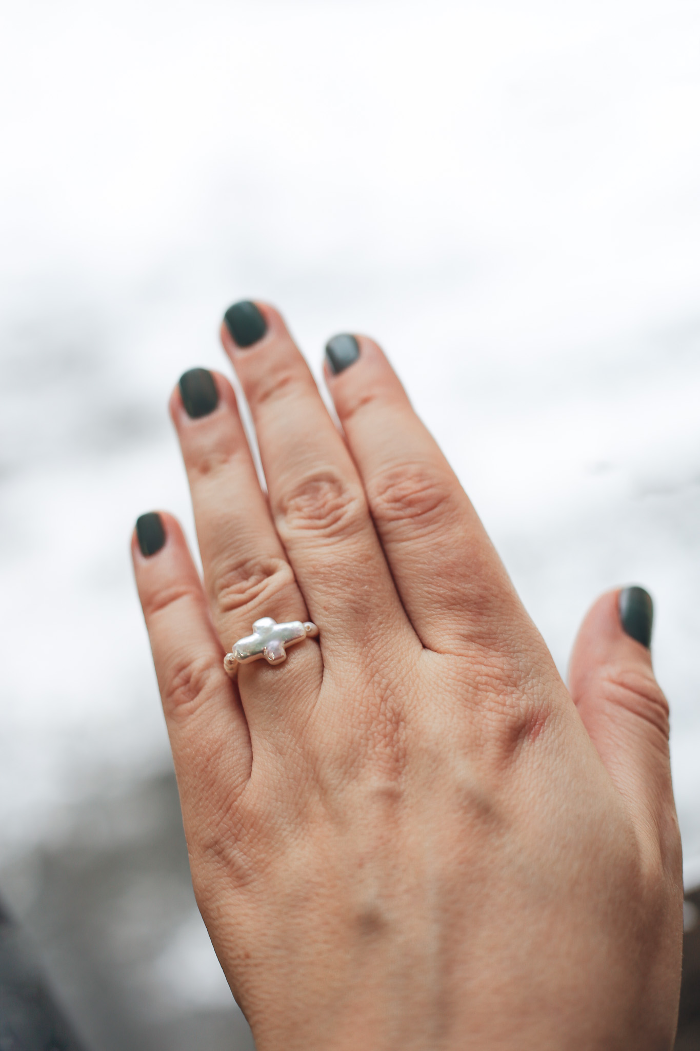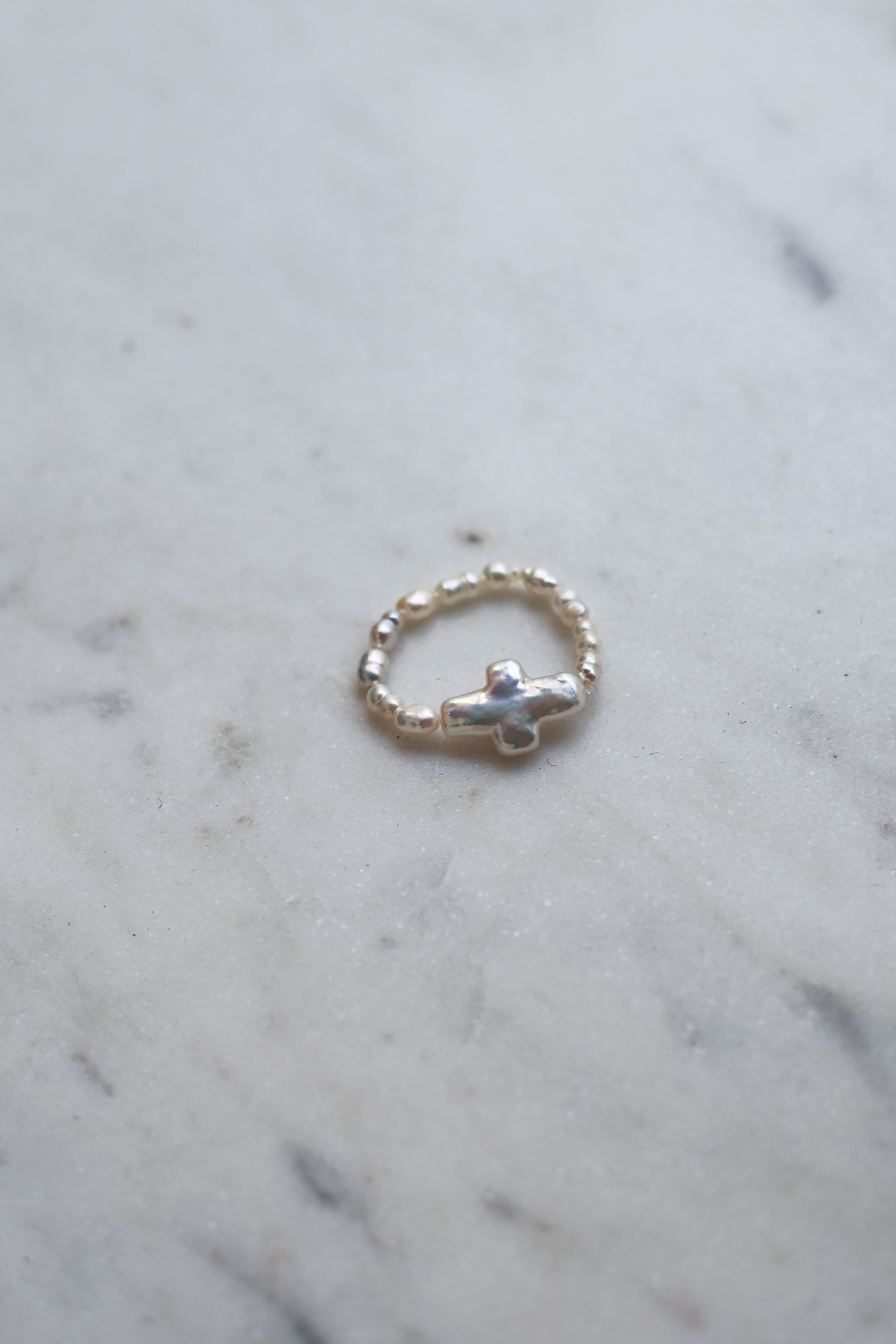 ×Prstýnek s perlami a jednou větší perlou na gumičce, který se přizpůsobí každému prstu.