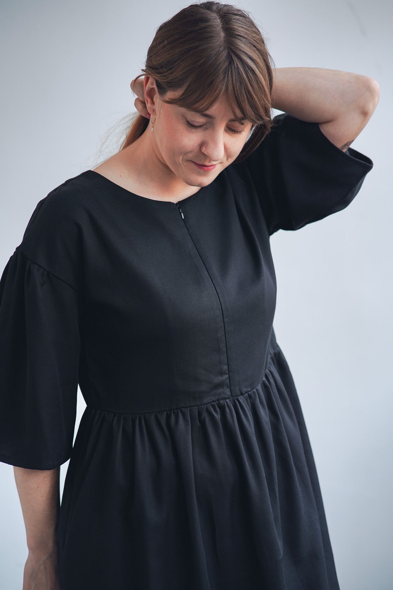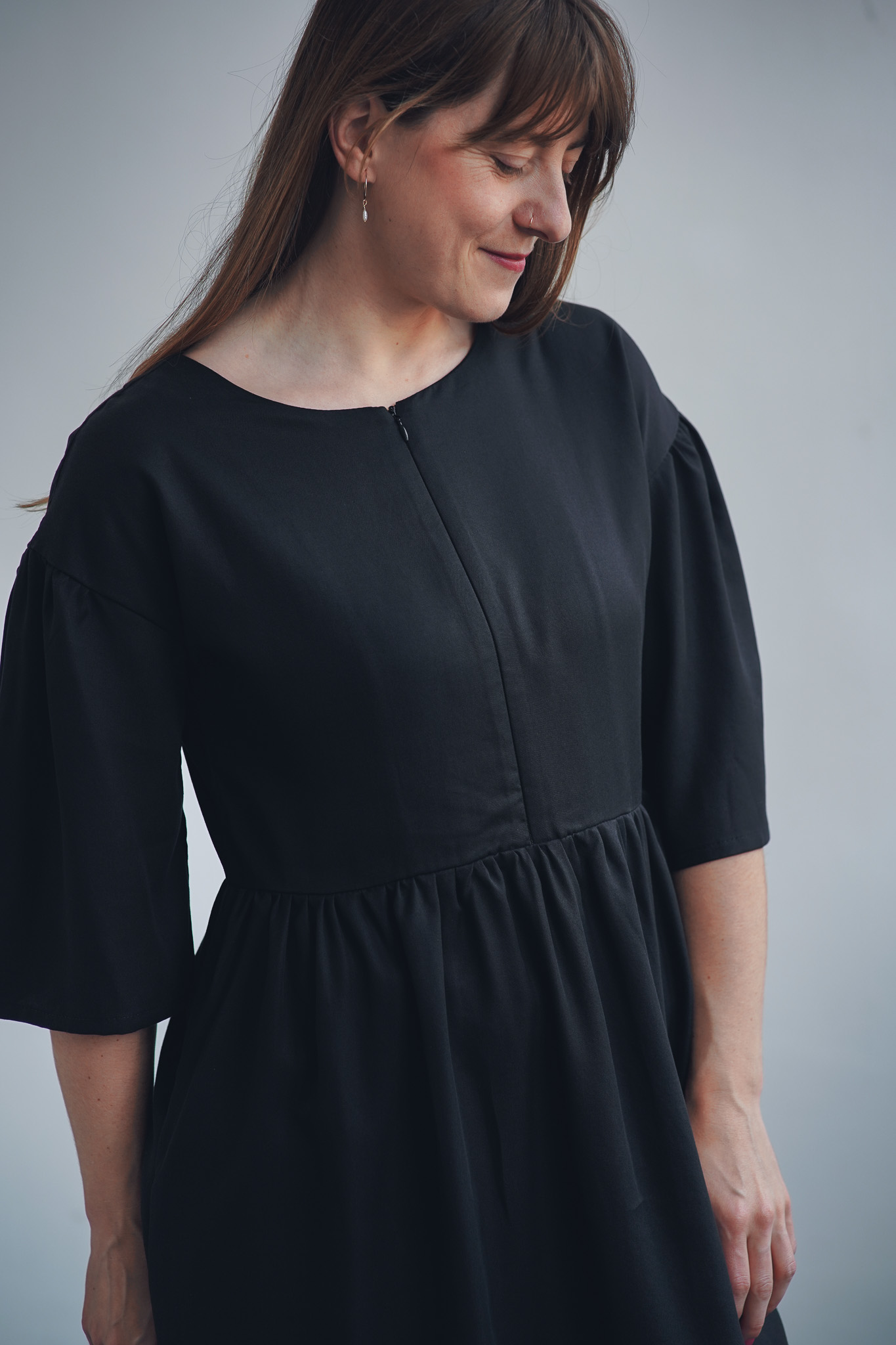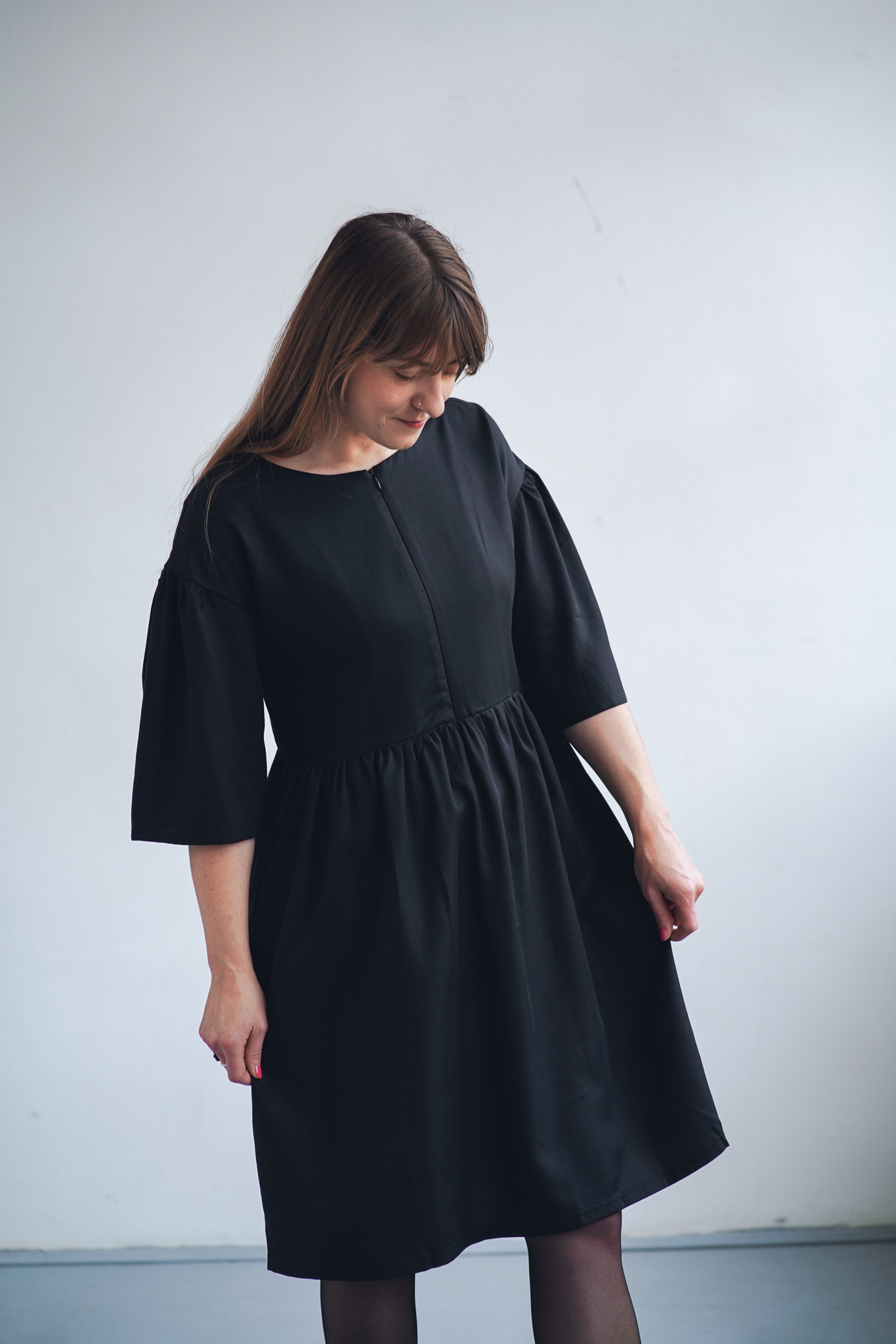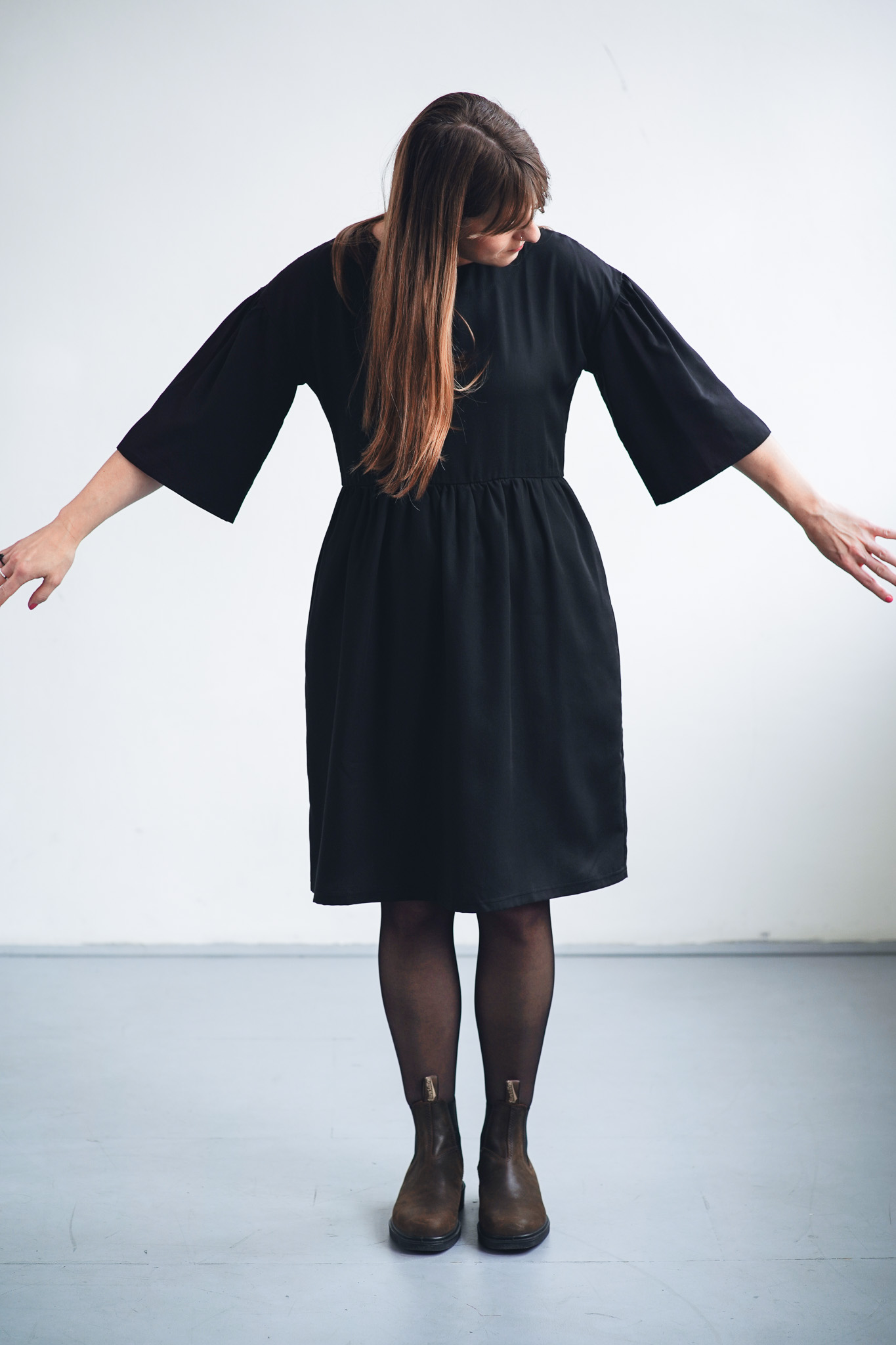 ׊aty Parade s půlenými zvonkovými rukávy vychází ze střihu našich nejprodávanějších šatů Simple. Jsou oboustranné a mají hluboký zip, díky kterému se v nich dá i kojit. Krásně se vám pod ně vejde kojicí tílko. Jak už je u nás zvykem, šaty sedí spoustě typům postav a sluší jim to i s koženými pásky. Šaty můžete nosit celoročně z obou stran, podle vaší nálady zipem dopředu nebo dozadu. Pokud váháte s velikostí, volte vaši standardní konfekční velikost nebo velikost vašich šatů Simple.