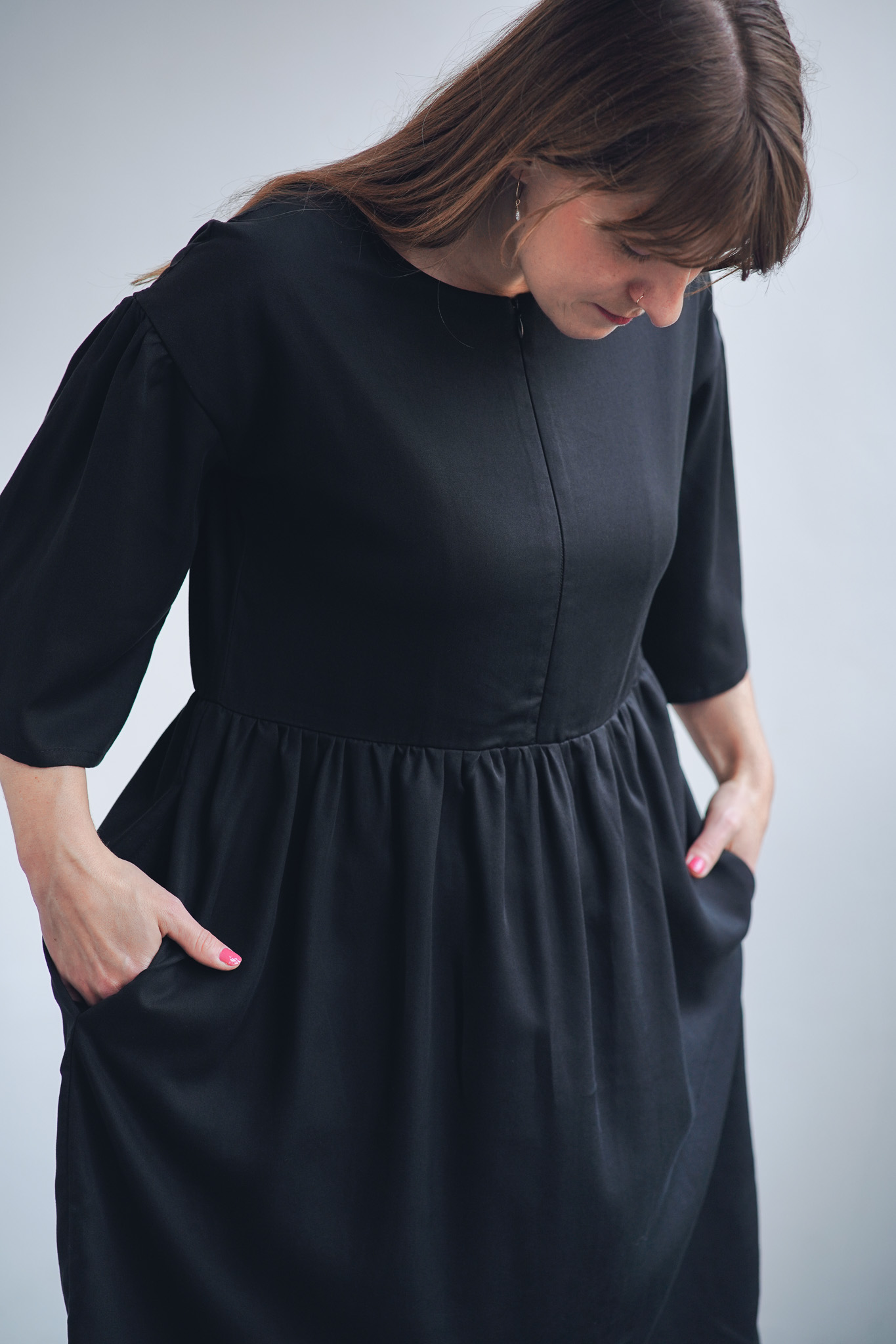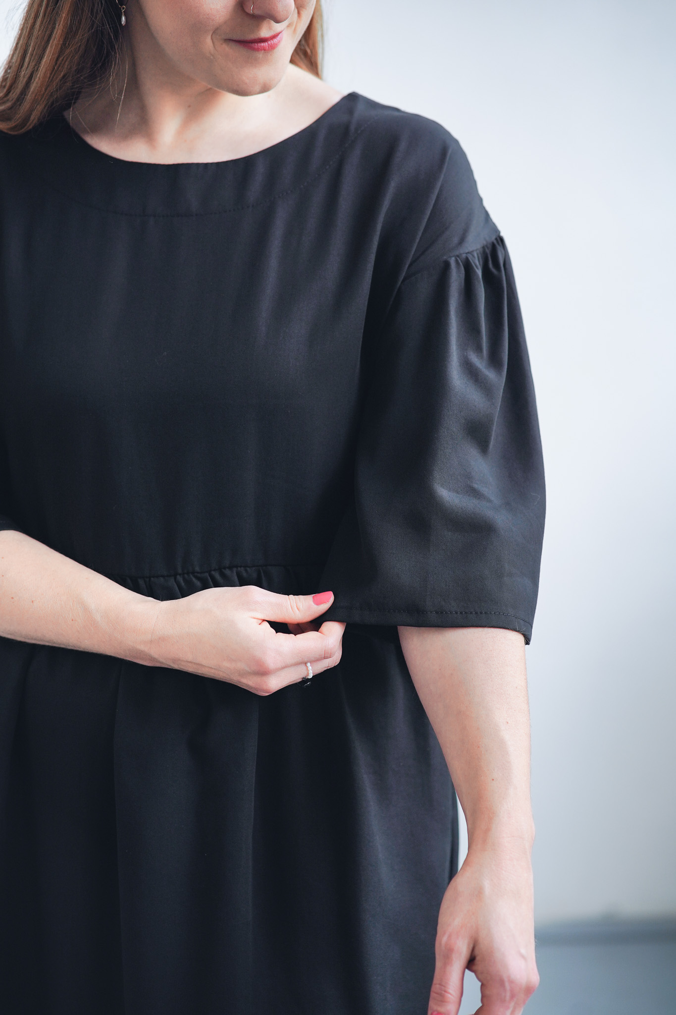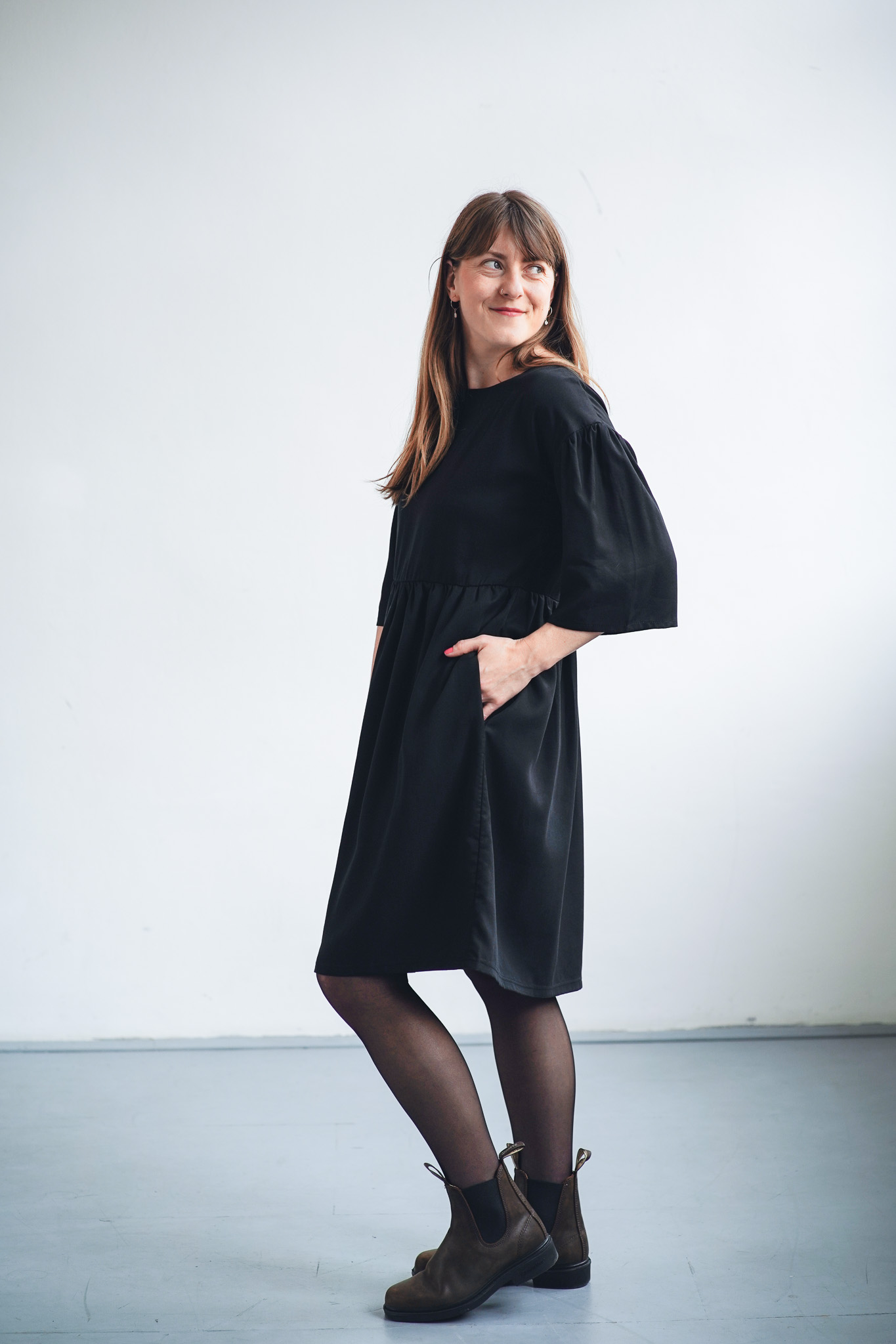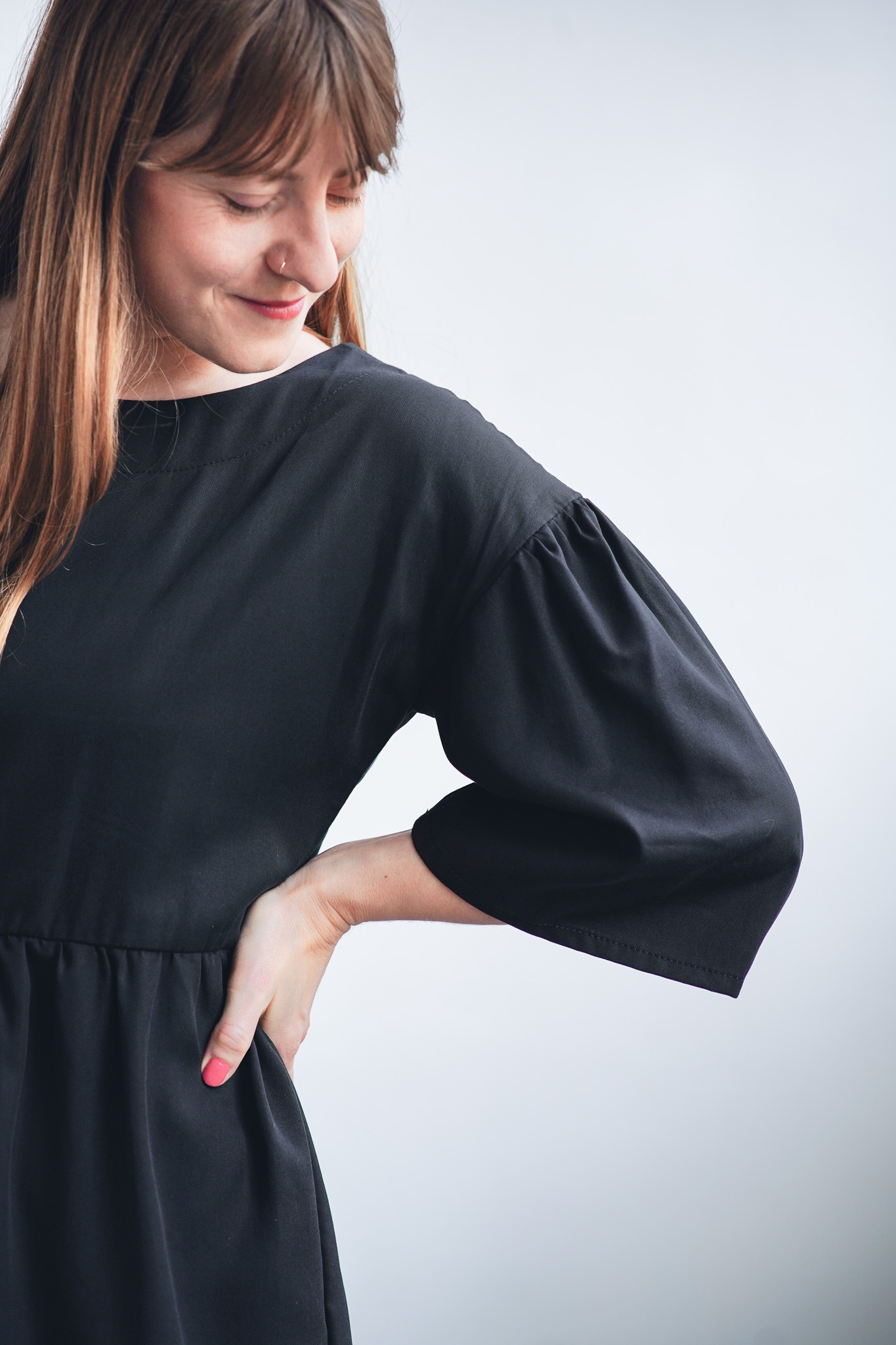 ׊aty Parade s půlenými zvonkovými rukávy vychází ze střihu našich nejprodávanějších šatů Simple. Jsou oboustranné a mají hluboký zip, díky kterému se v nich dá i kojit. Krásně se vám pod ně vejde kojicí tílko. Jak už je u nás zvykem, šaty sedí spoustě typům postav a sluší jim to i s koženými pásky. Šaty můžete nosit celoročně z obou stran, podle vaší nálady zipem dopředu nebo dozadu. Pokud váháte s velikostí, volte vaši standardní konfekční velikost nebo velikost vašich šatů Simple.