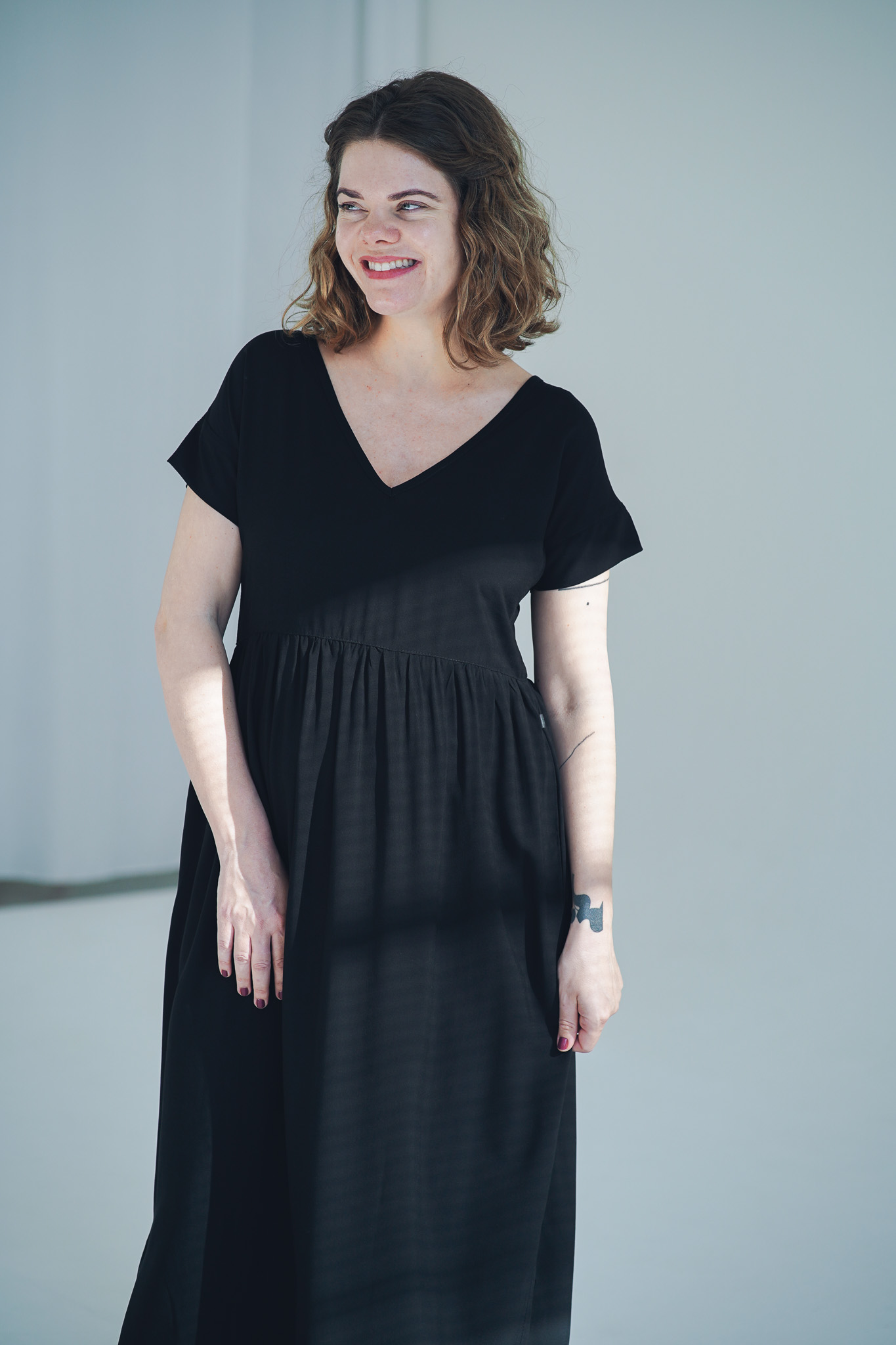 Šaty Simple Long jsou prodlouženou variantou našich klasických Simple a mají přidané rozparky. Simple jsou naše nejprodávanější šaty, které sedí spoustě typům postav, sluší jim to i s koženými pásky. Šaty můžete nosit z obou stran, podle vaší nálady s výstřihem dopředu nebo dozadu. Jsou velmi slušivé, pohodlné a nechybí jim ani praktické kapsy. Pokud váháte s velikostí, volte vaši standardní konfekční velikost.