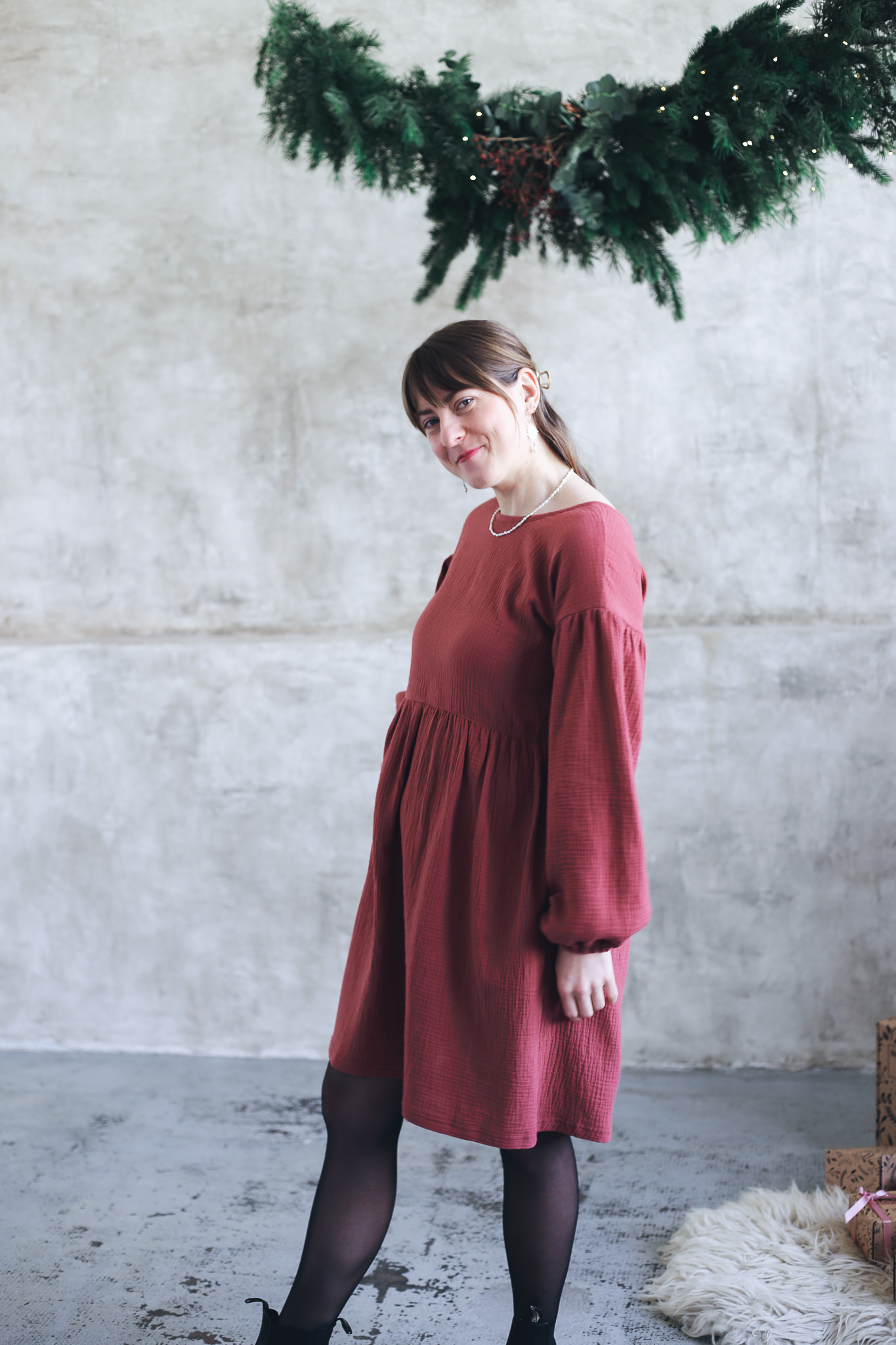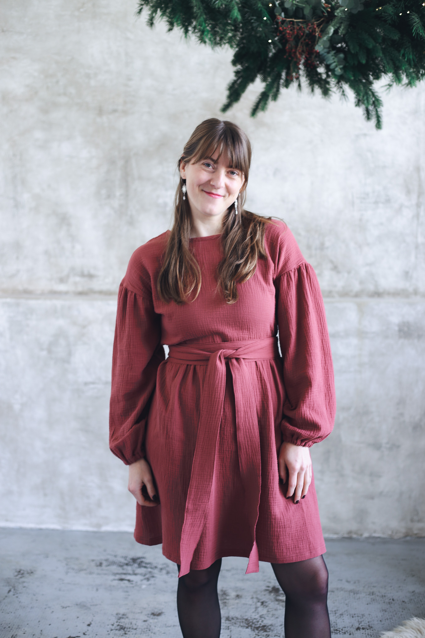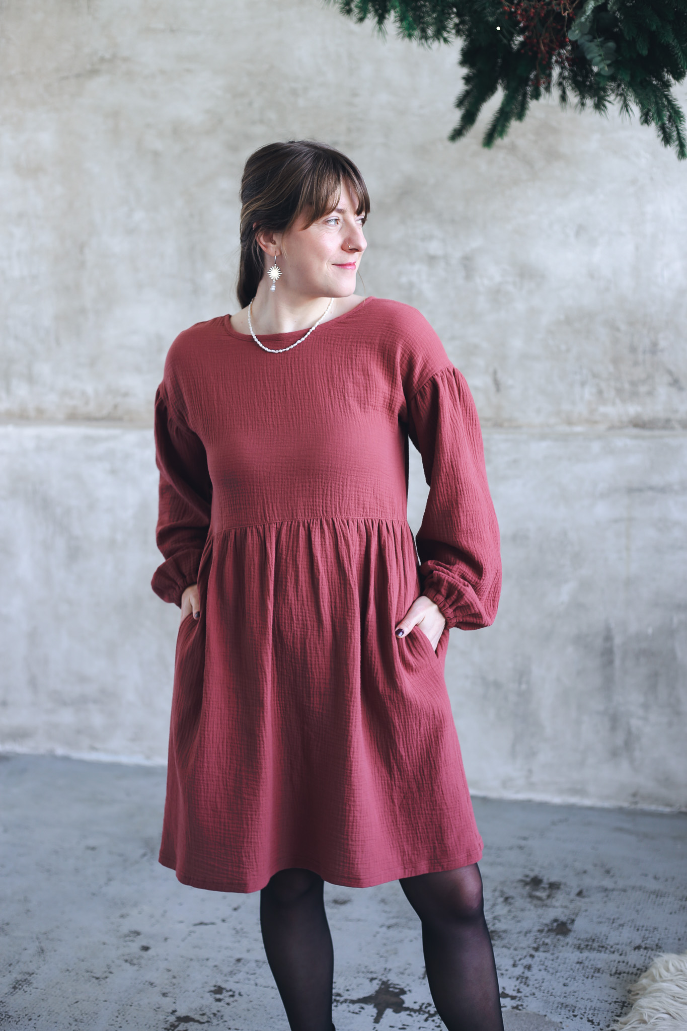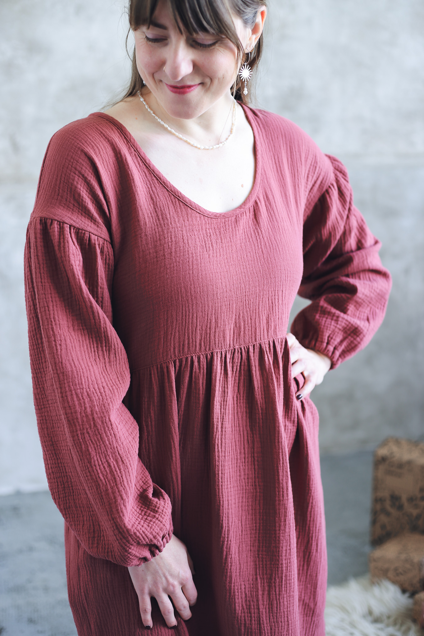 Šaty střihu Simple s kulatým výstřihem, dlouhými balonovými rukávy, kde neškrtí žádná gumička a nově i s páskem, jsou ušité z velmi příjemného mušelínu. Simple jsou naše nejprodávanější šaty, které sedí spoustě typům postav a sluší jim to i s koženými pásky. Šaty můžete nosit celoročně z obou stran, podle vaší nálady s výstřihem dopředu nebo dozadu. Jsou velmi slušivé, pohodlné a nechybí jim ani praktické kapsy. Pokud váháte s velikostí, volte vaši standardní konfekční velikost.