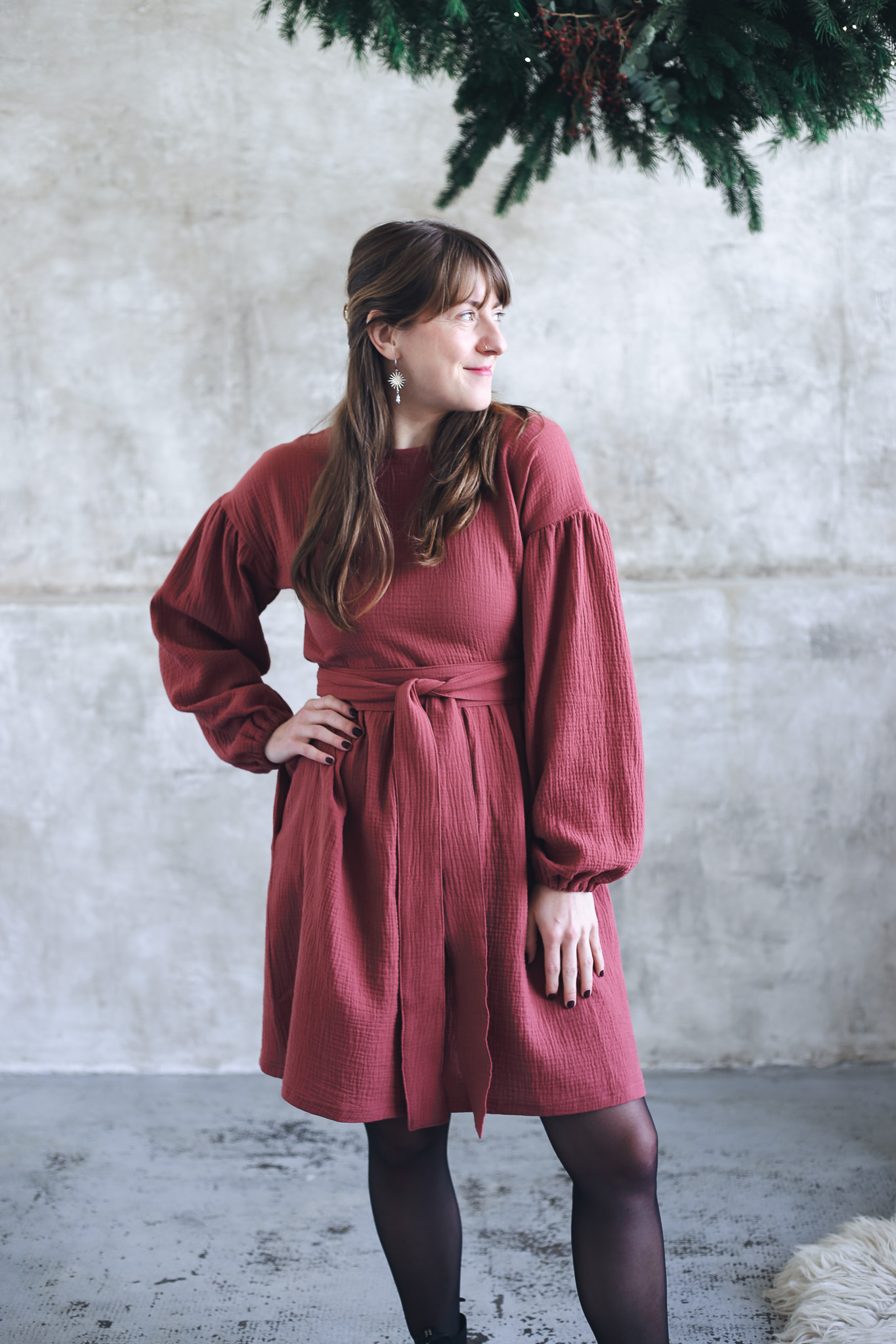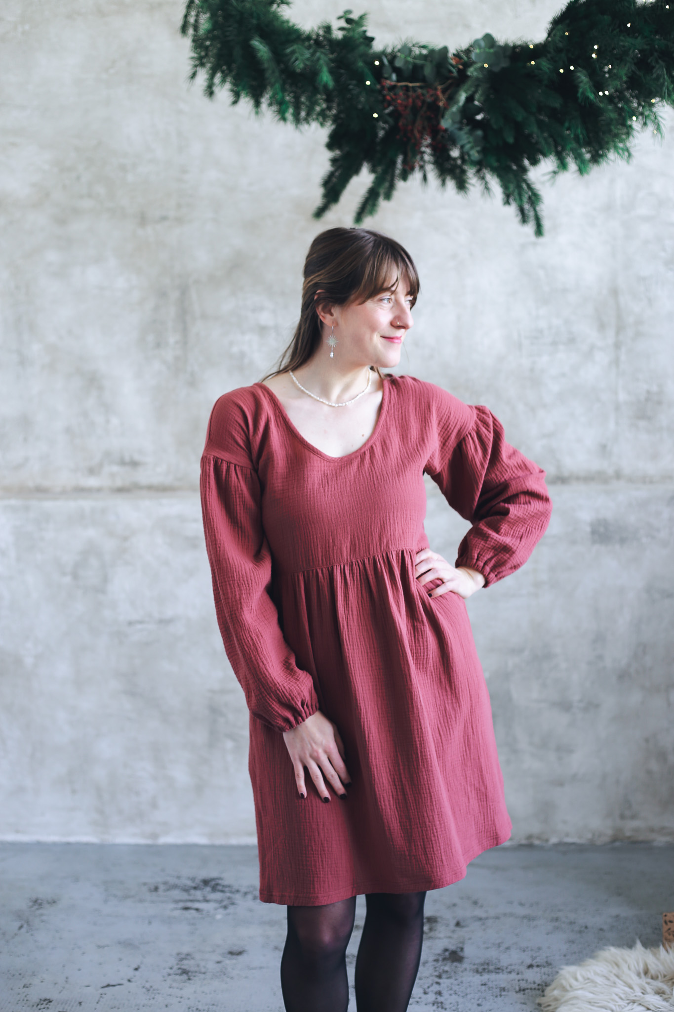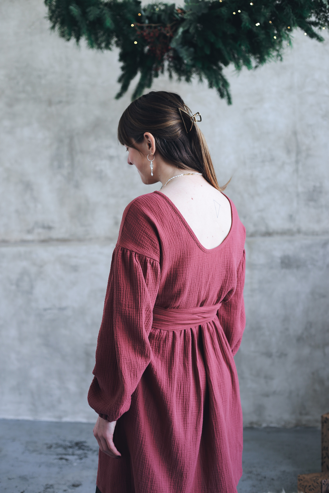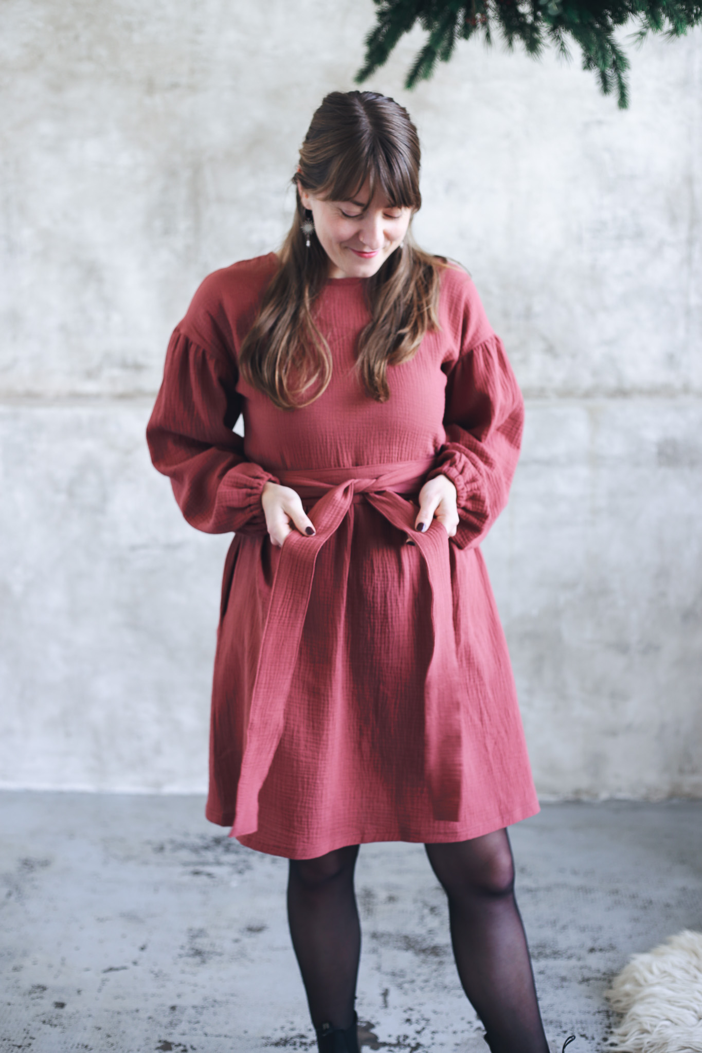 Šaty střihu Simple s kulatým výstřihem, dlouhými balonovými rukávy, kde neškrtí žádná gumička a nově i s páskem, jsou ušité z velmi příjemného mušelínu. Simple jsou naše nejprodávanější šaty, které sedí spoustě typům postav a sluší jim to i s koženými pásky. Šaty můžete nosit celoročně z obou stran, podle vaší nálady s výstřihem dopředu nebo dozadu. Jsou velmi slušivé, pohodlné a nechybí jim ani praktické kapsy. Pokud váháte s velikostí, volte vaši standardní konfekční velikost.