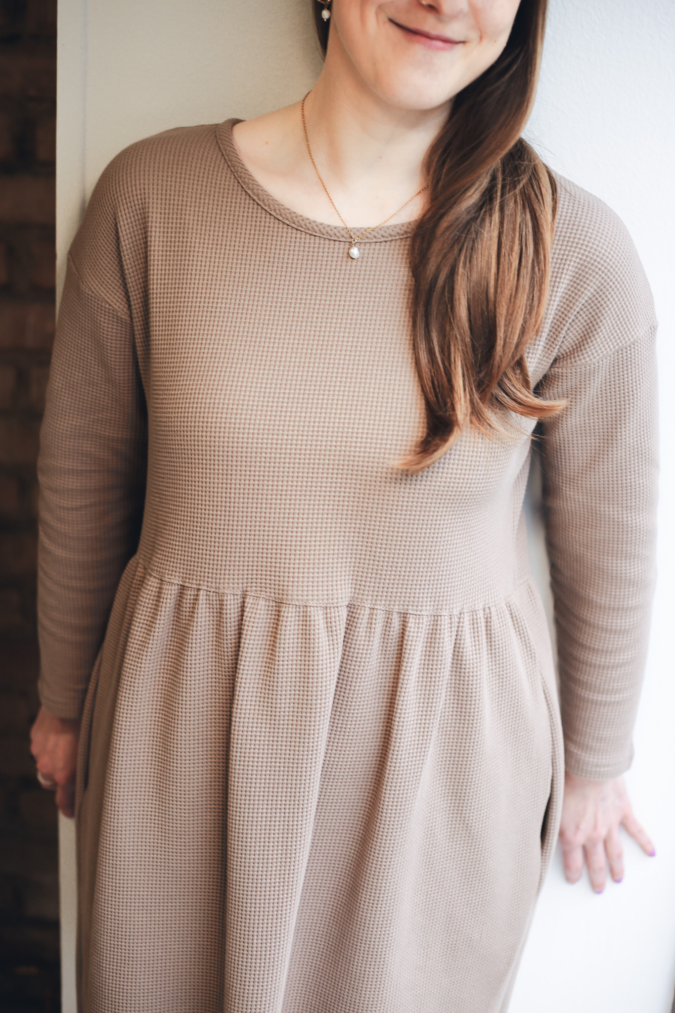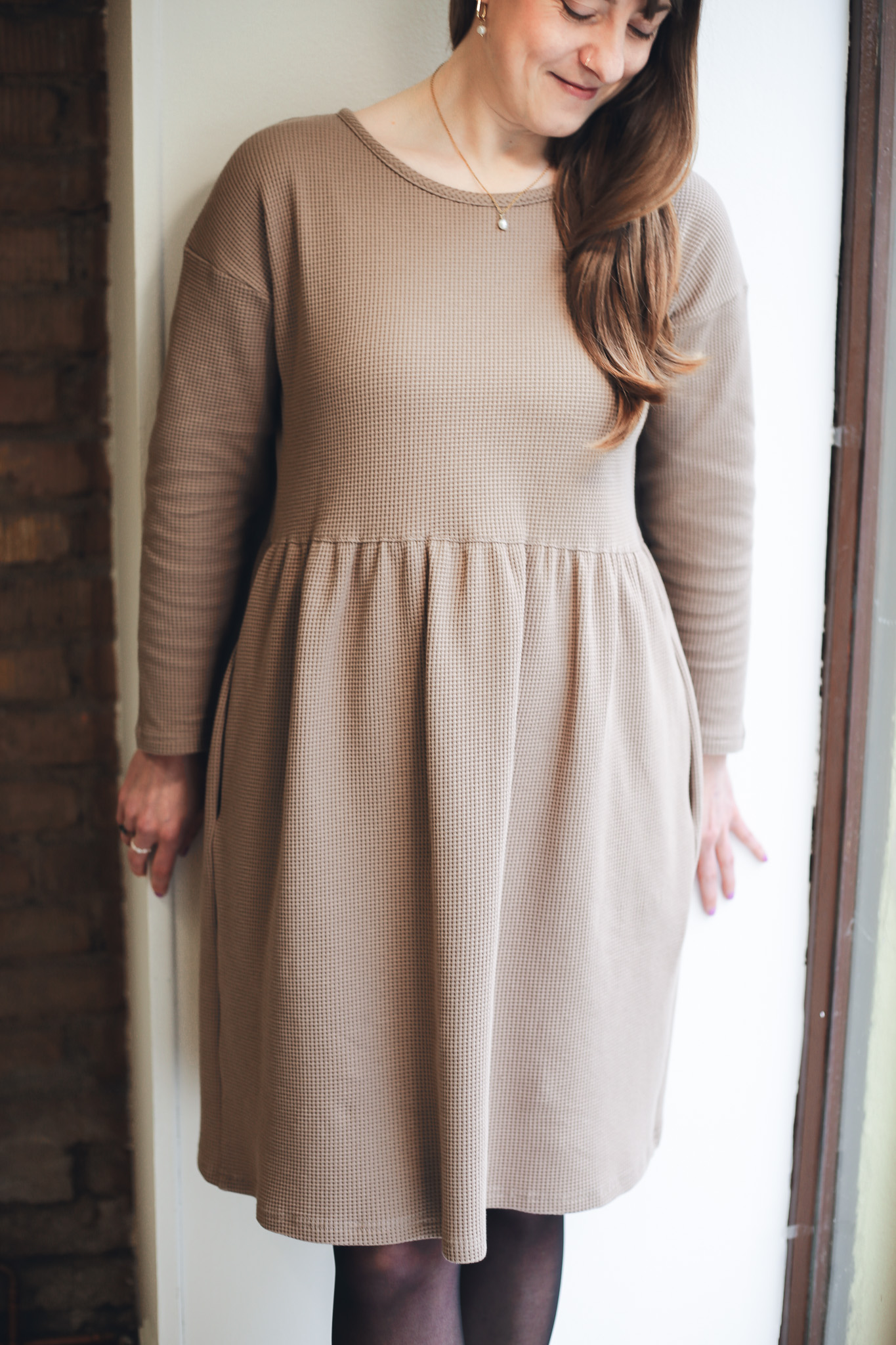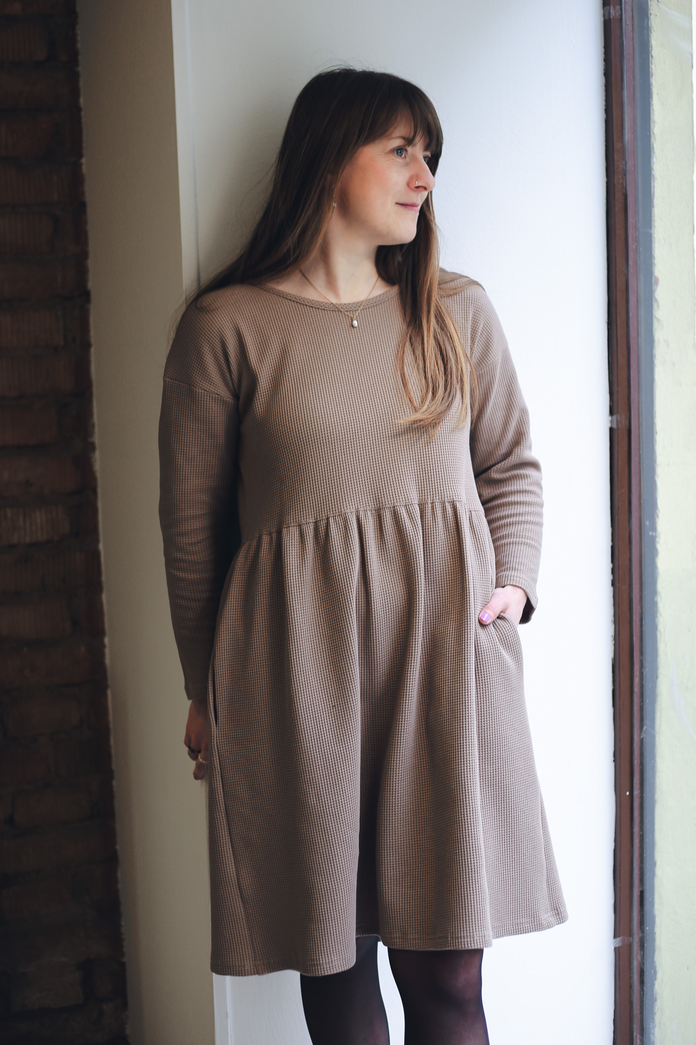 ׊aty Wafle jsou ušité z velmi příjemné a hřejivé bavlny – vafloviny a jsou ideální pro chladnější dny. Jsou inspirované našimi původními oboustrannými šaty Wafle, ale tyto jsou jednostranné, mají jemný kulatý výstřih a dlouhý rukáv. Nechybí jim samozřejmě praktické kapsy a sluší jim to i se všemi našimi koženými pásky. Jsou velmi slušivé, pohodlné, sedí spoustě typům postav. Šaty vychází ze střihu našich nejprodávanějších šatů Simple, ale kvůli elastanu ve vaflovině doporučujeme objednat o číslo menší velikost, než nosíte u právě našich šatů Simple z mušelínu.