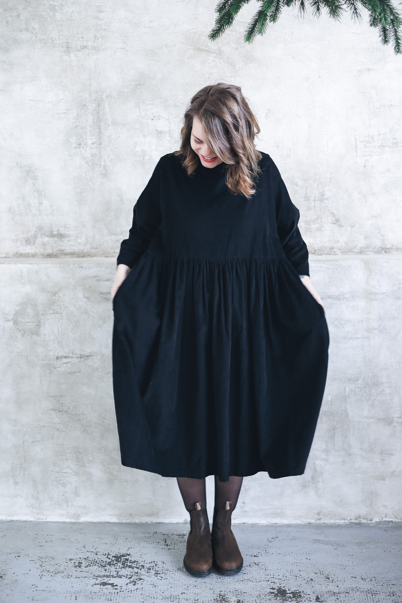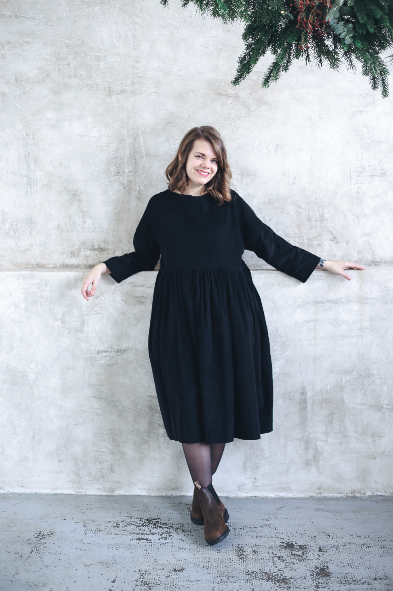 ׊aty Wide jsou volné šaty pouze v jedné velikosti, tyto jsou ušité z bavlněného manšestru, který je ideální na chladnější dny. Mají opravdu bohatou sukni, 7/8 spadený rukáv, který lze snadno ohrnout a na zádech malé zapínání na knoflíček. Šaty lze skvěle vrstvit třeba s tričkem Roll, s merino košilkou či s legíny.