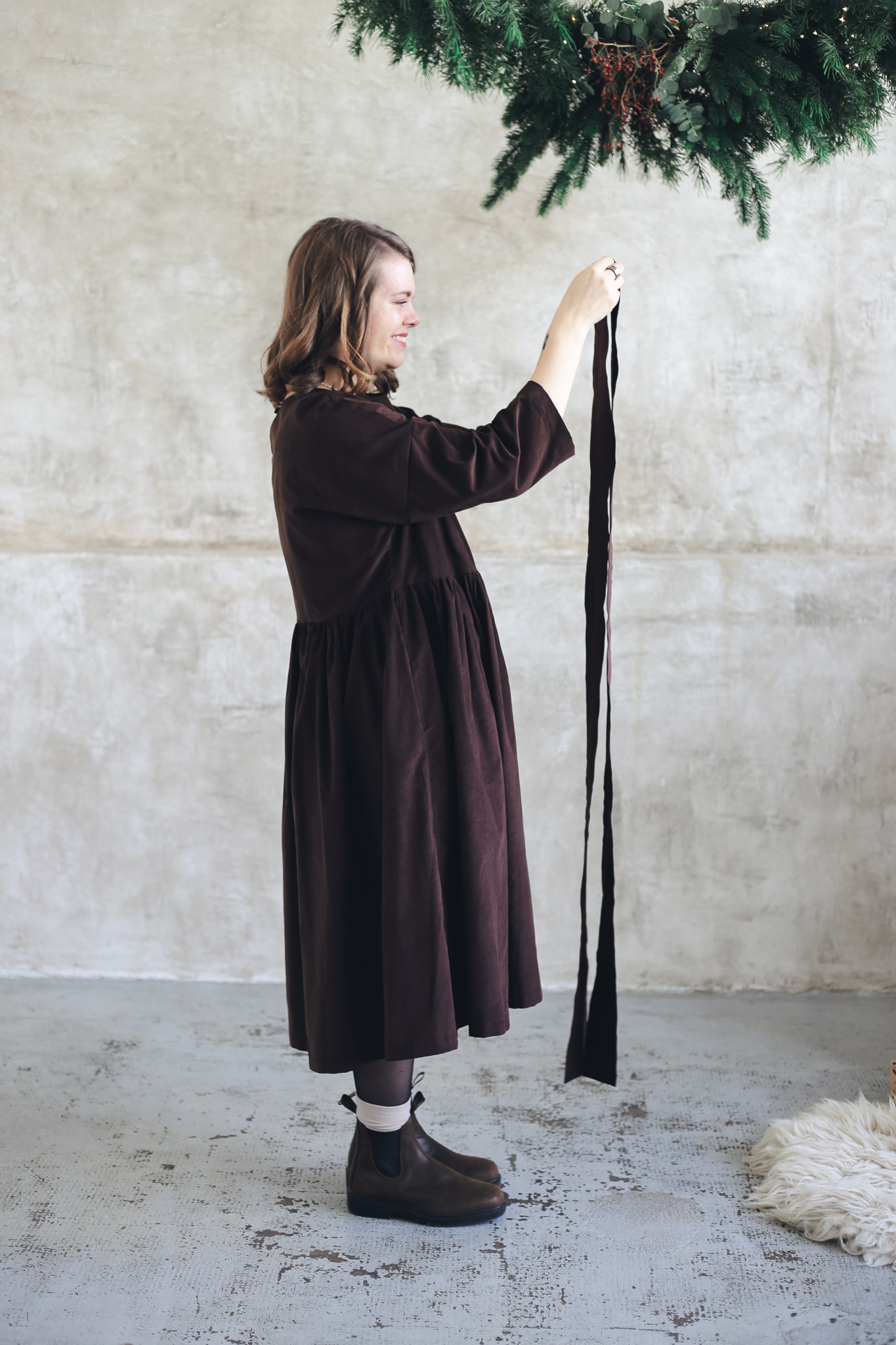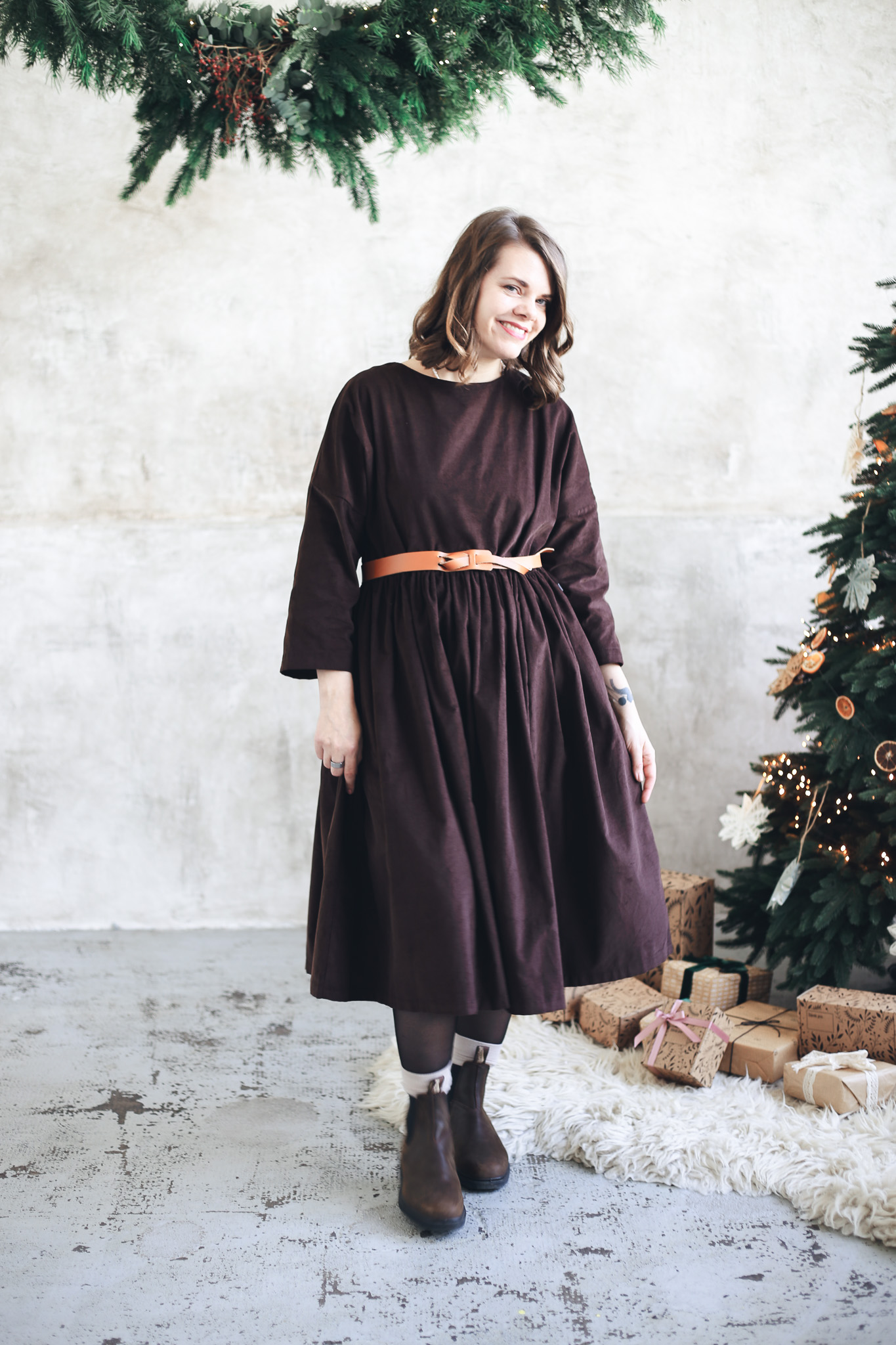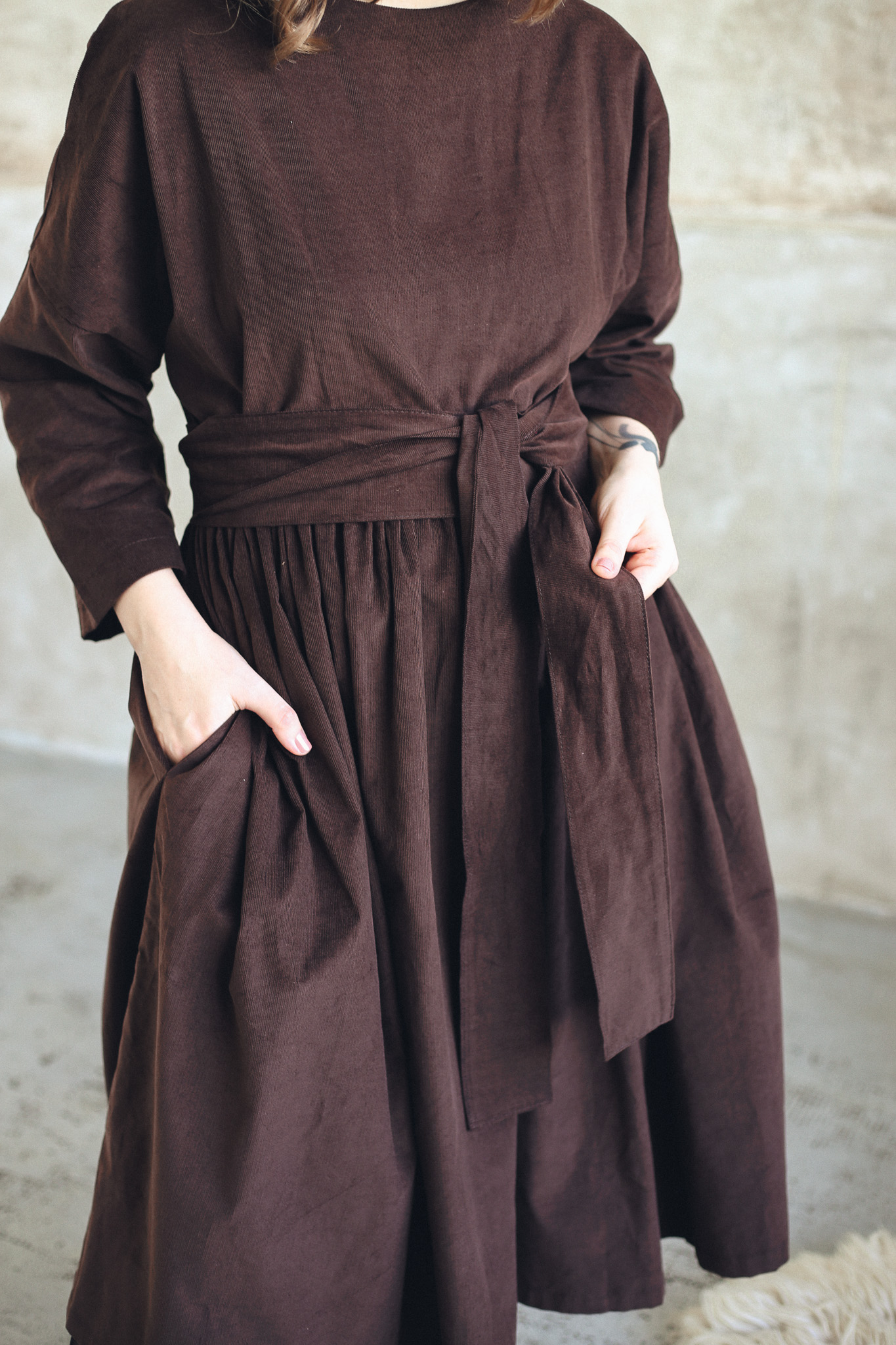׊aty Wide jsou volné šaty pouze v jedné velikosti, tyto jsou ušité z bavlněného manšestru, který je ideální na chladnější dny. Mají opravdu bohatou sukni, 7/8 spadený rukáv, který lze snadno ohrnout a na zádech malé zapínání na knoflíček. Šaty lze skvěle vrstvit třeba s tričkem Roll, s merino košilkou či s legíny.