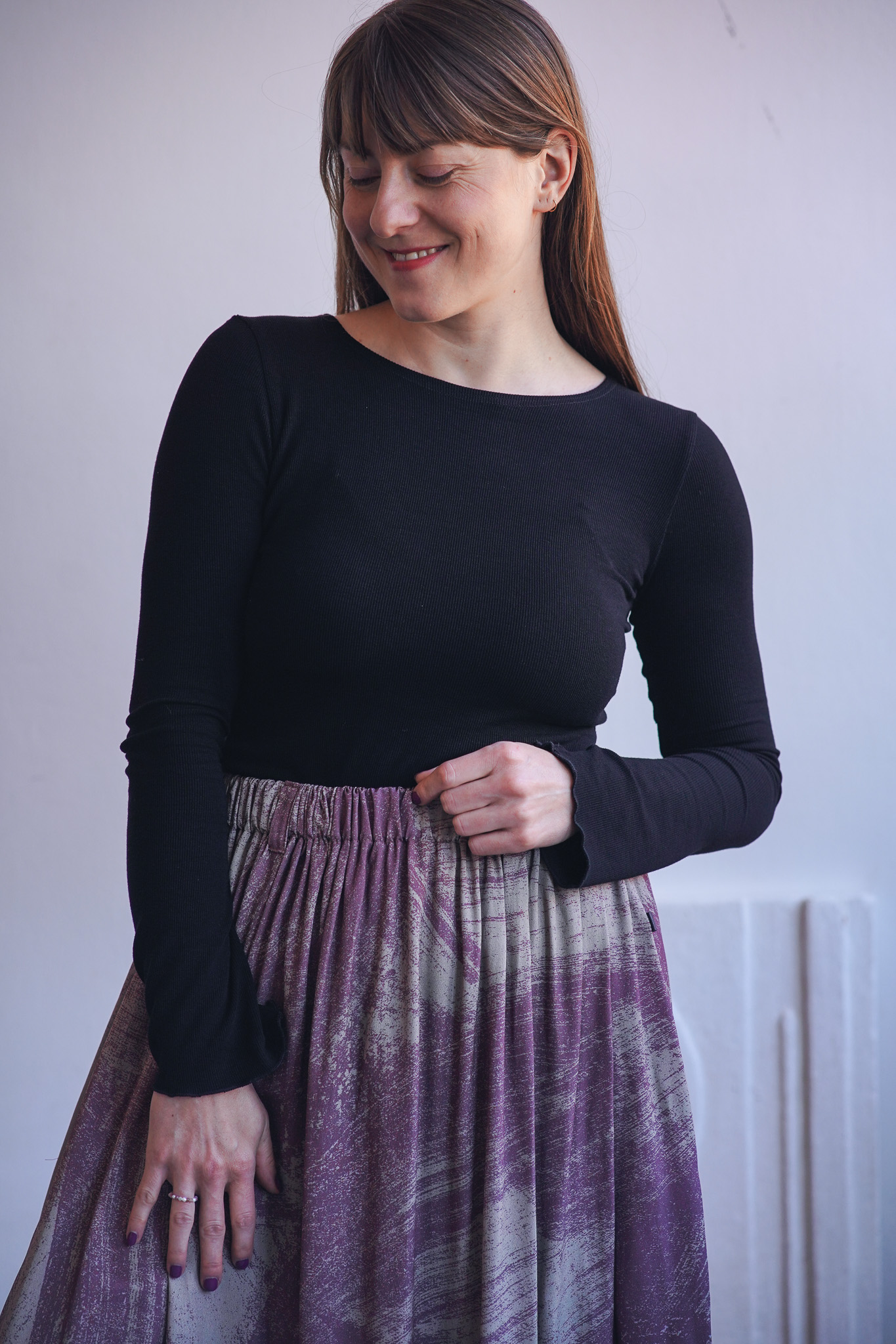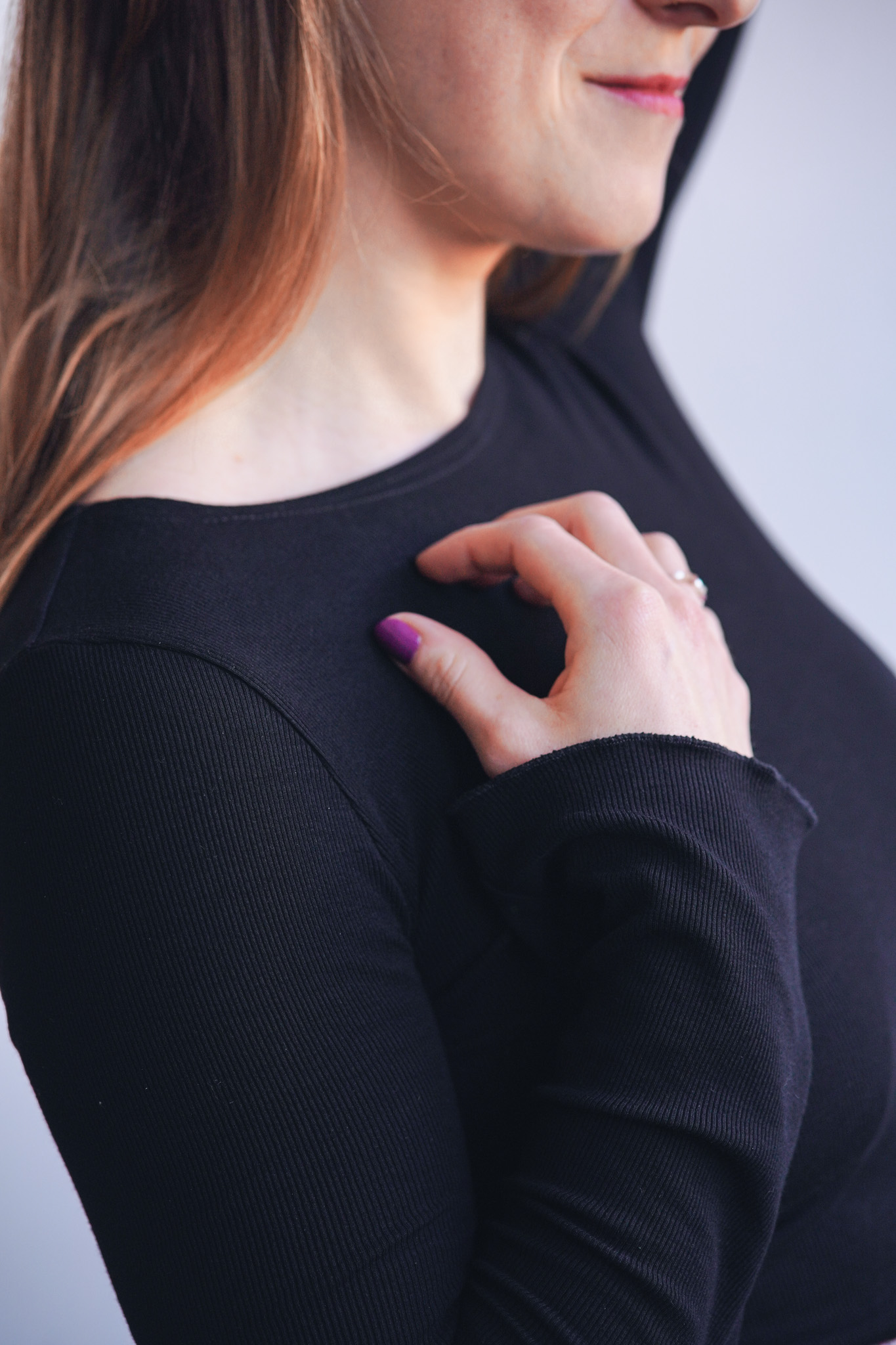 Elegantní tričko s dlouhými zvonkovými rukávy je ušité z tenkého žebrovitého viskózového úpletu, vypadá skvěle zastrčené v kalhotách či v sukni. Tohle tričko v černé barvě je univerzální kousek, který skvěle doplní Váš outfit, podtrhne ženské křivky a i když je materiál tenčí, viskóza vás v zimě krásně zahřeje.