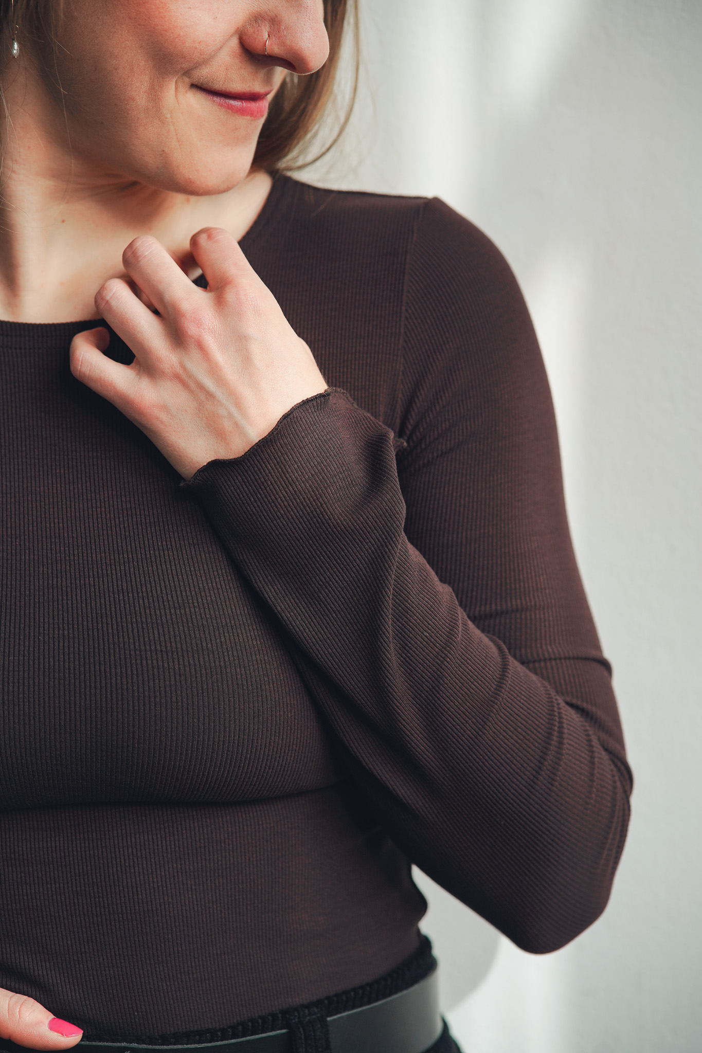 ×Elegantní tričko s dlouhými zvonkovými rukávy je ušité z tenkého žebrovitého viskózového úpletu, vypadá skvěle zastrčené v kalhotách či v sukni. Tohle tričko v černé barvě je univerzální kousek, který skvěle doplní Váš outfit, podtrhne ženské křivky a i když je materiál tenčí, viskóza vás v zimě krásně zahřeje.