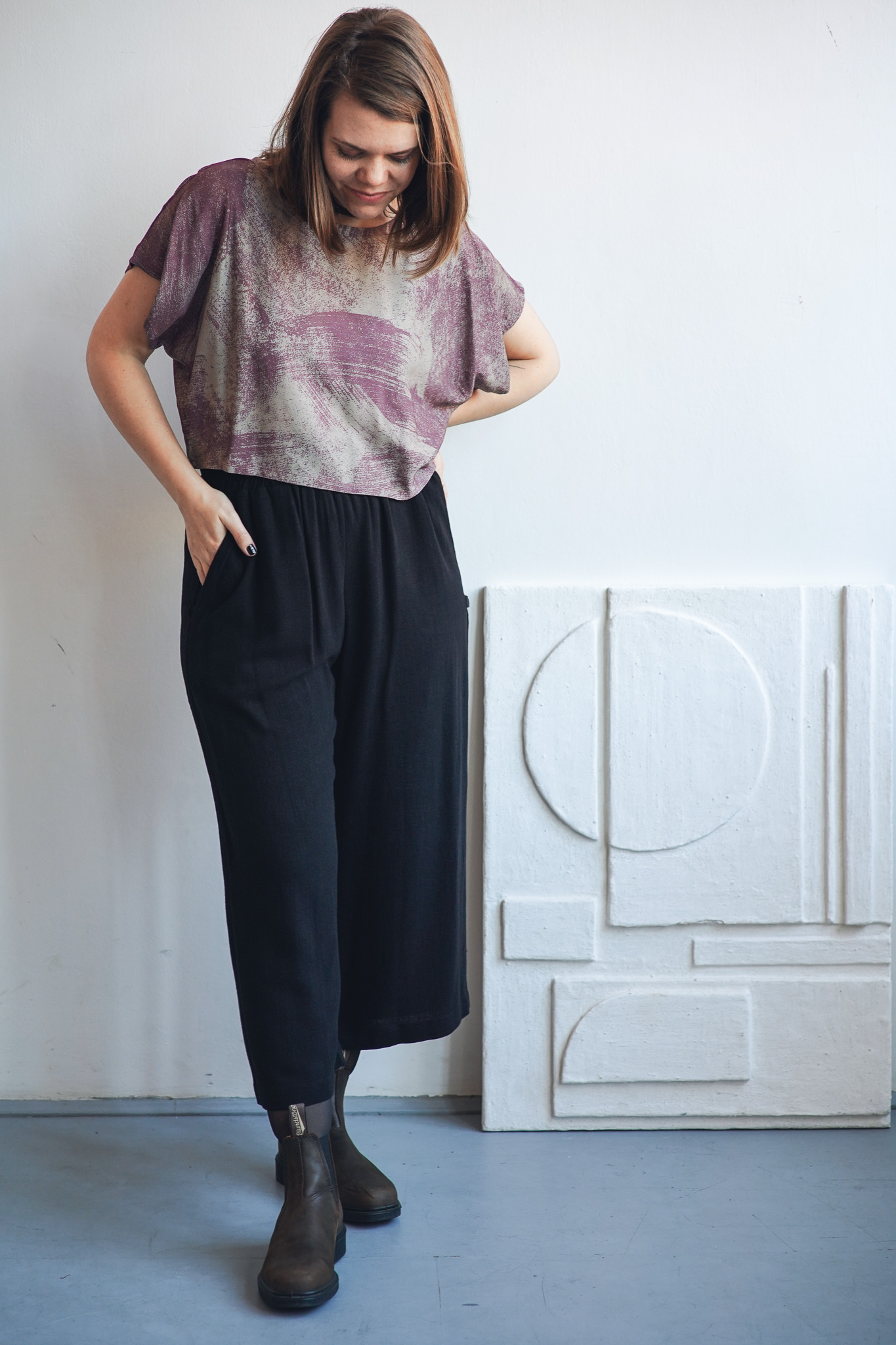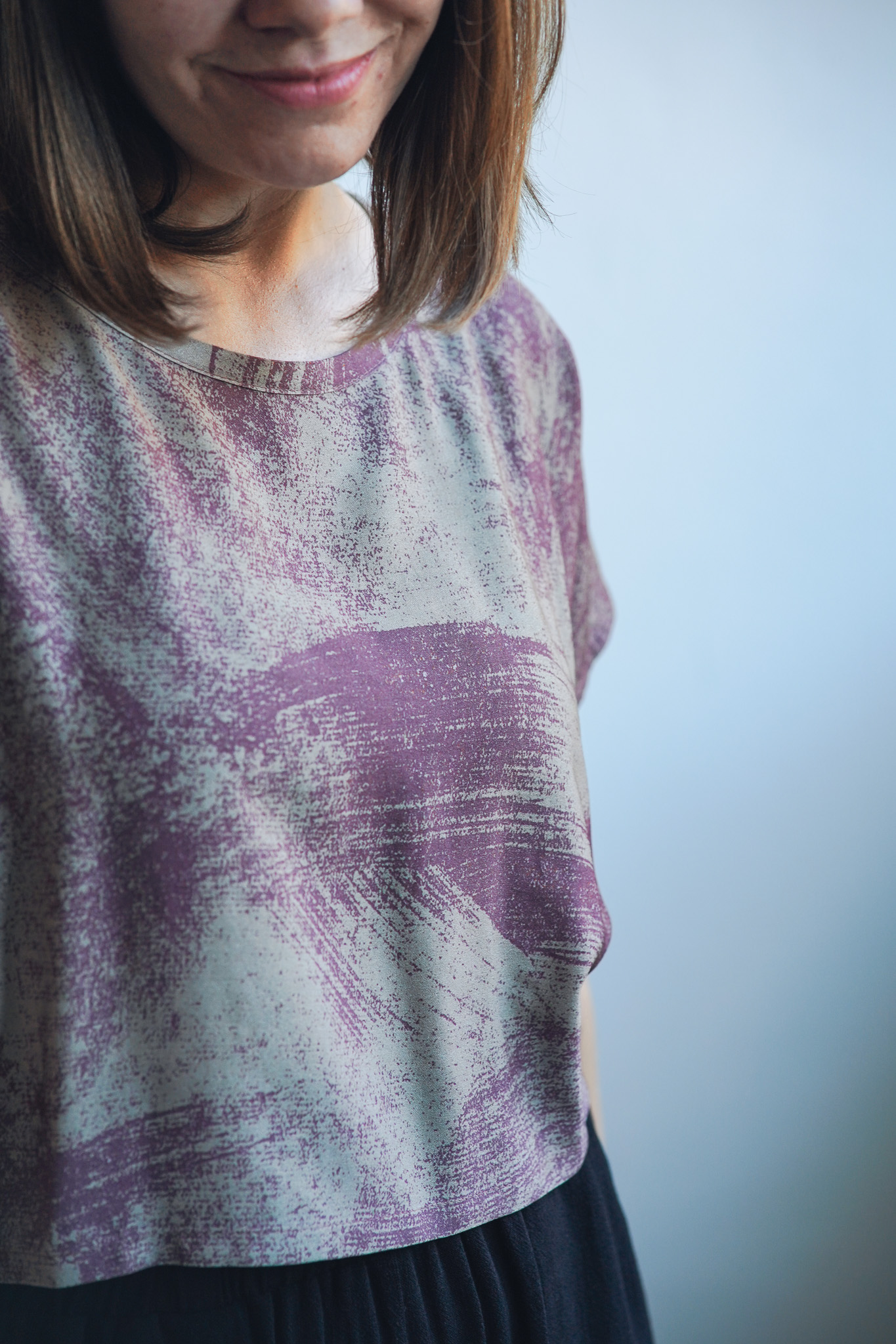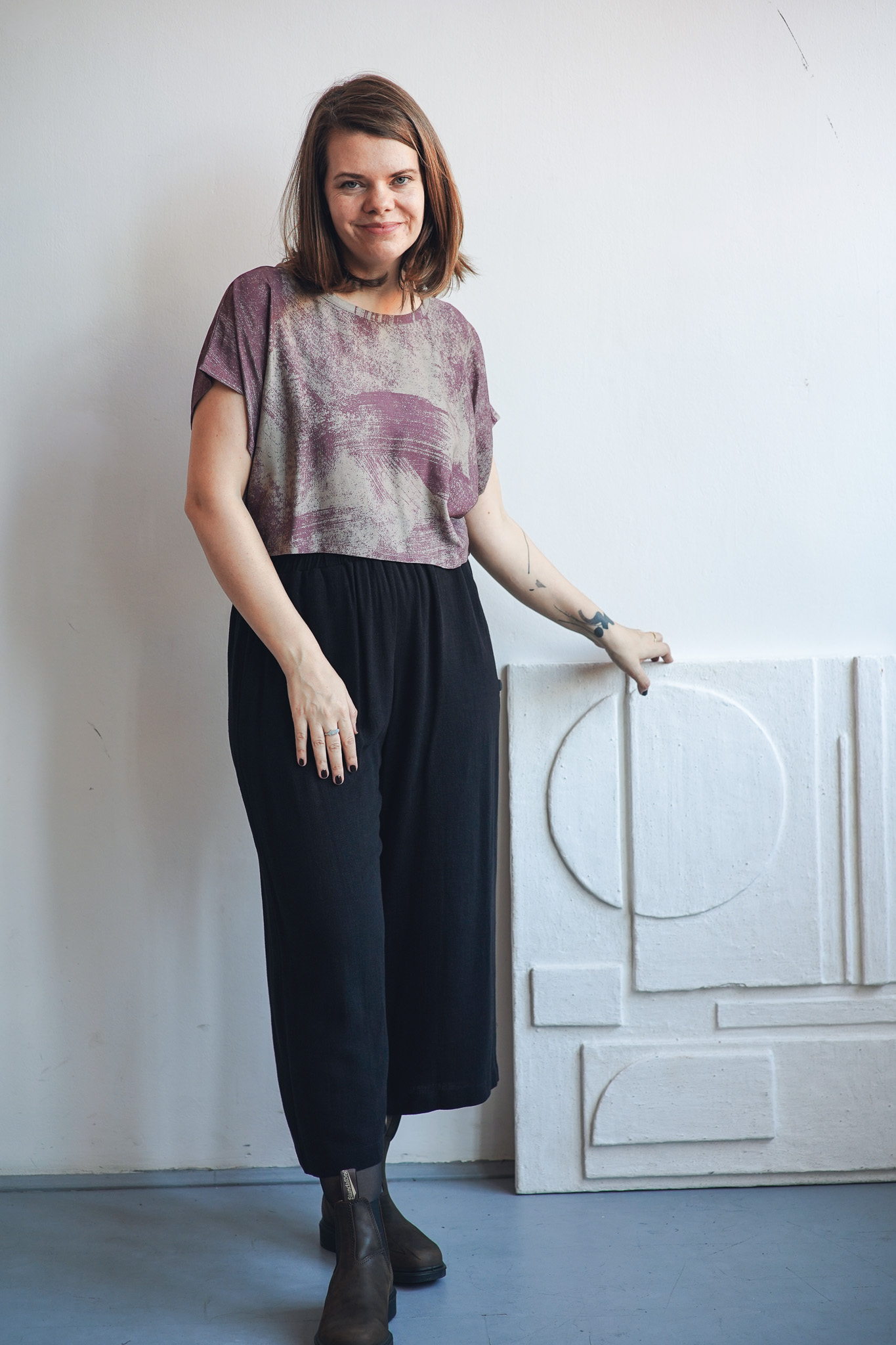 ×Minimalistické zero waste tričko kratšího širokého střihu z jemné viskózy. Má volnější, pohodlný střih, nepruží a je ideální do horkých letních dnů. Tričko je ušité pouze z prostřihů, které nám vznikají při výrobě ostatních kousků a tak je skutečně zero waste a udržitelné. V tomto případě se jedná o látku z autorské kolekce – ručně malovaný vzor, který vytvořila a graficky upravila sama majitelka značky Leona Průchová.