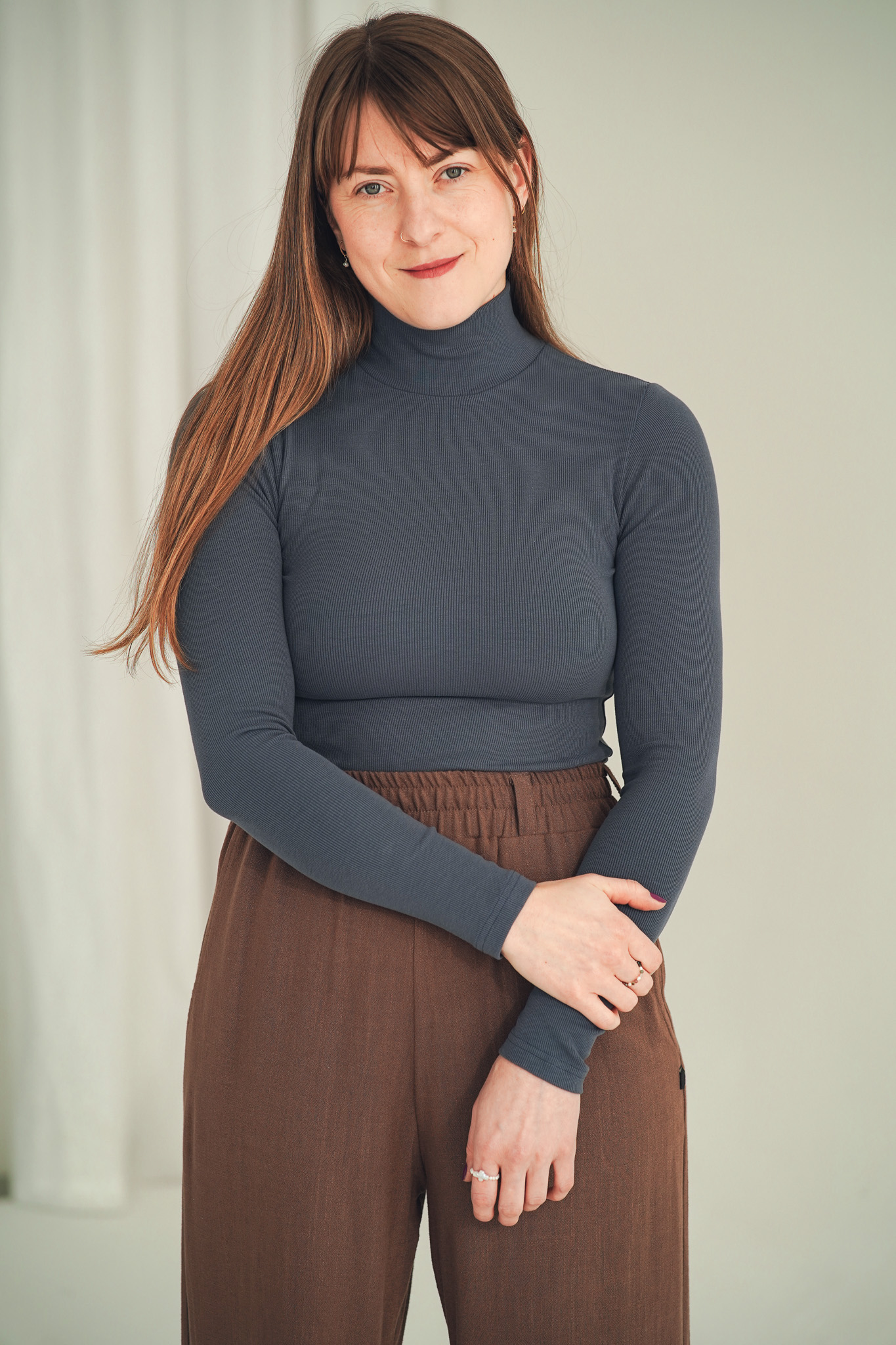 ×Tričko se stojáčkem a dlouhými rukávy je ušité z tenkého žebrovitého viskózového úpletu, vypadá skvěle zastrčené v kalhotách či v sukni. Tohle tričko v ocelově modré barvě je univerzální kousek, který skvěle doplní Váš outfit a vyrýsuje ženské křivky a krásně se s ním dá vrstvit. I když je materiál tenčí, viskóza vás v zimě krásně zahřeje.