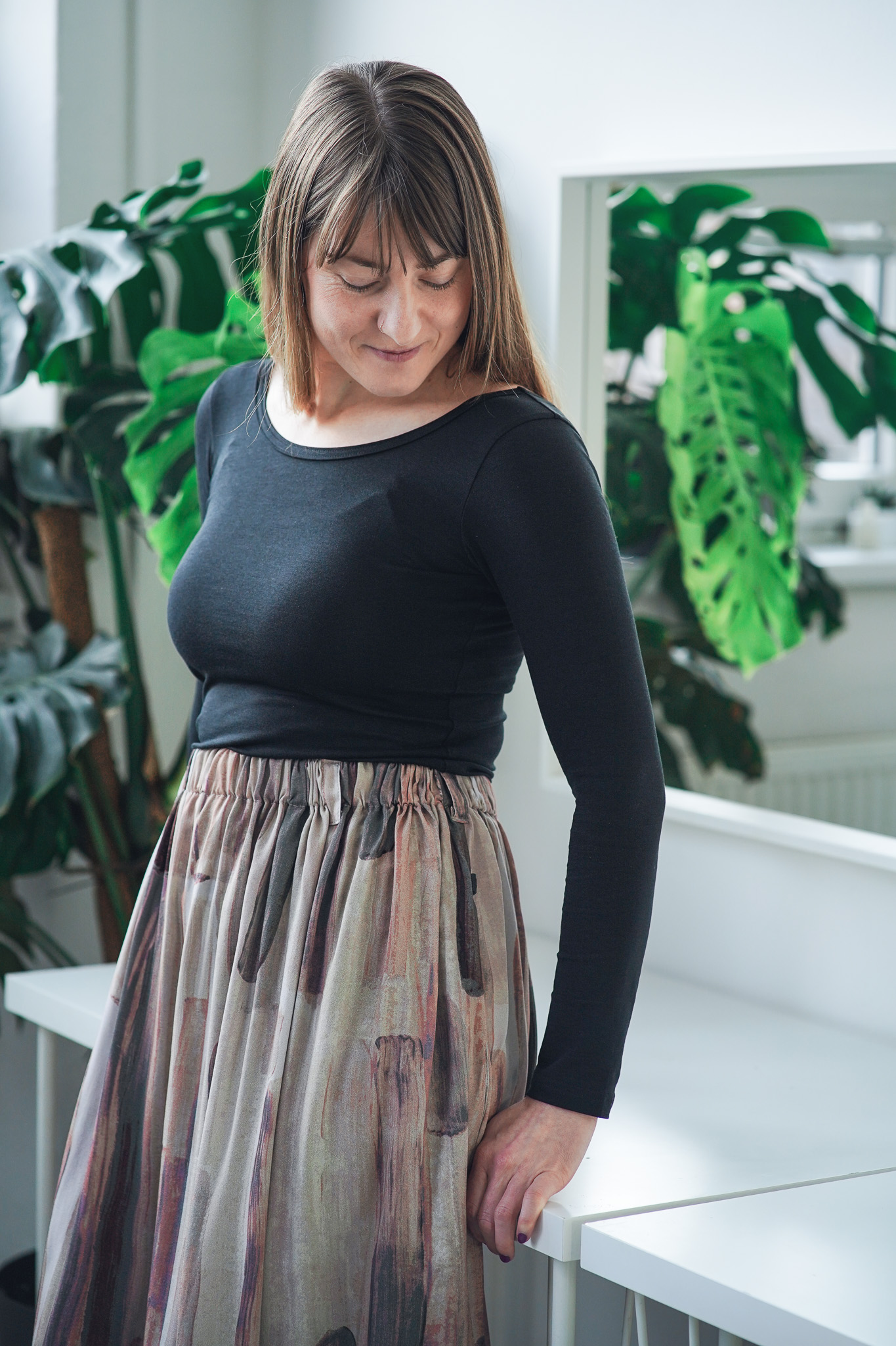 Modelce nejlépe sedí velikost S a měří 168 cm.