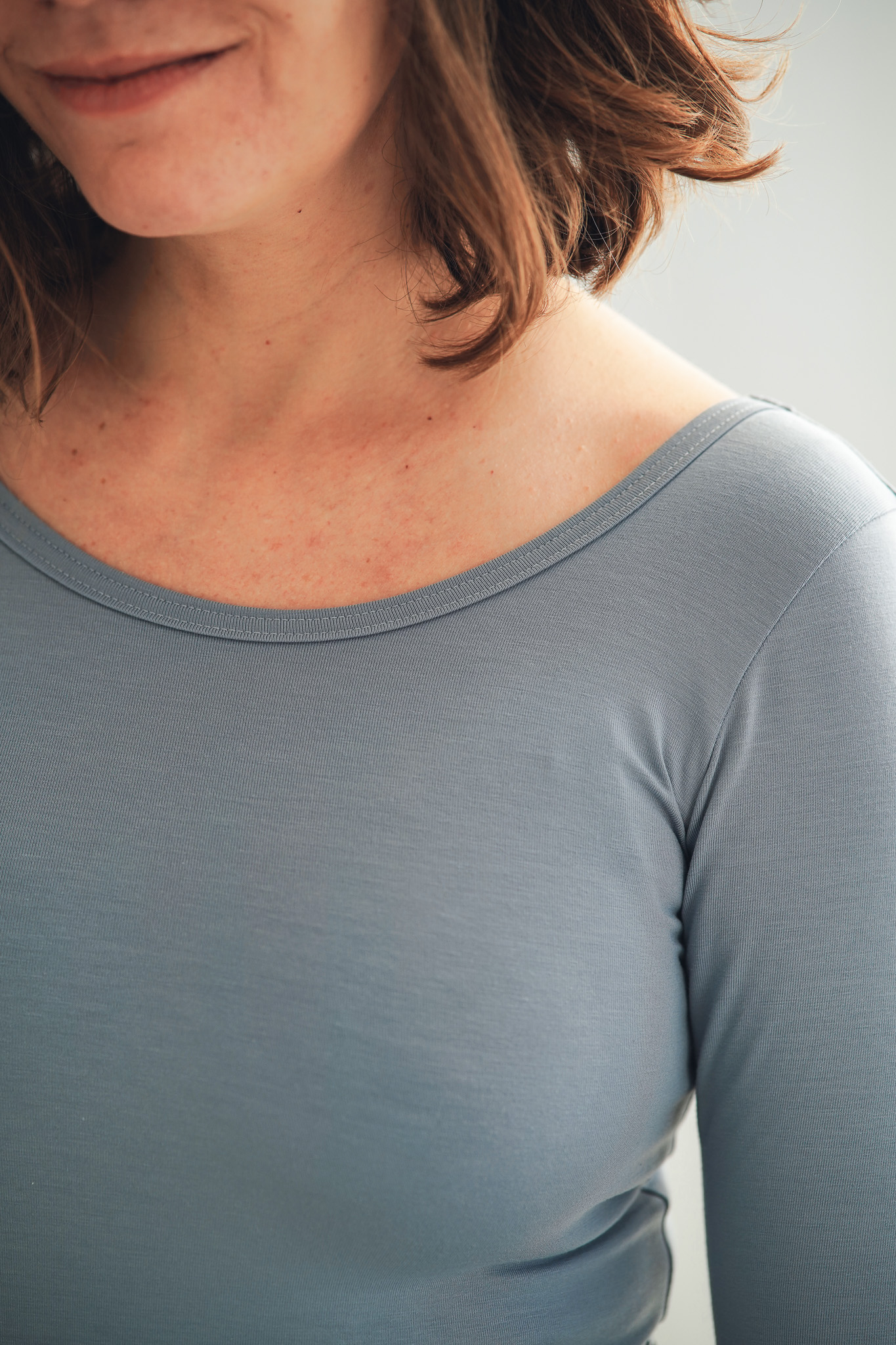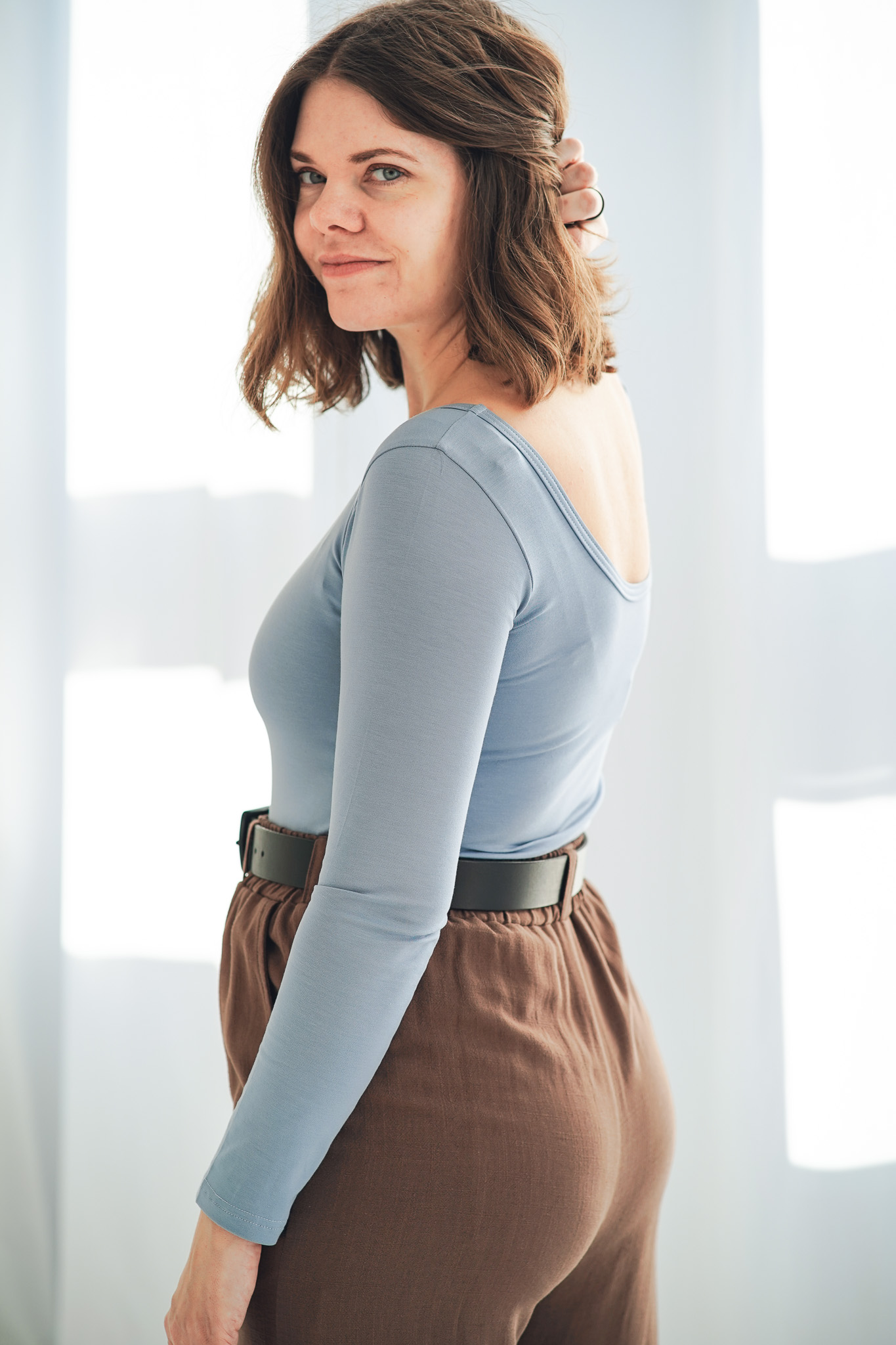×Upnutější tričko ze směsi bambusu a bavlny, které krásně doplní váš základ šatníku o další nepostradatelný a zároveň sexy kousek. Toto triko ukáže ženské křivky, má větší výstřih na zádech a dlouhé rukávy, navíc se dá nosit oboustranně. Je jen na vás, kterou stranu trička zvolíte. Látka má certifikát zdravotní nezávadnosti OEKO-TEX CLASS 1, je ideální i pro citlivou pleť a pro alergiky.