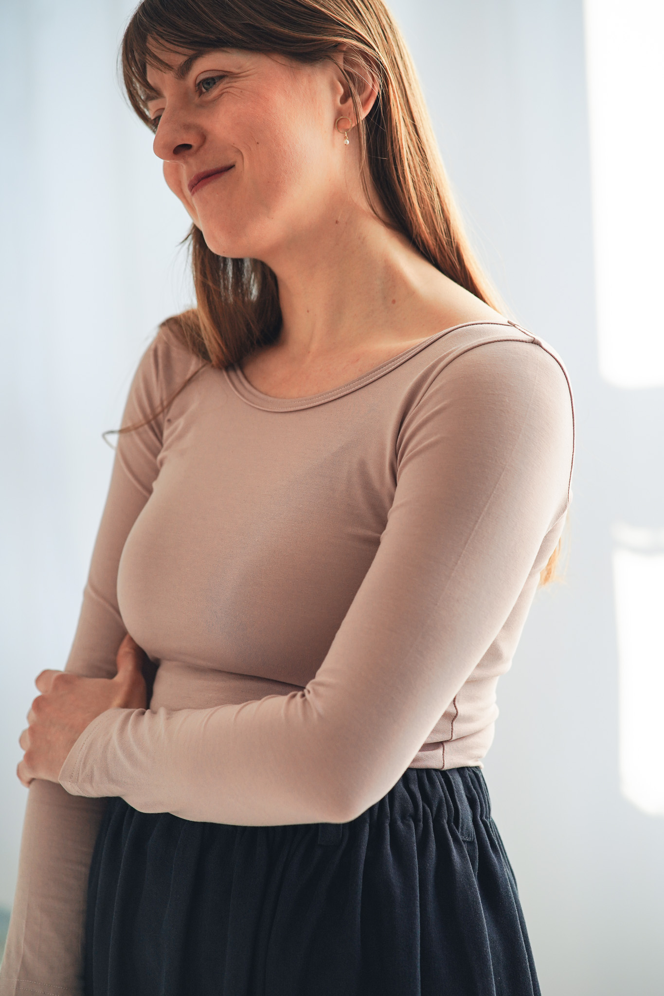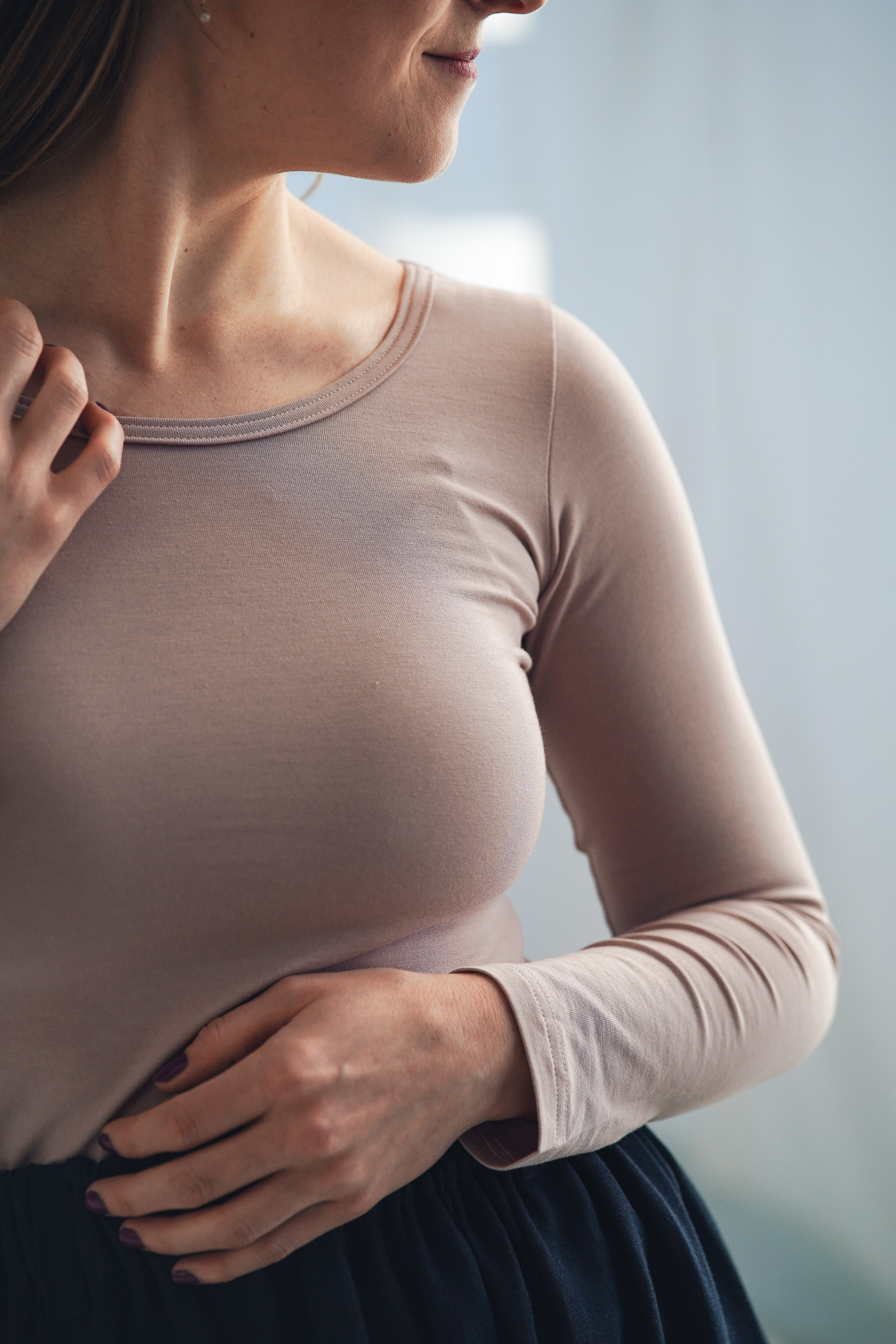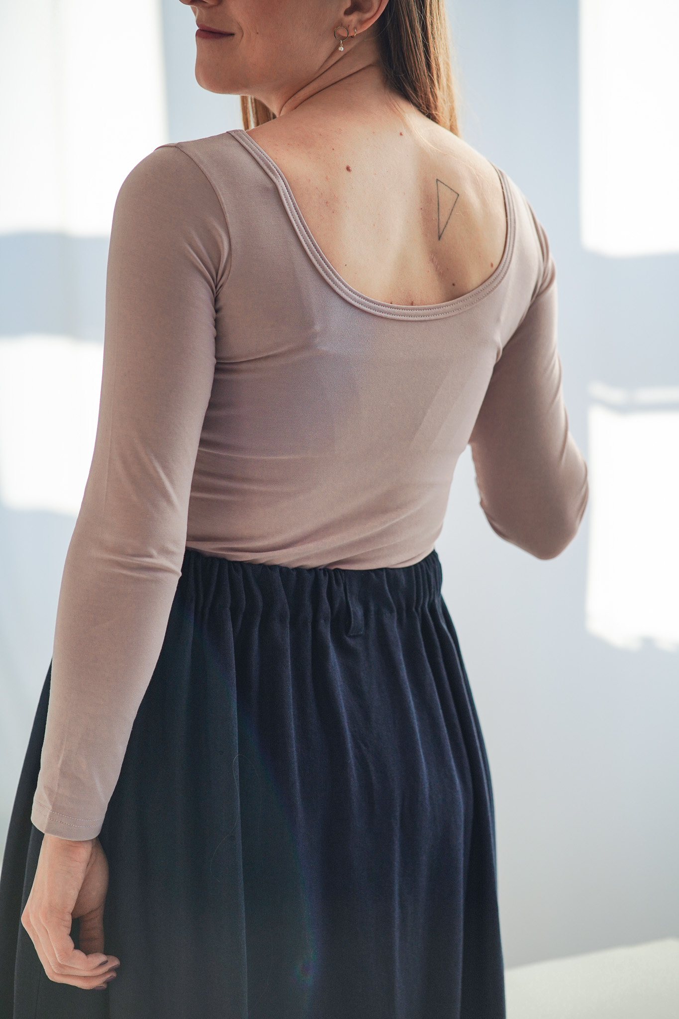 Upnutější tričko ze směsi bambusu a bavlny, které krásně doplní váš základ šatníku o další nepostradatelný a zároveň sexy kousek. Toto triko ukáže ženské křivky, má větší výstřih na zádech a dlouhé rukávy, navíc se dá nosit oboustranně. Je jen na vás, kterou stranu trička zvolíte. Látka má certifikát zdravotní nezávadnosti OEKO-TEX CLASS 1, je ideální i pro citlivou pleť a pro alergiky.