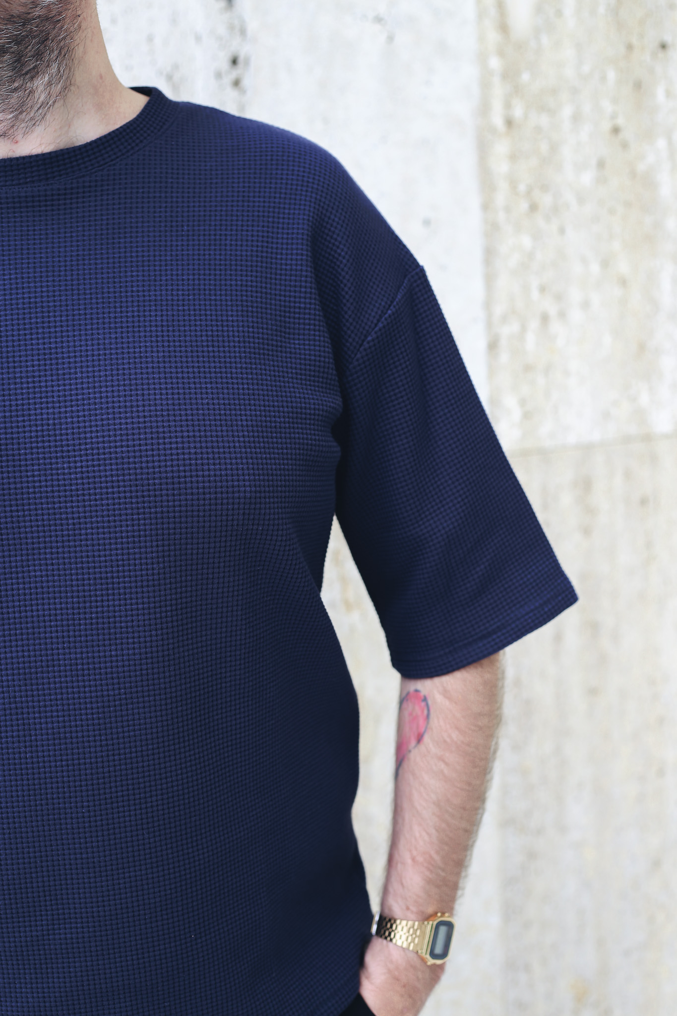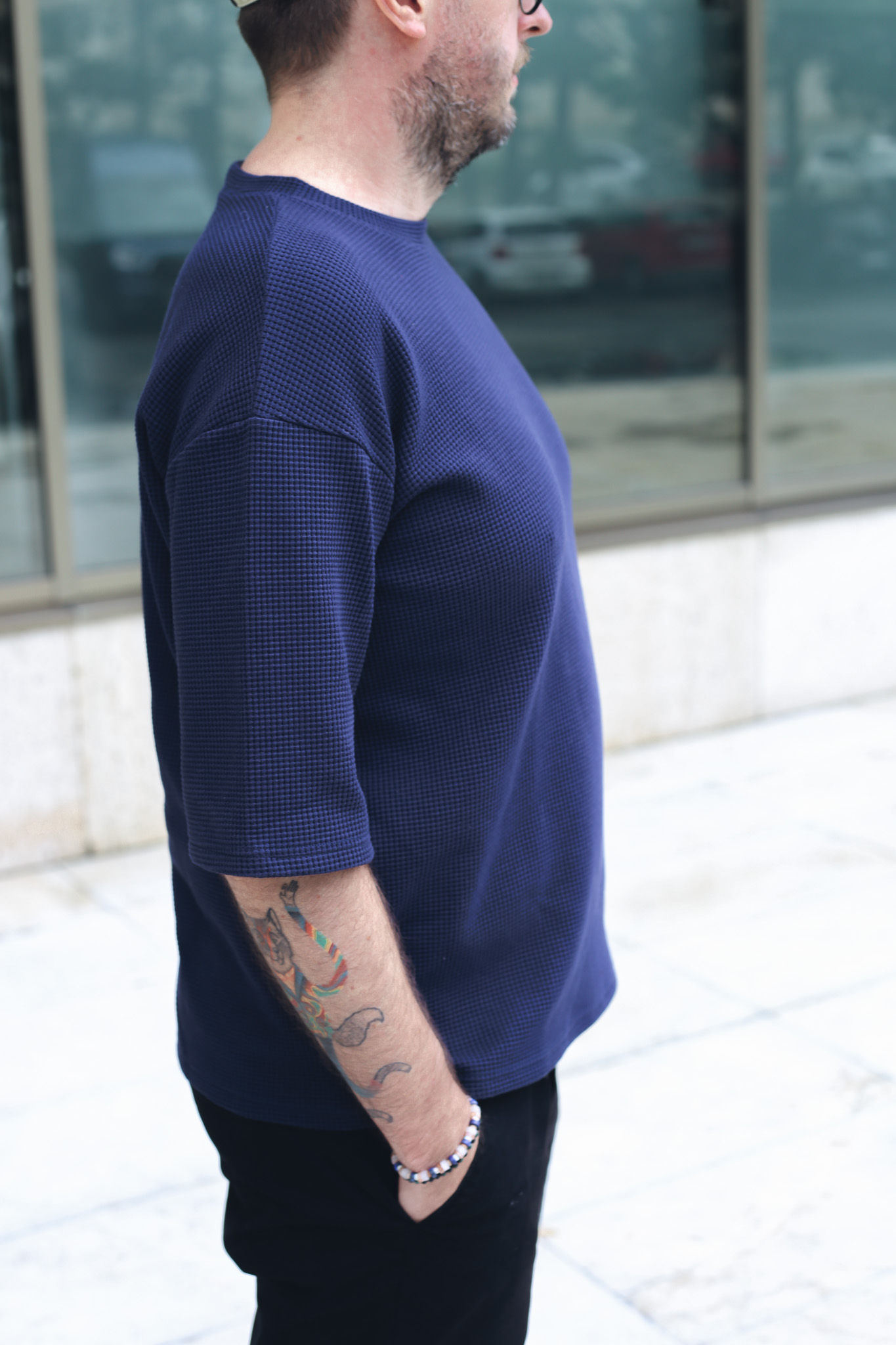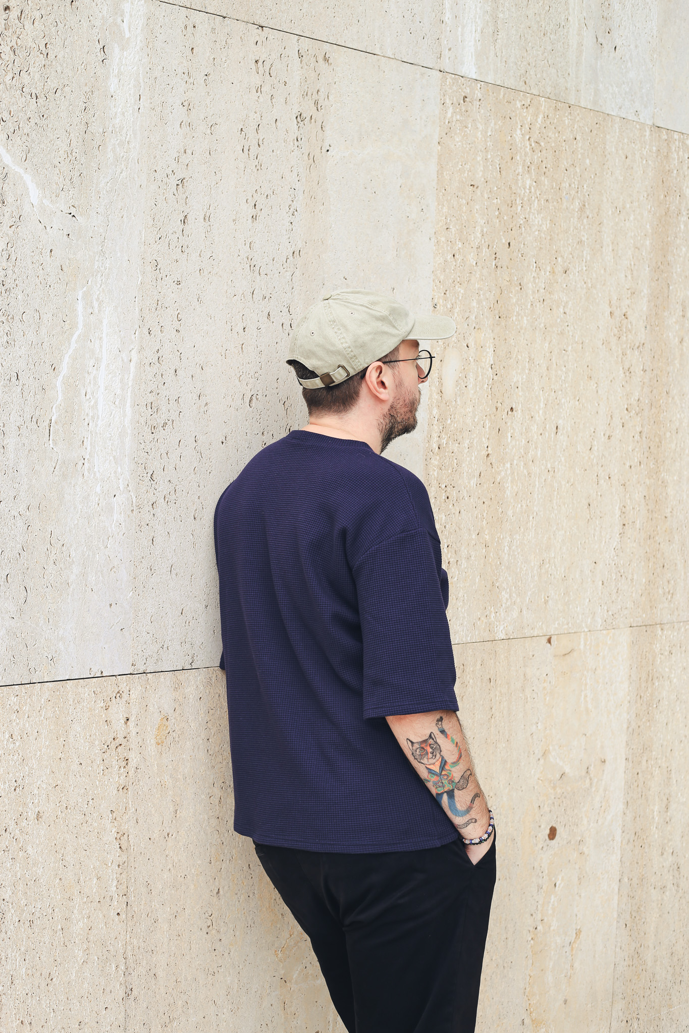 ×Minimalistické tričko v pánském širším a mírně prodlouženém střihu je ušité z velmi příjemné strukturované bavlny – vafloviny, která je měkká, poddajná a minimálně se mačká. Tričko unosíte celoročně a nemusí být nutně pouze pro pány, kdo má rád volná trika, bude slušet i ženám. Můžete ho nosit s ohrnutými rukávy a budete z toho mít volnější tričko, které si můžete sladit se svým partnerem a zastrčit si ho do sukně či do kalhot, případně zvolit dámskou variantu wide crop.