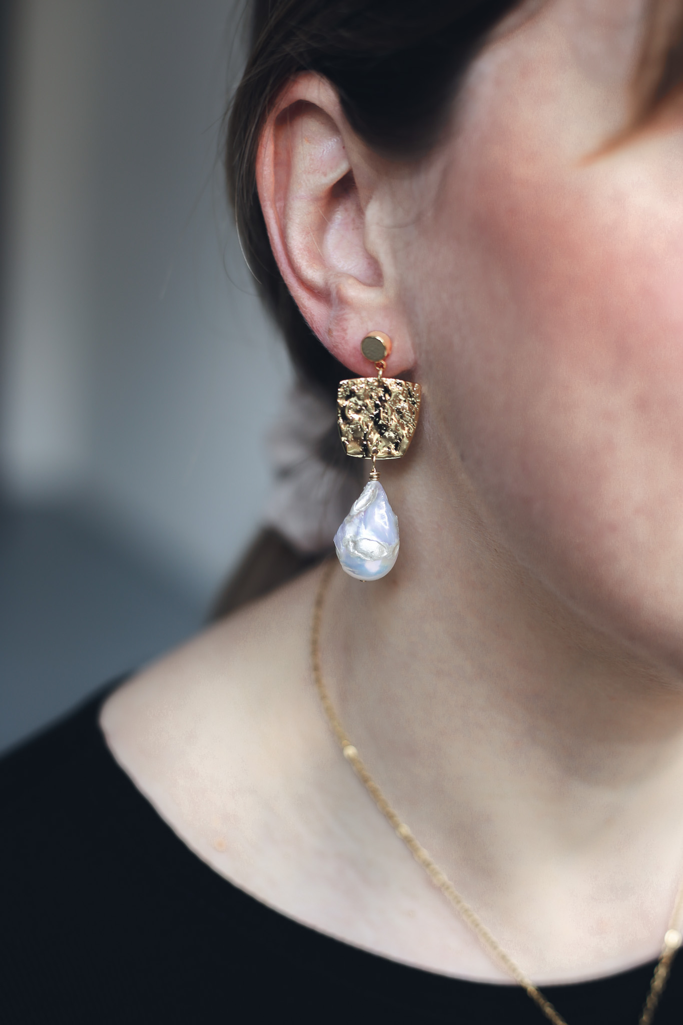 Materiál: Říční perly, pozlacená chirurgická ocel